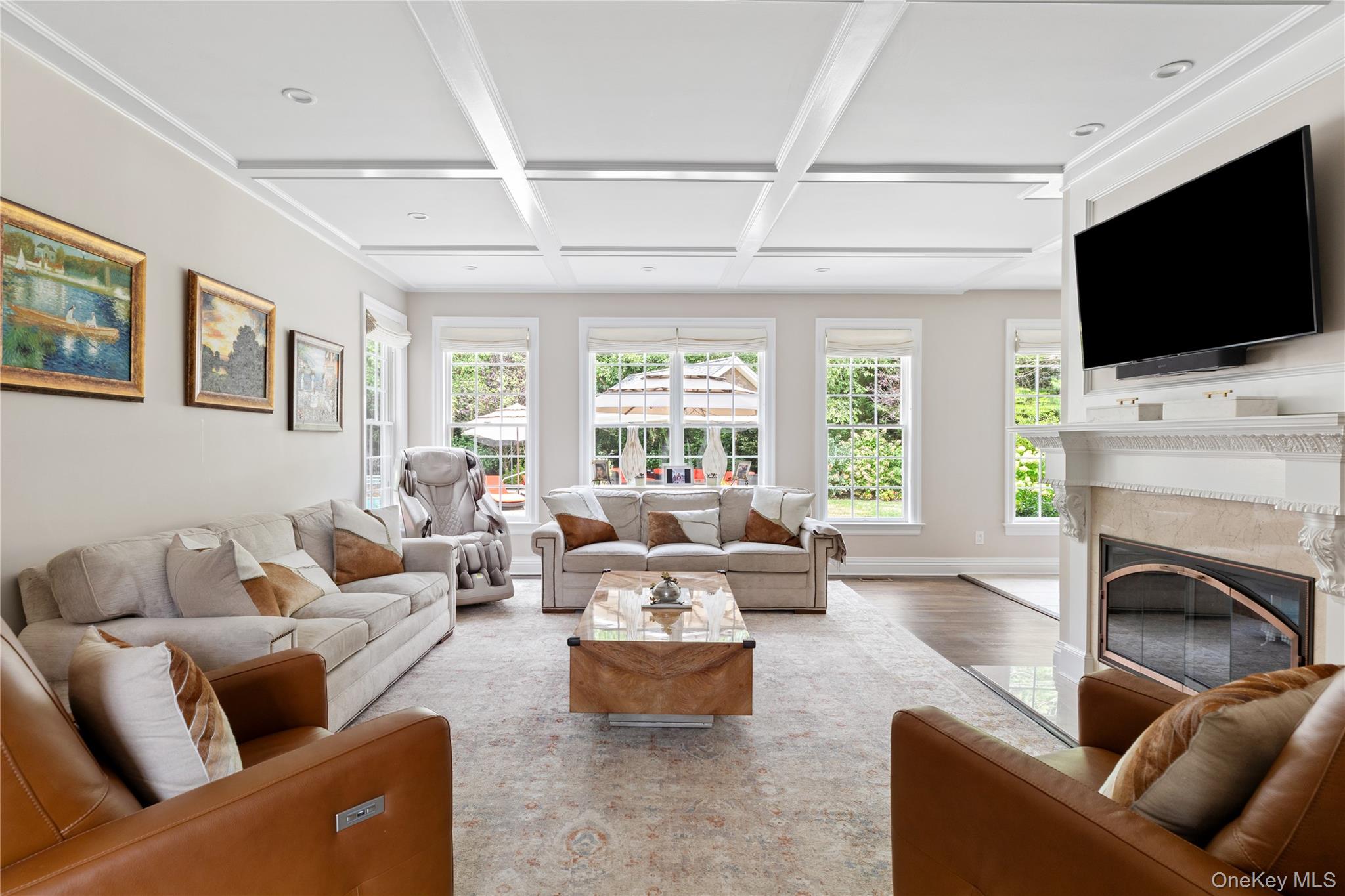 Exuding stately grandeur and refined sophistication, this exceptional 6-bedroom, 5. 5-bath brick Postmodern estate is gracefully introduced by a circular driveway and nestled on a country club–caliber acre. Thoughtfully renovated in 2020, the home blends timeless architecture with modern luxury enhancements throughout. Experience the pinnacle of luxury living at The Legends - an exclusive, highly regarded gated neighborhood known for its elegant homes, manicured landscapes, and prime location, zoned within the sought-after Half Hollow Hills School District. The resort-style grounds are nothing short of extraordinary, showcasing a heated gunite saltwater pool and spa, enhanced by a dramatic built-in slide and a serene waterfall feature - creating the ultimate private retreat. Upon entering, a sweeping two-story foyer with a grand staircase sets a majestic tone, while rich architectural details and expansive living spaces define the home’s impeccable design. The gracious formal living room flows seamlessly into a secluded private office. At the heart of the home, the gourmet kitchen is a culinary showpiece, appointed with bespoke cabinetry, top-of-the-line appliances, and a sunlit breakfast area anchored by a striking dual-sided fireplace. This leads effortlessly into an open, sunlit family room with walls of windows overlooking the beautifully landscaped backyard. Additionally, there is a music room, a large mud area with built-in cubbies, and a dedicated laundry room. The lavish primary suite is a sanctuary unto itself, offering a sitting room, generous walk-in closet, and remodeled marble bathroom with a soaking tub. Upstairs, a distinctive secondary family room provides an inviting and versatile space for relaxation or recreation. The full, finished lower level elevates the home’s lifestyle amenities even further, featuring a custom-designed movie theater, a private fitness studio, and a wine closet. Meticulously maintained and curated with a designer’s eye, this remarkable residence is distinguished by a full brick facade, a full-house generator, an entertaining paver patio with a large pergola, and an attached three-car garage. Neighborhood highlights include a 24-hour guard-gated entry, community clubhouse, pool, and tennis courts.