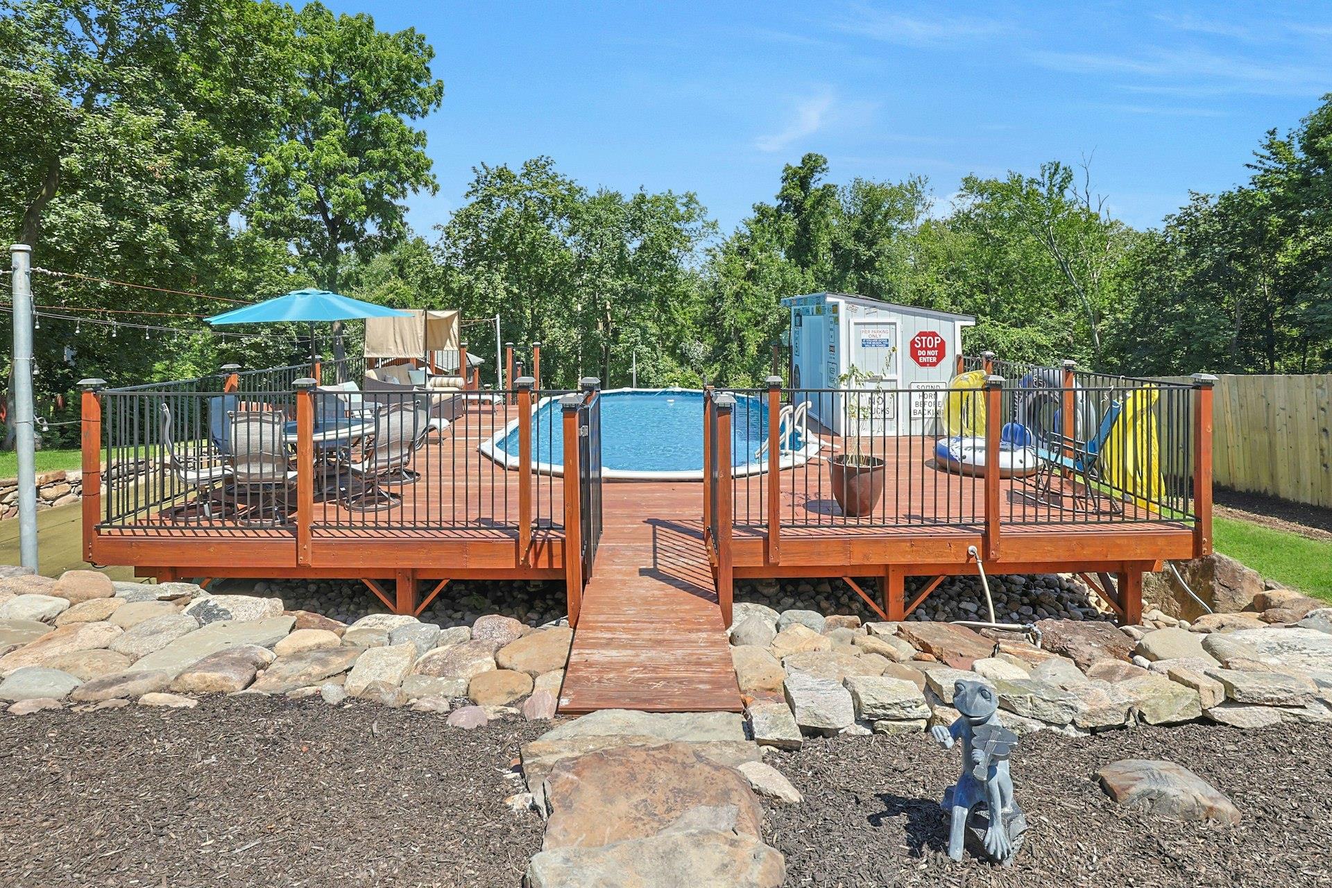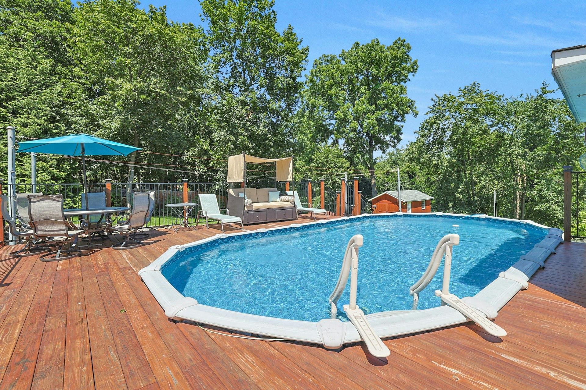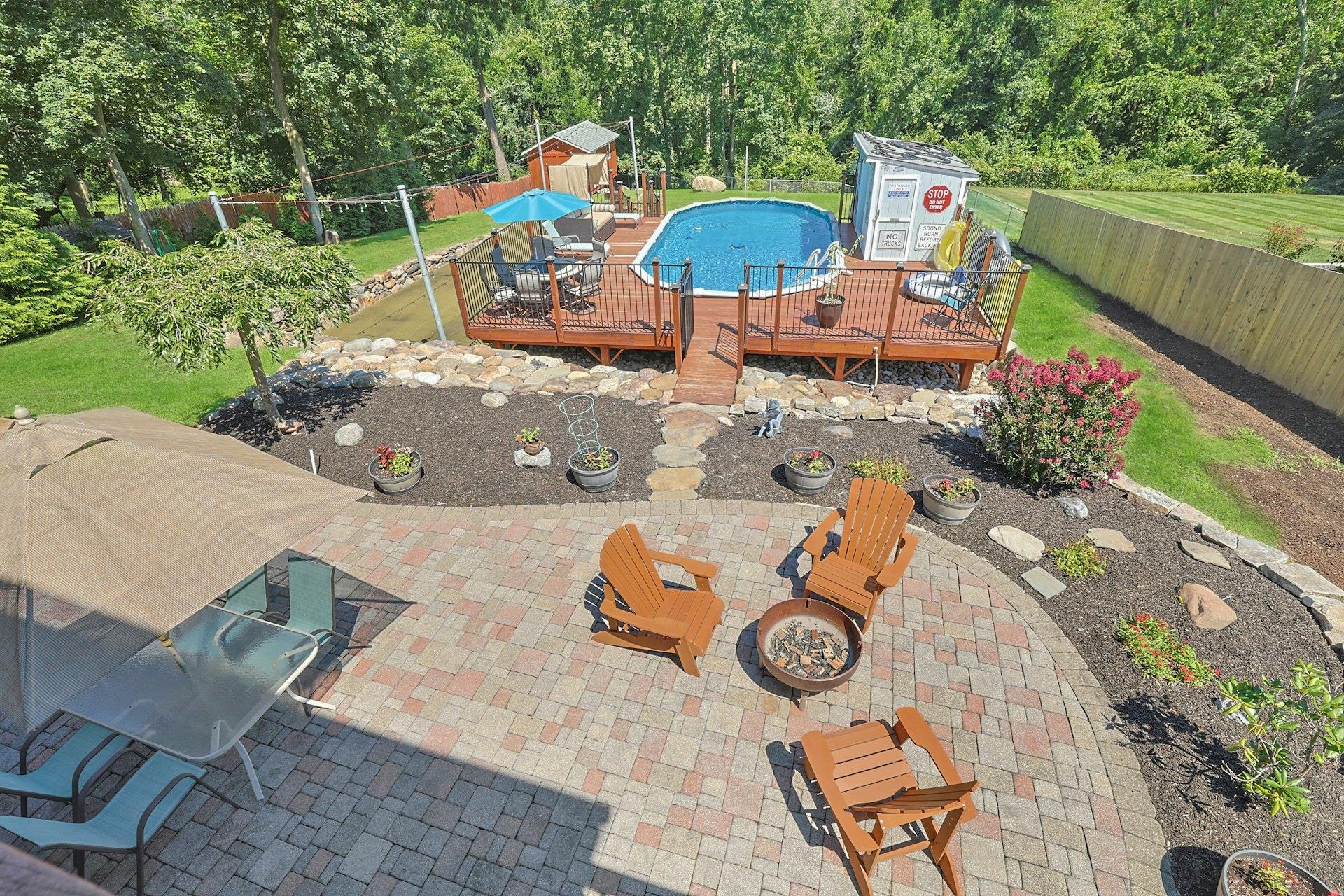 Clarkstown, NY - HIDDEN TREASURE with BACKYARD PARADISE! Be sure to read all! Set back from the road on approx . 7 Acre, you won’t believe this discovery! Beautiful 2005 Custom Contemporary is the perfect blend of charm and excitement, inside and out! Completely deceiving in size from the front, you will be amazed with the approx 3500 sq ft of living space, which includes the finished walk-out basement; AND you will be amazed with the backyard splendor! Designed with entertaining in mind, the backyard features a beautiful pool with infinity-look and deck surround, expansive stone patio with fire pit, and a former batting cage area that’s an ideal spot for Bocce Ball, Basketball, Corn Hole or putting green! Further, the large shed at the back of the property isn’t just a shed! It’s a wonderful workshop that’s a contractor’s dream! Inside the house, you’ll find an open floor plan with spacious center island Kitchen, inviting Family Rm, fplc with full wall mantel and brick finishing, formal Dining Rm, Powder Rm, Laundry/Mud Rm, and sliders to the huge main deck on the main floor. The 2nd level houses the Primary Suite with WIC and spa bath with whirlpool tub, a dream shower with body sprays & more. Also enjoy relaxing with your favorite beverage on your personal covered deck. Two more bedrooms, a remodeled full bath, 2nd WIC and 2 attics complete the 2nd floor. Andersen windows, recessed lighting, and wood finishes throughout. As if this isn’t enough, head to the walk-out lower level for the 4th Bedroom, 3rd Full Bath and 2 bonus rooms, ideal for home offices, guests or extended family living. Step outside to the patio and join in the backyard fun! All this and more in a perfectly private setting backing Palisades Parkland in the endearing Hamlet of Congers, where there are many eateries, shops, festivals, fireworks & concerts. More to enjoy at Rockland Lake and Congers Lake Memorial Park, including walking paths, golf, pickleball, basketball, tennis, playground & activity center. Seasonal lake views, too! MUST SEE!