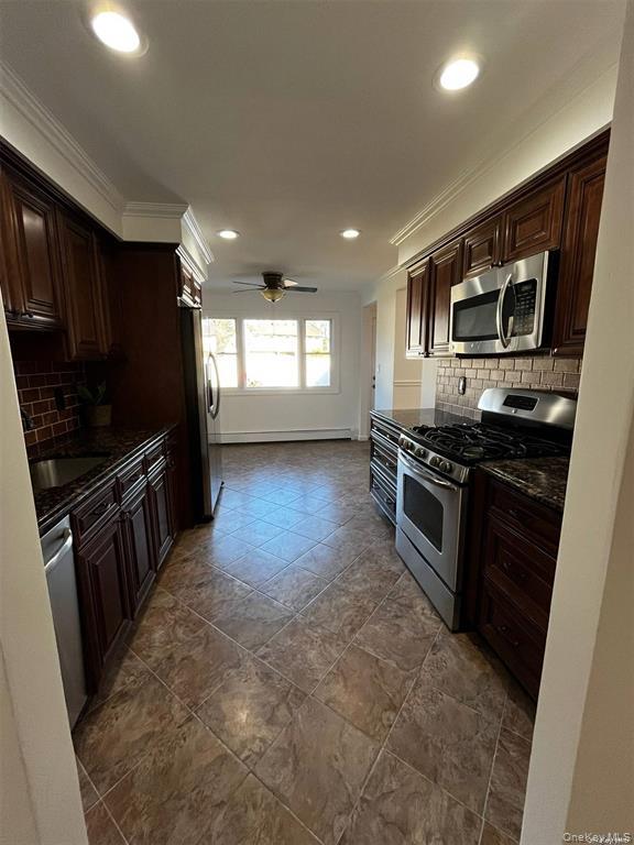 Beautifully Renovated Splanch-Style Home in Half Hollow Hills School District Located on a quiet cul-de-sac, this fully renovated Splanch-style house offers 5 spacious bedrooms, including a master suite with a private bath. The home features a newly updated large backyard and a detached 4-car garage, perfect for car enthusiasts or additional storage. The fully legalized basement can be used as a family room or loft and includes a full bathroom and a separate entrance — ideal for guests or extended family. Renovated just 1 year ago, the property boasts all-new plumbing, electrical systems, boiler, and roof. Both the backyard and the exterior driveway were redone with new cement and asphalt. The expansive driveway and garage provide parking for over 10 vehicles.