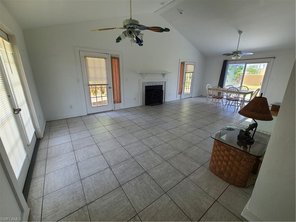 Great Starter Home on Oversized Lot! This 2-bedroom, 2-bath home with a detached garage offers a prime opportunity to customize and make it your own. Featuring a cozy fireplace, mostly tile flooring, and a newer roof, the home sits on a large lot with a spacious backyard—perfect for outdoor living, a garden, or a future pool. Recent exterior upgrades include new soffits, and there are no HOA fees. All city water and sewer assessments—over $40, 000—have been fully paid, saving you thousands. Enjoy peace of mind knowing the home is on the hospital electric grid, ensuring faster power restoration during outages. Located in a low-crime area, this central Cape Coral location is just minutes from the hospital, City Hall, private schools, shopping, dining, and entertainment. Whether you're a first-time buyer, investor, or someone ready to renovate, this property is full of potential in a thriving neighborhood.