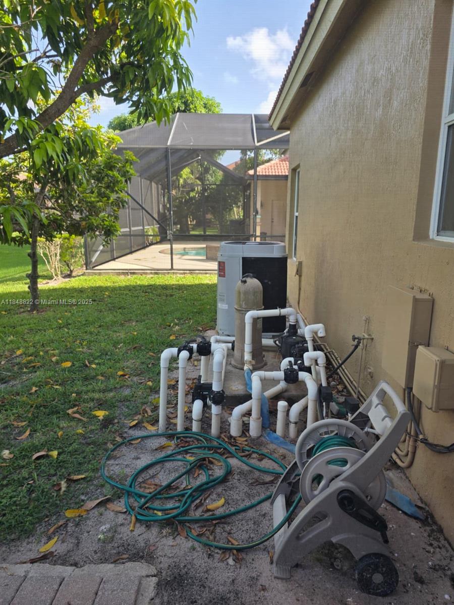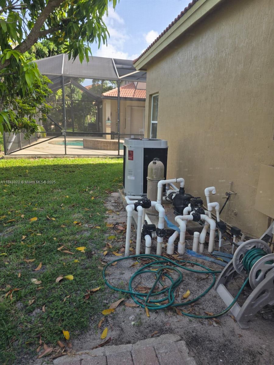 Discover 4017 W Hamilton Key, West Palm Beach, FL?33411: a stunning 5-bedroom, 4-bath single-family home built in 2004, offering 3, 229?sq?ft of elegant living on nearly 7, 840?sq?ft lot with a private wood-roofed residence featuring stucco exterior and tile roof. This exceptional property boasts a spacious master suite, multiple additional bedrooms, well-appointed bathrooms, and soaring vaulted ceilings. The interior welcomes with built-in shelves, split bedroom design, volume ceilings, cook island, walk-in closets, and tasteful finishes throughout. Outdoor amenities include a screen-enclosed, heated private pool with tranquil lake views, perfect for entertaining or relaxing in serene privacy.