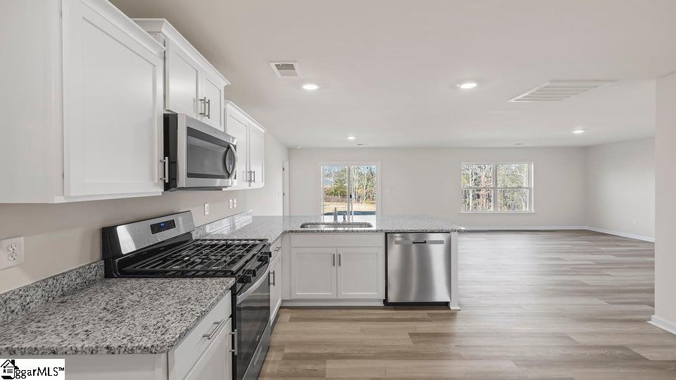 Check out 543 Sunfire Street, a beautiful new home in our Lakestone community. This spacious one story home features three bedrooms, two bathrooms, and a two-car garage, with 1, 343 square feet of well-designed living space. As you enter, a welcoming foyer leads you into the open-concept living area, where the main living spaces flow seamlessly together, creating a sense of spaciousness and connection. The chef’s kitchen is equipped with stainless steel appliances, custom cabinetry, granite countertops, and a breakfast bar, making it perfect for both cooking and casual dining. The large great room is just adjacent, providing a comfortable space for family gatherings and relaxation. The primary suite is a peaceful retreat, complete with an en suite bathroom featuring dual vanities and a walk-in closet. The two additional bedrooms features generous space and ample closet storage, with easy access to a well-appointed secondary bathroom. Outside, you’ll enjoy a patio, ideal for outdoor entertaining or simply soaking in the beautiful weather. With its thoughtful design, spacious layout, and modern features, this home is the perfect place to call home. Pictures are representative.