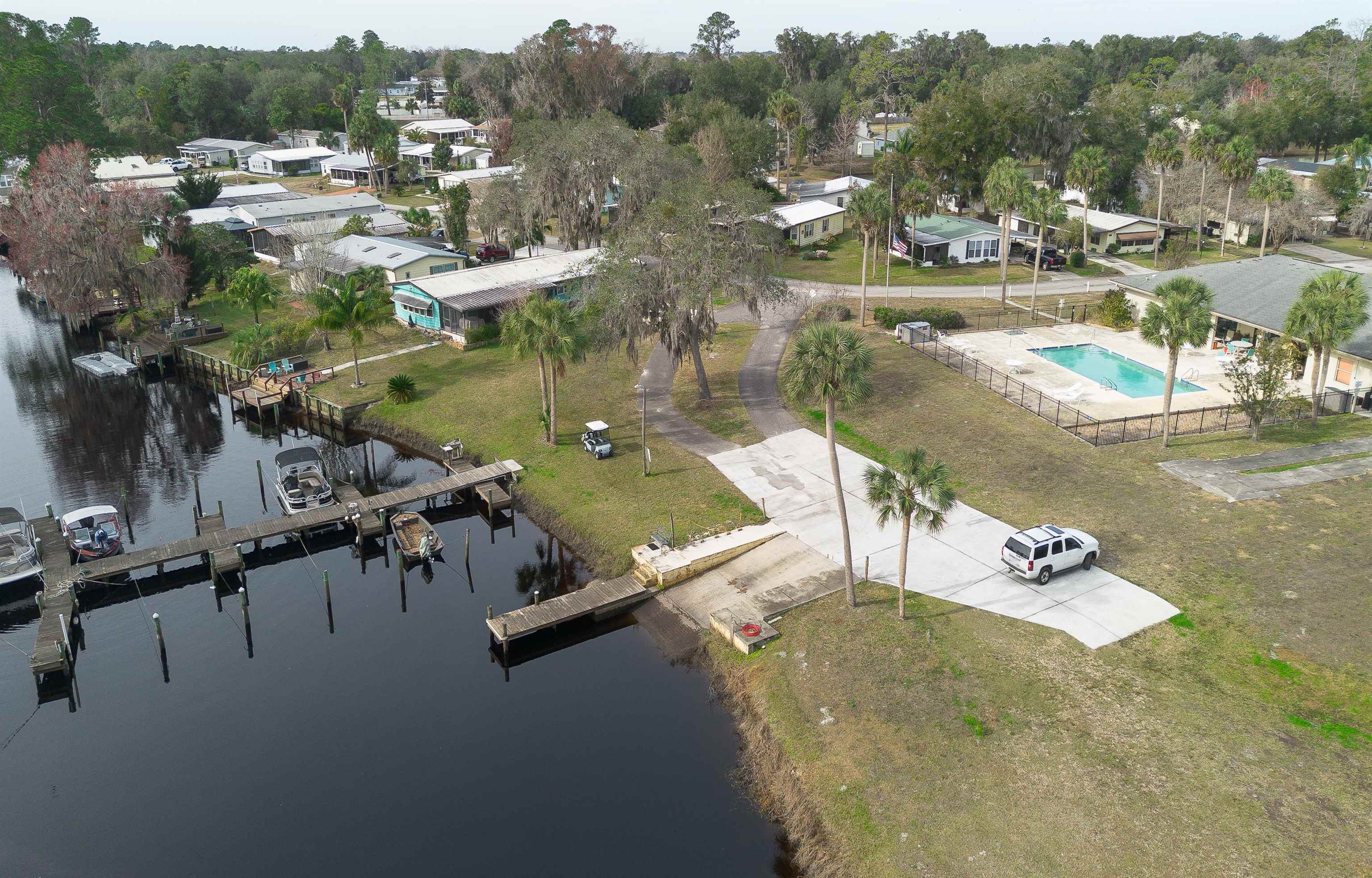 Embrace the Florida Lifestyle in St Johns River Estates! Welcome to this beautiful, nearly-new 2022 Champion Manufactured Home, nestled in the peaceful, established Bayou Club - an (18+) Adult community perfect for river enthusiasts. This spacious 3 bdrm, 2 bath home offers a thoughtfully designed split floor plan for privacy and comfort. Two generously sized guest bedrooms with walk-closets are separated from the expansive living room and modern kitchen/dining combo. The large primary bedroom is a true retreat with its own en-suite bath and walk-in closet. The well-maintained community has a $75/mo fee and unparalleled amenities, including: a fishing dock/pier, private boat launch & slips, secured storage area, RV/Boat parking, golf cart trail, community clubhouse and pool. Located in Satsuma, on Murphy's creek, leading to the St Johns River (reknowned as "The Bass Capital of the World"), this community combines peaceful living with access to nature/outdoor adventures!!