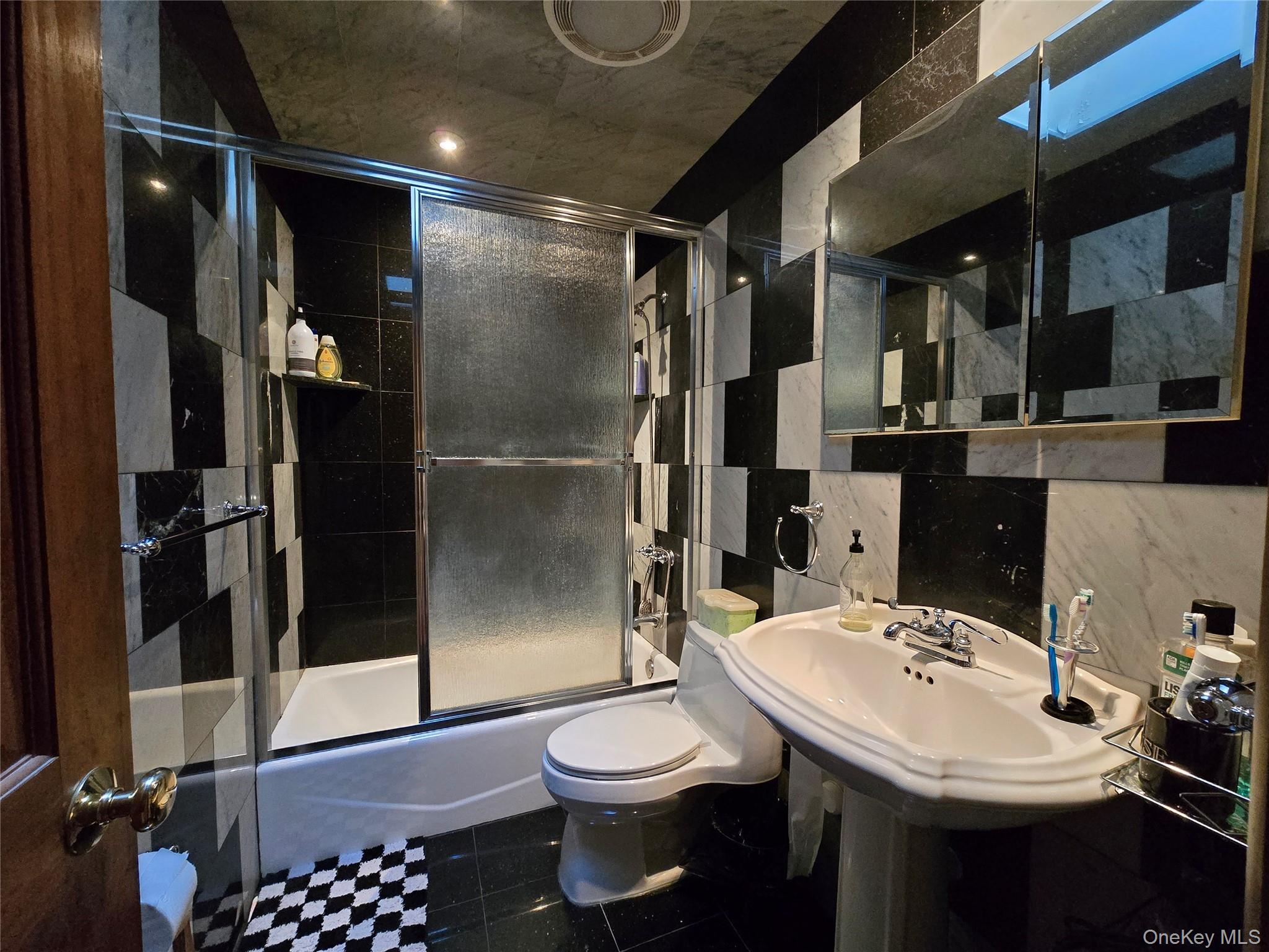 huge price reduced!! South facing whole brick ranch house in Bayside, near transportation, school, supermarket. this property is located in R3-1 zoning, The whole roof is covered by concrete. very solid foundation installed all around house, Extended in the back of the house, can be used as a family room with a fireplace, full finished basement with high ceiling , full bathroom , outside seperate entrance to the basement, ful stone paved in the backyard, high ceiling extra large size garage, roof covered carport long driveway for 3 cars parking, easy to show,