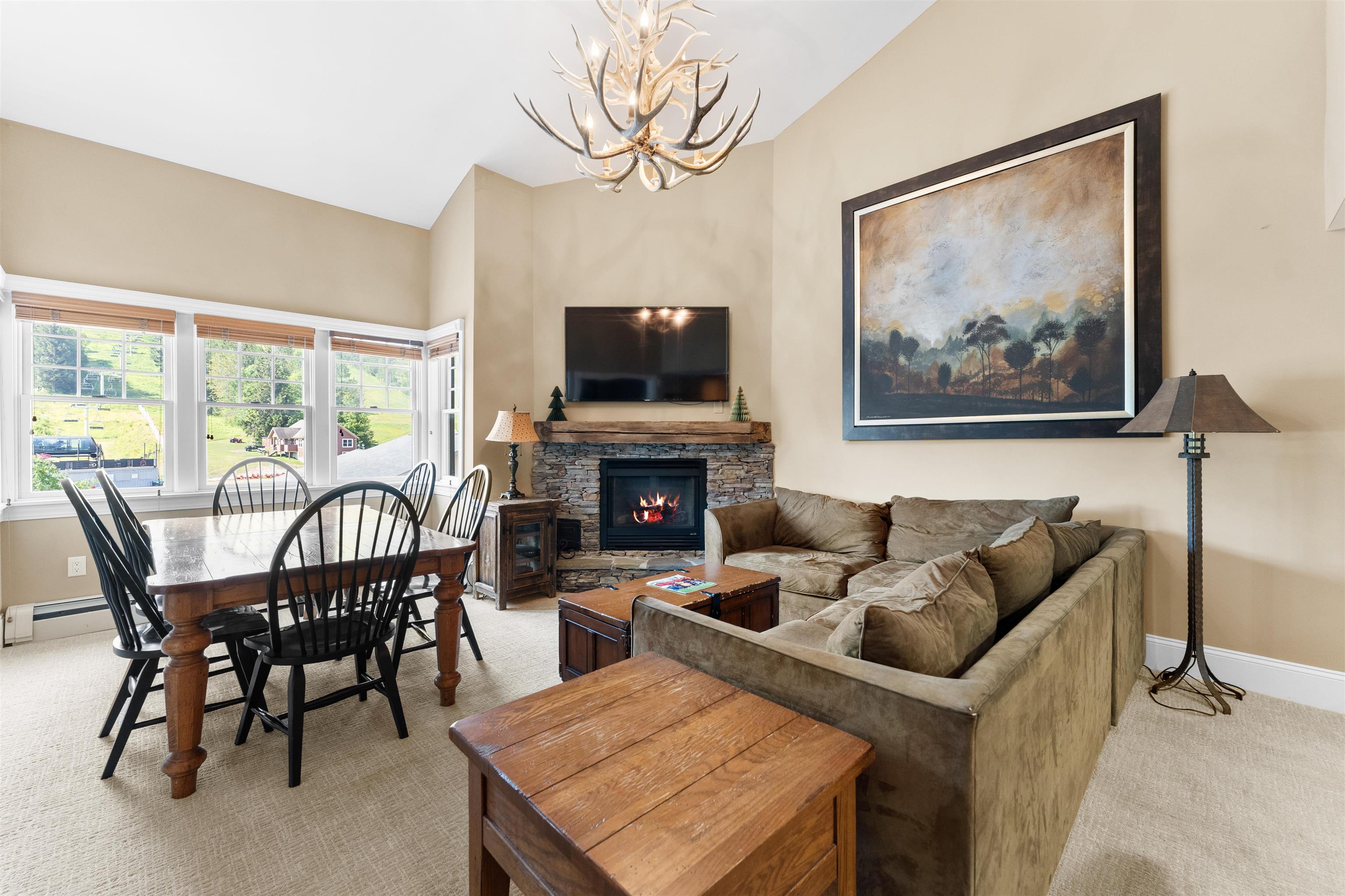 Rare opportunity to own in the heart of the Stratton Mountain Village! Come home to the Landmark community. Located attached to the iconic "Clocktower" at Stratton, Vermont. This homes boasts three spacious bedrooms and two full bathrooms with amazing mountain views and southern exposure. Enjoy the cozy gas burning fireplace after a hard day skiing or riding. Landmark provides ski lockers, an owners lounge with a beautiful pool table, foosball table and large screen television with ample seating. This home features convenient parking spaces and all the amenities of home including new stainless steel appliances and plenty of sleeping for kids or a second family. Home has great rental history as well.