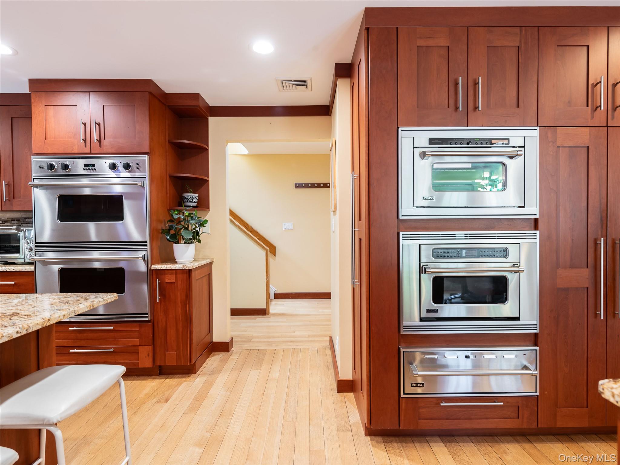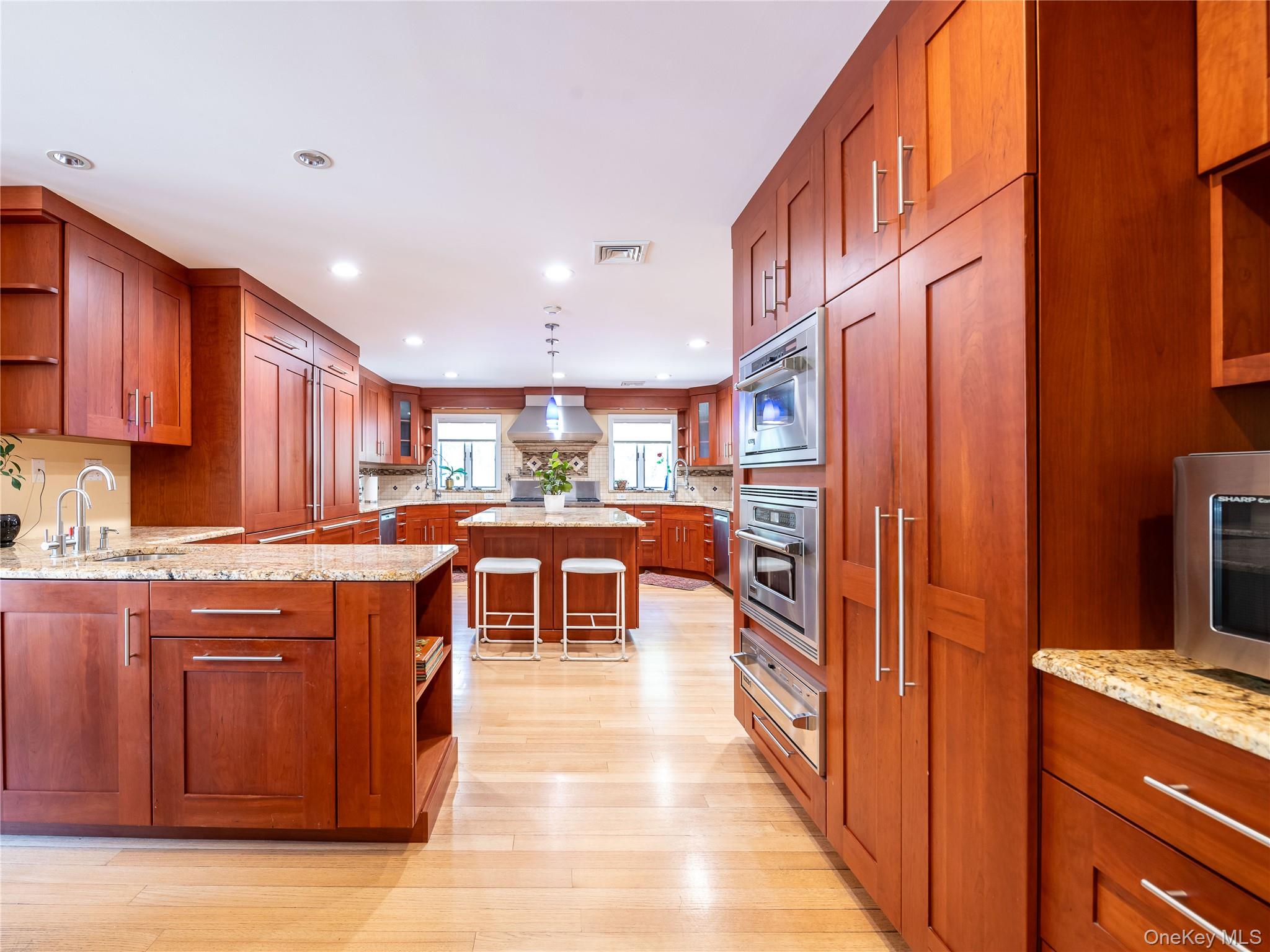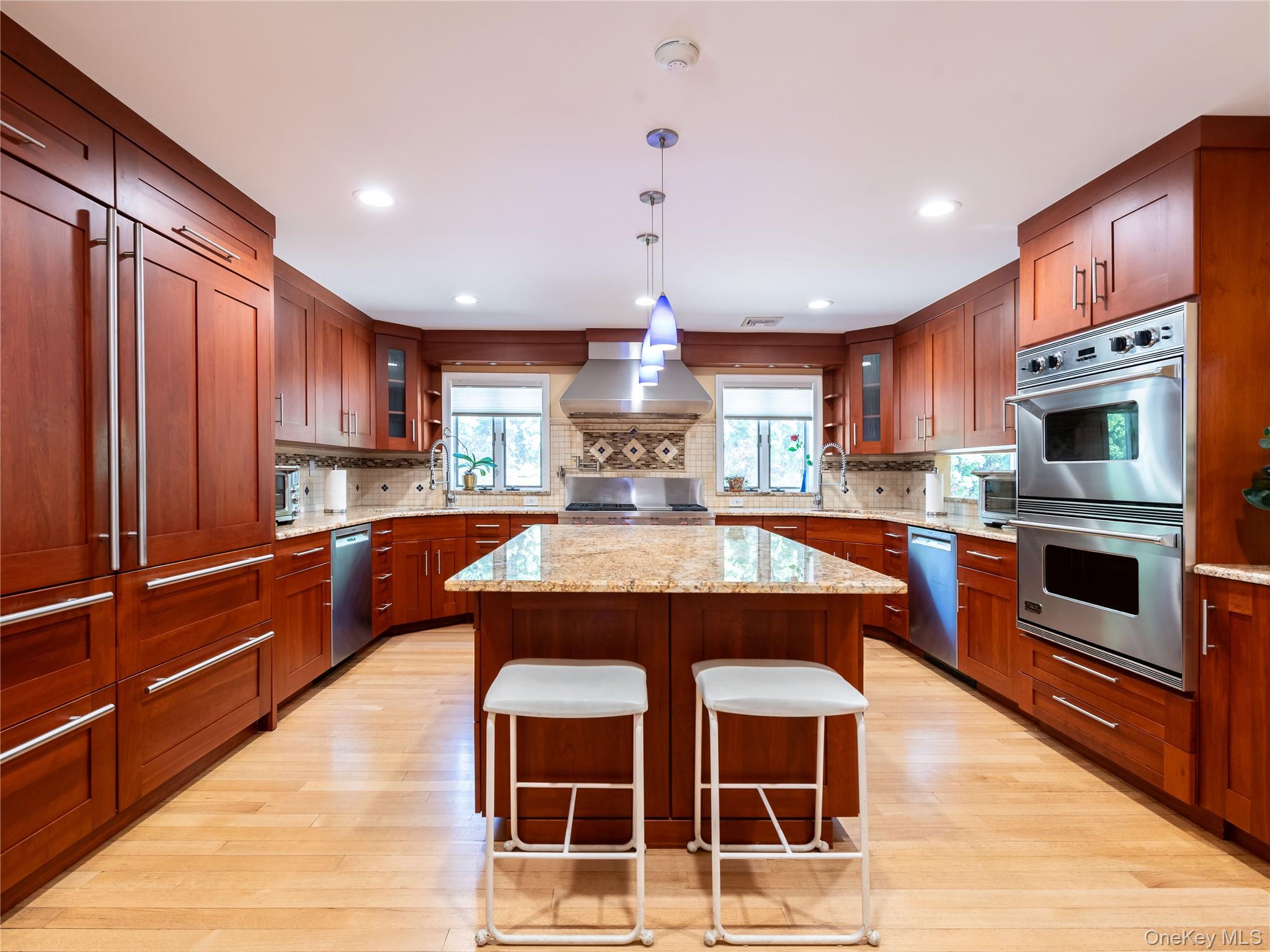 Welcome to 43 Oxford Blvd, a rare and spacious 7-bedroom, 5. 5-bath home set on nearly half an acre of flat, lush property. This meticulously maintained residence offers the perfect blend of comfort, functionality, and high-end upgrades. The main level features a refined entry foyer, expansive living room with fireplace, formal dining room, a large den with wet bar, and a chef’s eat-in kitchen equipped with Sub-Zero and stainless appliances, double 36" Viking ovens, steam and speed ovens, two Bosch dishwashers, warming drawer, multiple sinks, and abundant storage. Upstairs, enjoy generously sized bedrooms with vaulted ceilings, including a luxurious primary suite featuring a gas fireplace, radiant heat, private balcony, two walk-in closets, office, and spa-like marble bath with jacuzzi and cherry wood cabinetry. A second-floor laundry room adds convenience. The finished lower level provides ample recreation space. Outside, a large deck overlooks the private, verdant backyard. Additional highlights include a 2. 5-car garage, circular driveway, full-house Kohler generator, Andersen windows, hurricane-proof doors, radiant floors, a new 2025 heating system, and 14 high-resolution security cameras. Located in the desirable Allenwood section with access to Great Neck Park District amenities: Parkwood Pool, Tennis Center, Ice Skating, and Steppingstone Waterfront Park. Zoned for Great Neck North Middle & High Schools. Truly turnkey, this exceptional home checks every box!