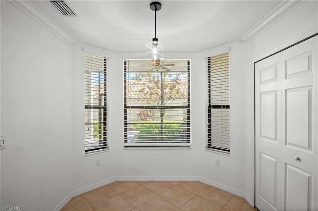 Golf membership is INCLUDED with this gorgeous first floor, end unit "Abbey" model veranda condo, featuring a stunning southern golf and lake view. The Abbey model is wide & spacious with lots of extra windows for tons of natural light! This condo has been well-maintained and upgraded: freshly painted, added LVP flooring in the bedrooms, wood plank tile in the den, and modern fixtures throughout. The entire condo is hurricane impact glass and sliders for added peace of mind! Heritage Bay features a stunning 27-hole Lewis-Azinger designed golf course and aqua driving range. The grand clubhouse offers diverse dining options, elegant event spaces, and a lively social scene. Have a bite to eat in The Grille Room— a casual indoor/outdoor bar & dining area, with an incredible southern view of the 27th green. Members can also enjoy a resort-style pool area with heated spa & 'The Cabana' poolside bar & grille with a full service kitchen. The community also includes a top-notch tennis program with 7 har-tru clay courts, pickleball & bocce courts, and a state-of-the-art fitness center. With a calendar full of events and activities, Heritage Bay ensures a vibrant and luxurious lifestyle for its members. Whether you're a golf enthusiast or simply looking for serene views and luxury living, Heritage Bay offers it all. 2019 special assessment for amenities renovations paid in FULL