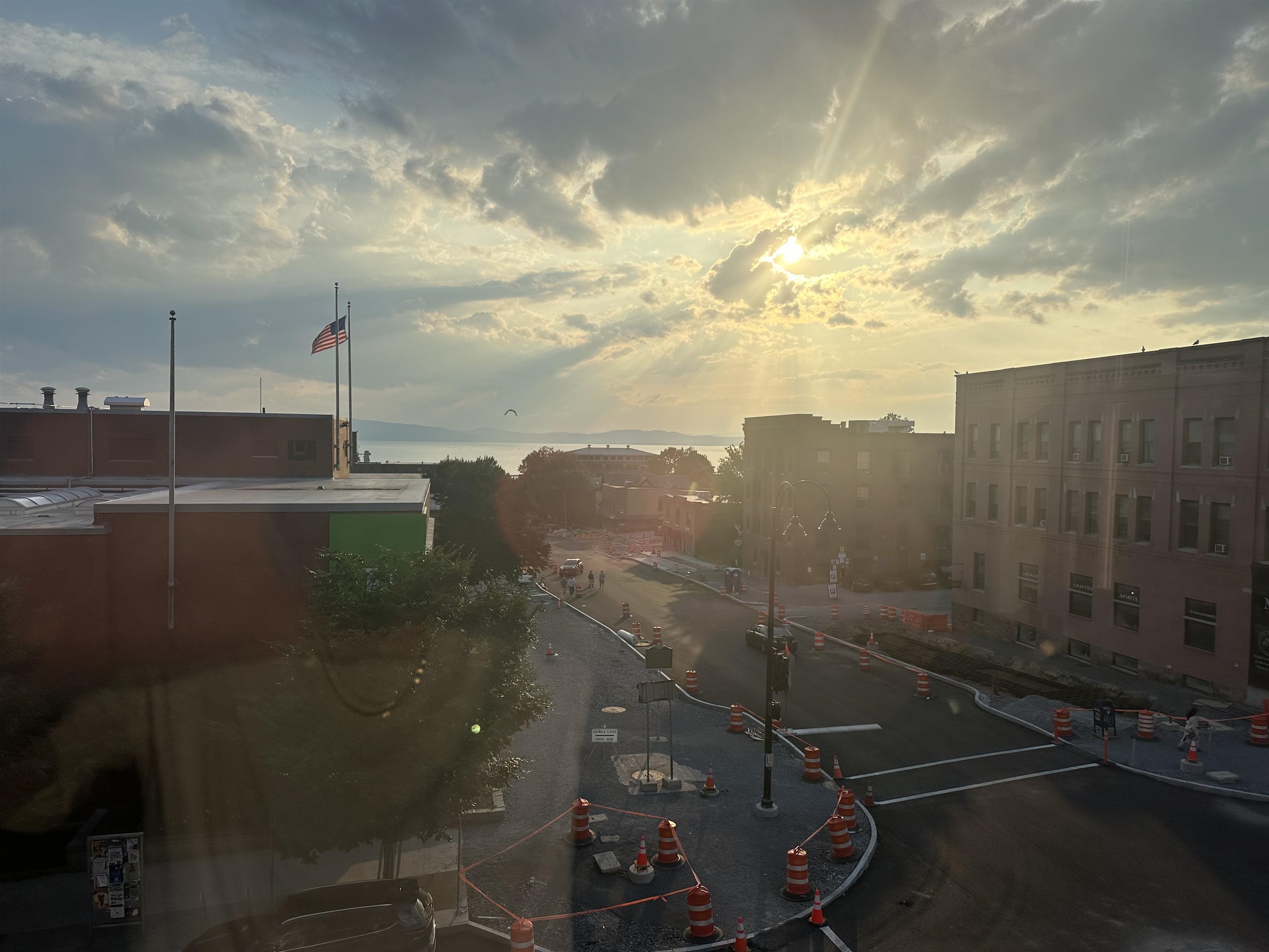 Historic Charm Meets Stunning Views in the Heart of Burlington Welcome to one of the most desirable and spacious residences in this iconic historic building! This beautifully refreshed 2-bedroom, 2-bath corner unit offers unmatched western-facing views of Lake Champlain, the Adirondack Mountains, and breathtaking sunsets—all visible from the living room, dining area, and both bedrooms. Natural light floods the space through large windows, highlighting the solid cherry hardwood floors and fresh neutral paint throughout. The open-concept kitchen, living, and dining area is perfect for entertaining or relaxing while taking in the scenery. A generous great room with hardwood flooring overlooks lively City Hall Park, giving you the best of both lake and city life. The primary bedroom features an en-suite full bath, while the second bedroom and additional full bath are perfect for guests or a home office setup. With abundant closet space, updated satin nickel hardware, and a truly move-in-ready condition, this unit combines modern comfort with timeless elegance. Pets are welcome, and parking is available per association. Heat, sewer and water included in HOA dues – The secure building has easy walkability to the Church Street Marketplace, The Flynn, Waterfront Park, and the bike path.