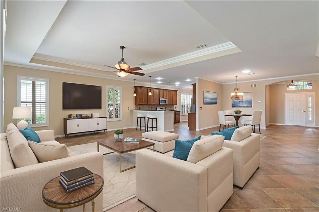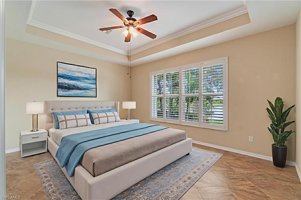 BEAUTIFULLY UPDATED LAKE VIEW HOME - LOADED WITH UPGRADES! SELLER WILL CONTRIBUTE TOWARDS BUYERS CLOSING COSTS, INQUIRE FOR DETAILS. Fully loaded with upgrades and meticulously maintained, this 3 bedroom, 2-bath Taylor Morrison home, located in the sought-after community of Sandoval, features a spacious open floor plan with split bedrooms, vaulted and tray ceilings, and serene lake views. Interior highlights include diagonal tile throughout, CUSTOM CROWN MOLDING, PLANTATION SHUTTERS, solar tube skylights, and a NEWLY SCREENED LANAI. The kitchen is a chef’s dream with granite countertops, tile backsplash, stainless steel appliances including a GE double convection oven, and a breakfast nook. The primary suite offers an oversized window for abundant natural light, dual walk-in closets, a soaking tub, glass walk-in shower, and dual vanities. Additional upgrades include a dog wash station in the laundry, GARAGE STORAGE CABINETS, NEW BEDROOM TILE, UPDATED LIGHT FIXTURES, replaced gutters, a composite side garage door, HURRICANE SHUTTERS, and NEWER HVAC, WATER HEATER, and EXTERIOR PAINT (2020). Sandoval is a vibrant, amenity-rich community featuring a newly renovated resort-style pool, two dog parks, scenic walking paths, and a modern fitness center and enhanced high-speed FIBER OPTIC internet. Conveniently located near shopping and dining, residents also enjoy courts for tennis, pickleball, volleyball, and bocce, plus a kids’ play area and library. This beautifully maintained home is a true standout, showcasing pride of ownership throughout. Don’t miss the opportunity to enjoy premier lakefront living! **THIS PROPERTY QUALIFIES FOR A 1% LENDER INCENTIVE IF USING PREFERRED LENDER. INQUIRE FOR MORE DETAILS. ** Renderings that showcase furniture have been virtually staged