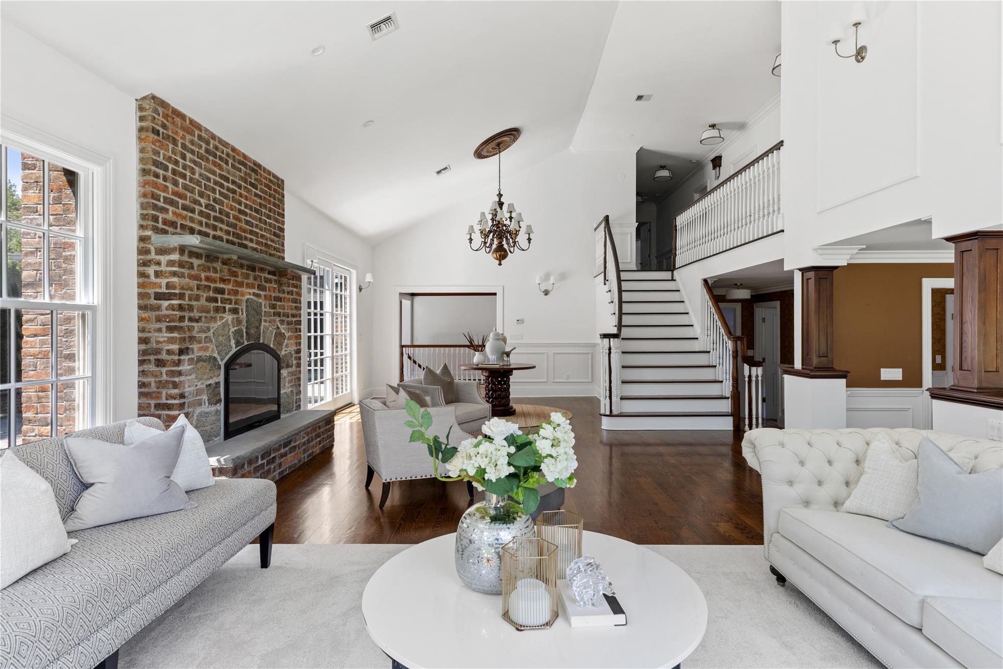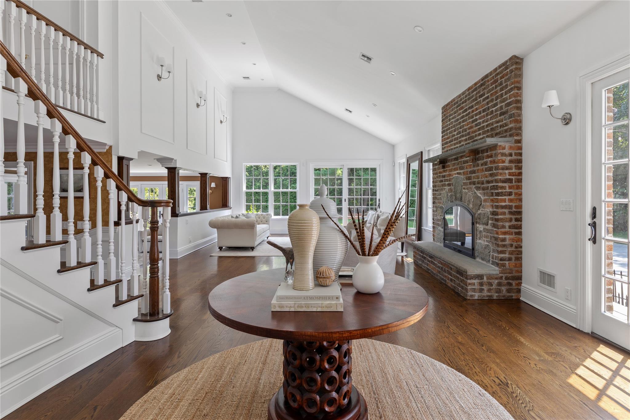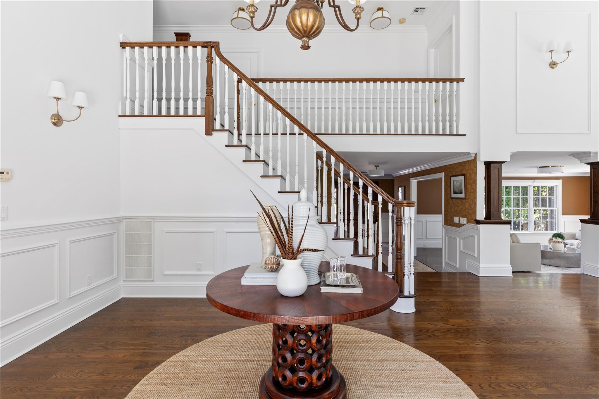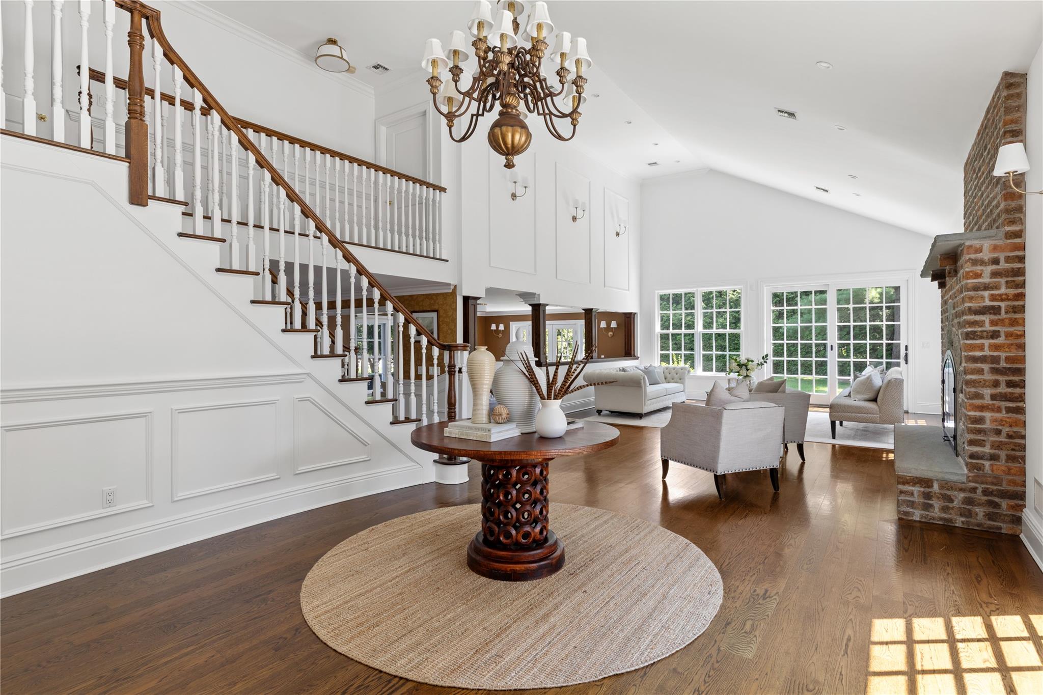 Perfectly situated in the prestigious Village of Flower Hill, this stunning 5-bedroom, 4. 5-bathroom brick Colonial is an extraordinary residence that honors tradition while embracing an expansive layout designed for elevated living. Custom built and impeccably maintained, the residence features large formal entertaining spaces with soaring ceilings, oversized windows that bathe the home in natural light, and gleaming hardwood floors throughout. The main level showcases a gracious formal living room and dining room, as well as a dramatic great room anchored by a floor-to-ceiling stone fireplace. The adjacent gourmet eat-in kitchen is a chef’s dream, appointed with bespoke dark wood cabinetry, premium stainless steel appliances, an oversized gas range, limestone flooring and an intricate coffered ceiling. A spacious mudroom with built-in storage and a laundry area connects to the attached two-car garage for added convenience. A versatile first-floor bedroom or private office is accompanied by a full bath - ideal for guests or work-from-home needs. Upstairs, the serene primary suite impresses with cathedral ceilings, a generous walk-in closet, a sitting room and a spa-inspired bath featuring a soaking tub and walk-in shower. Three additional bedrooms and two full bathrooms complete the upper level. The finished walk-out lower level offers flexible living space, including a bonus room and powder room - can be utilized for recreation, fitness, or a playroom. Additional highlights include dual French drain systems, both front and rear staircases, and exceptional storage throughout. Set on beautifully landscaped grounds, the . 52 acre exterior boasts mature privacy plantings and an expansive stone patio with a fully equipped outdoor kitchen - ideal for backyard dining and entertaining. Residents of Flower Hill enjoy exclusive access to local preserves and parks with scenic walking trails, sports courts, and playgrounds. Located within the highly regarded Port Washington Union Free School District.