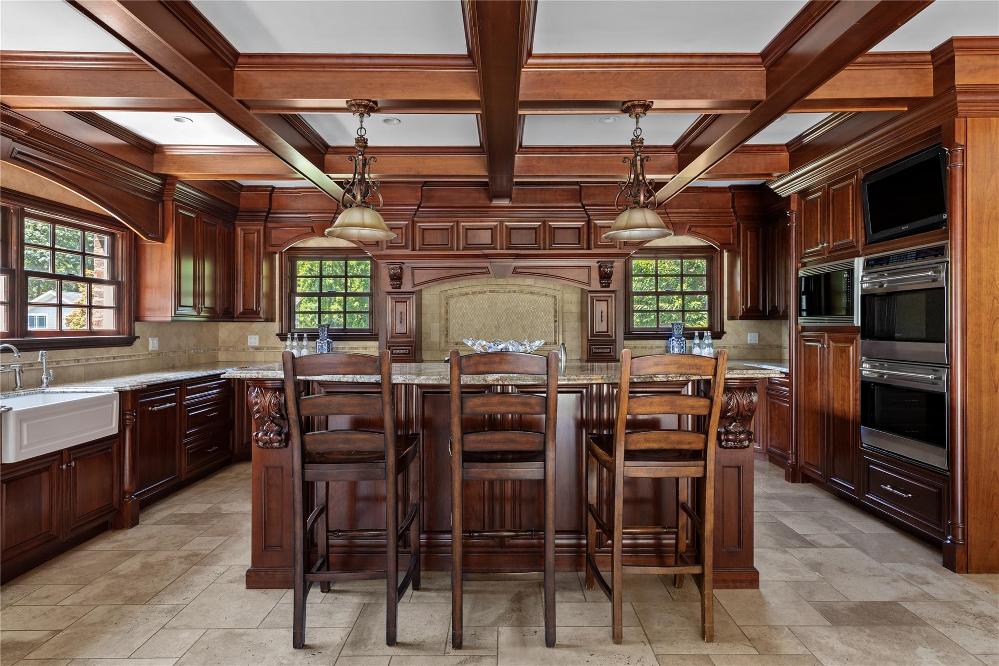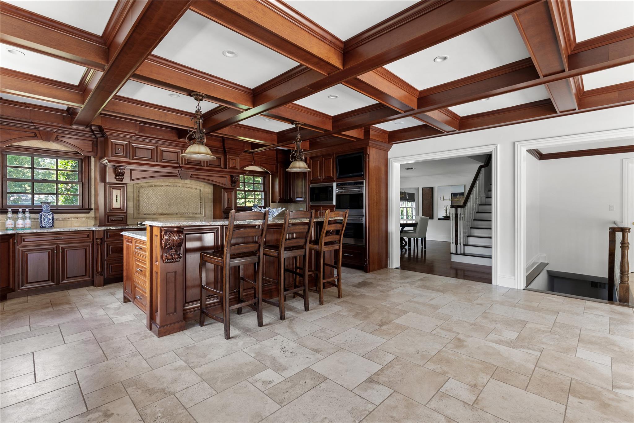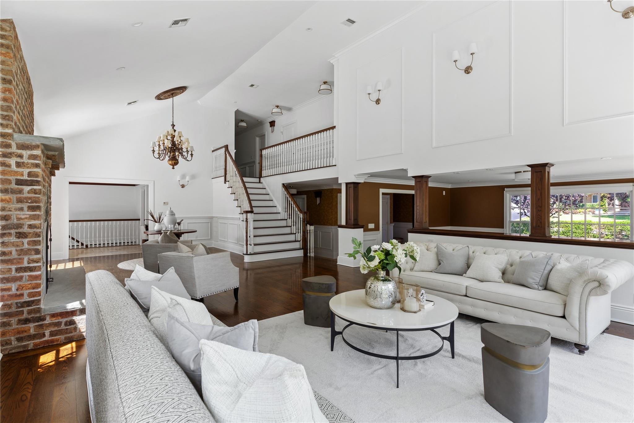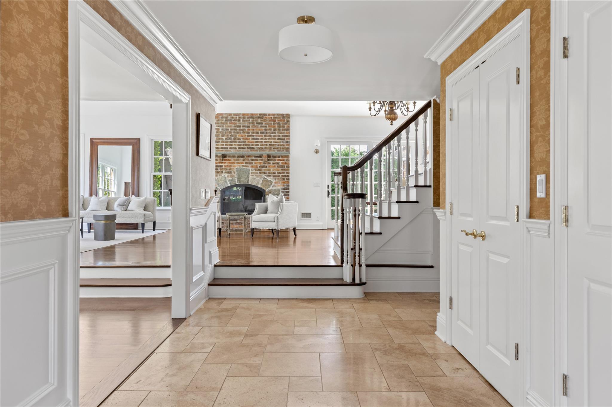 Perfectly situated in the prestigious Village of Flower Hill, this stunning 5-bedroom, 4. 5-bathroom brick Colonial is an extraordinary residence that honors tradition while embracing an expansive layout designed for elevated living. Custom built and impeccably maintained, the residence features large formal entertaining spaces with soaring ceilings, oversized windows that bathe the home in natural light, and gleaming hardwood floors throughout. The main level showcases a gracious formal living room and dining room, as well as a dramatic great room anchored by a floor-to-ceiling stone fireplace. The adjacent gourmet eat-in kitchen is a chef’s dream, appointed with bespoke dark wood cabinetry, premium stainless steel appliances, an oversized gas range, limestone flooring and an intricate coffered ceiling. A spacious mudroom with built-in storage and a laundry area connects to the attached two-car garage for added convenience. A versatile first-floor bedroom or private office is accompanied by a full bath - ideal for guests or work-from-home needs. Upstairs, the serene primary suite impresses with cathedral ceilings, a generous walk-in closet, a sitting room and a spa-inspired bath featuring a soaking tub and walk-in shower. Three additional bedrooms and two full bathrooms complete the upper level. The finished walk-out lower level offers flexible living space, including a bonus room and powder room - can be utilized for recreation, fitness, or a playroom. Additional highlights include dual French drain systems, both front and rear staircases, and exceptional storage throughout. Set on beautifully landscaped grounds, the . 52 acre exterior boasts mature privacy plantings and an expansive stone patio with a fully equipped outdoor kitchen - ideal for backyard dining and entertaining. Residents of Flower Hill enjoy exclusive access to local preserves and parks with scenic walking trails, sports courts, and playgrounds. Located within the highly regarded Port Washington Union Free School District.