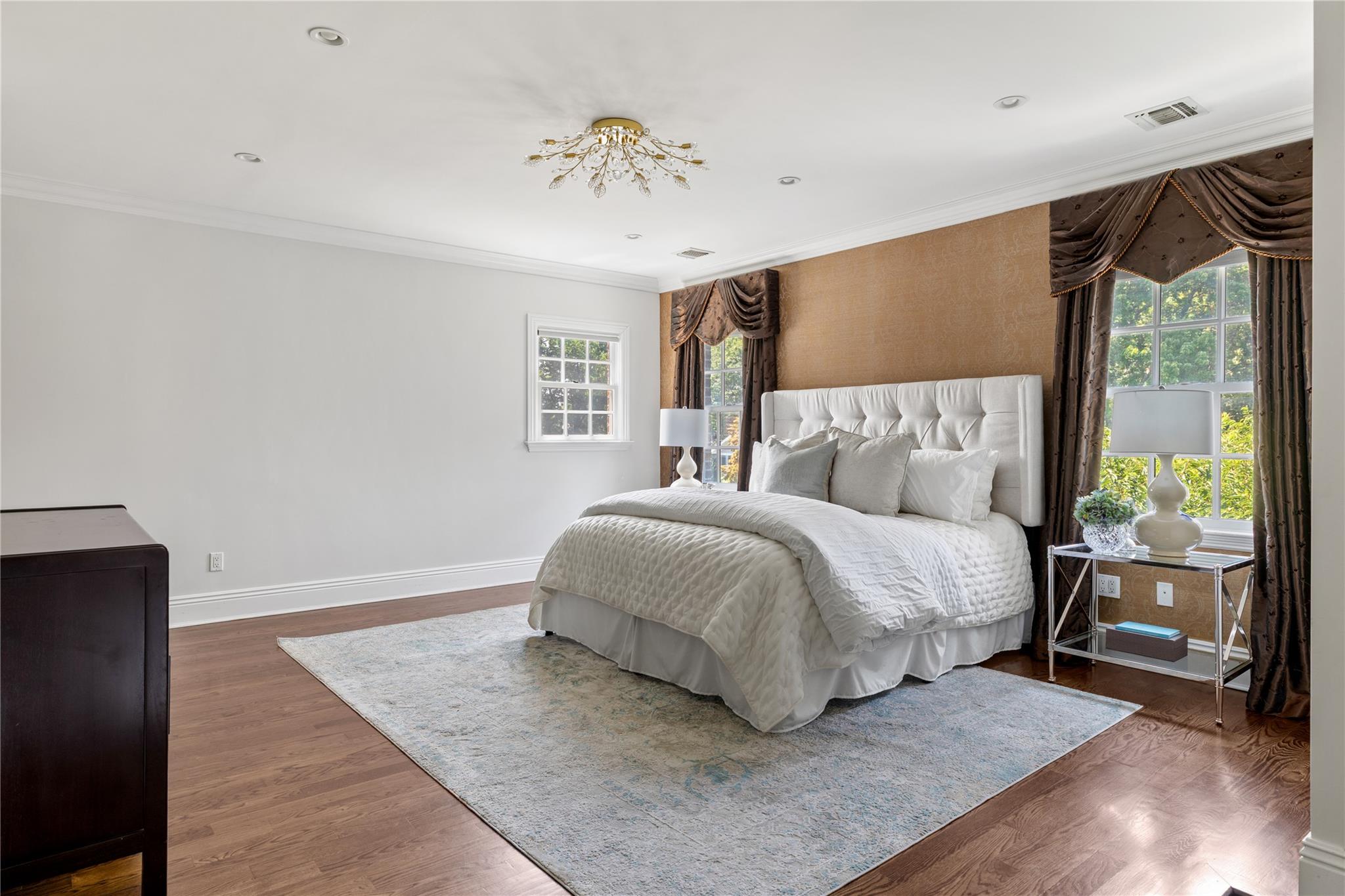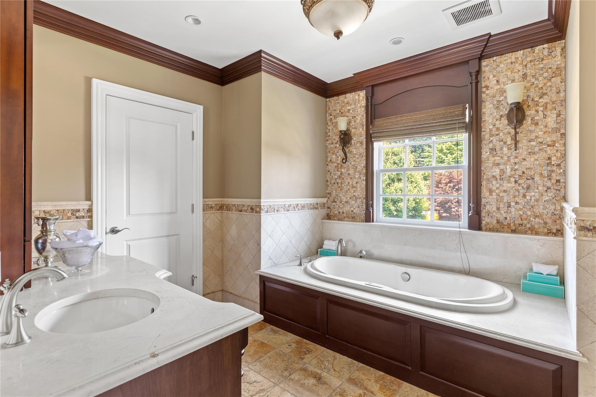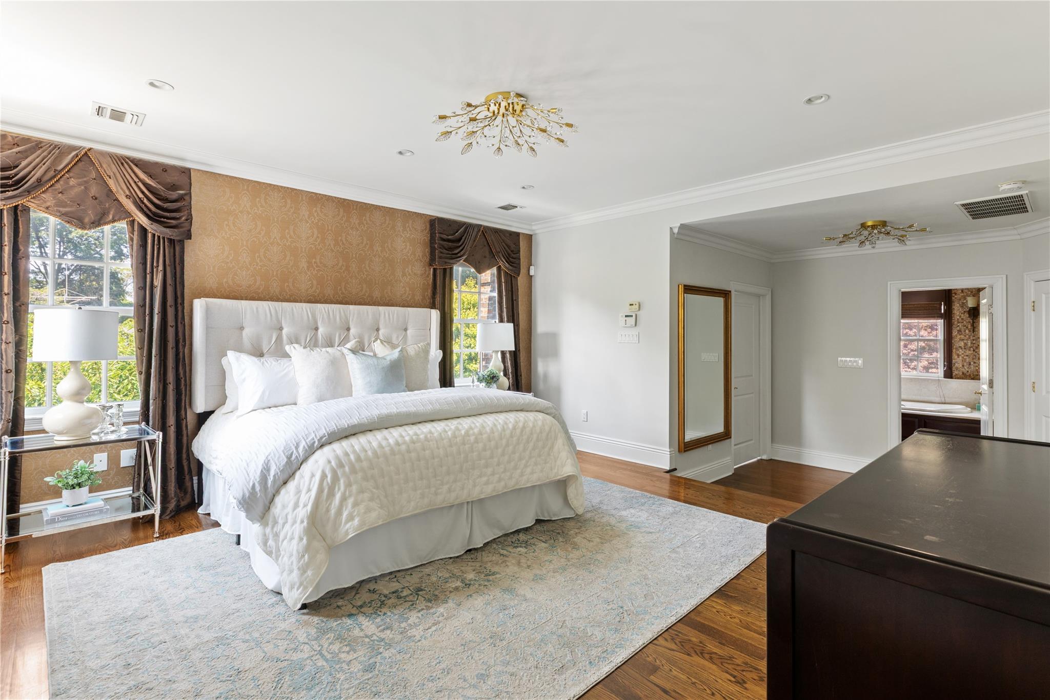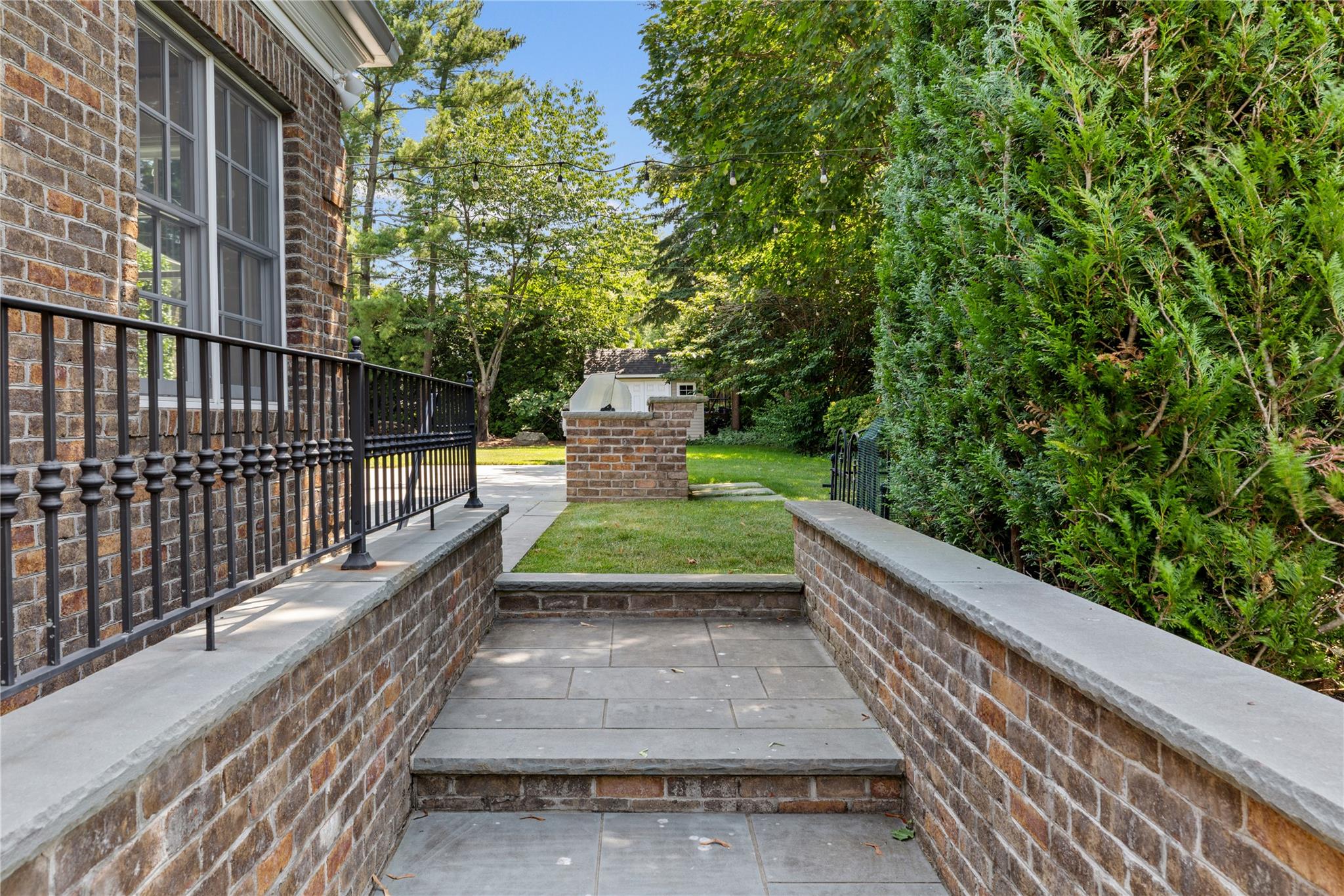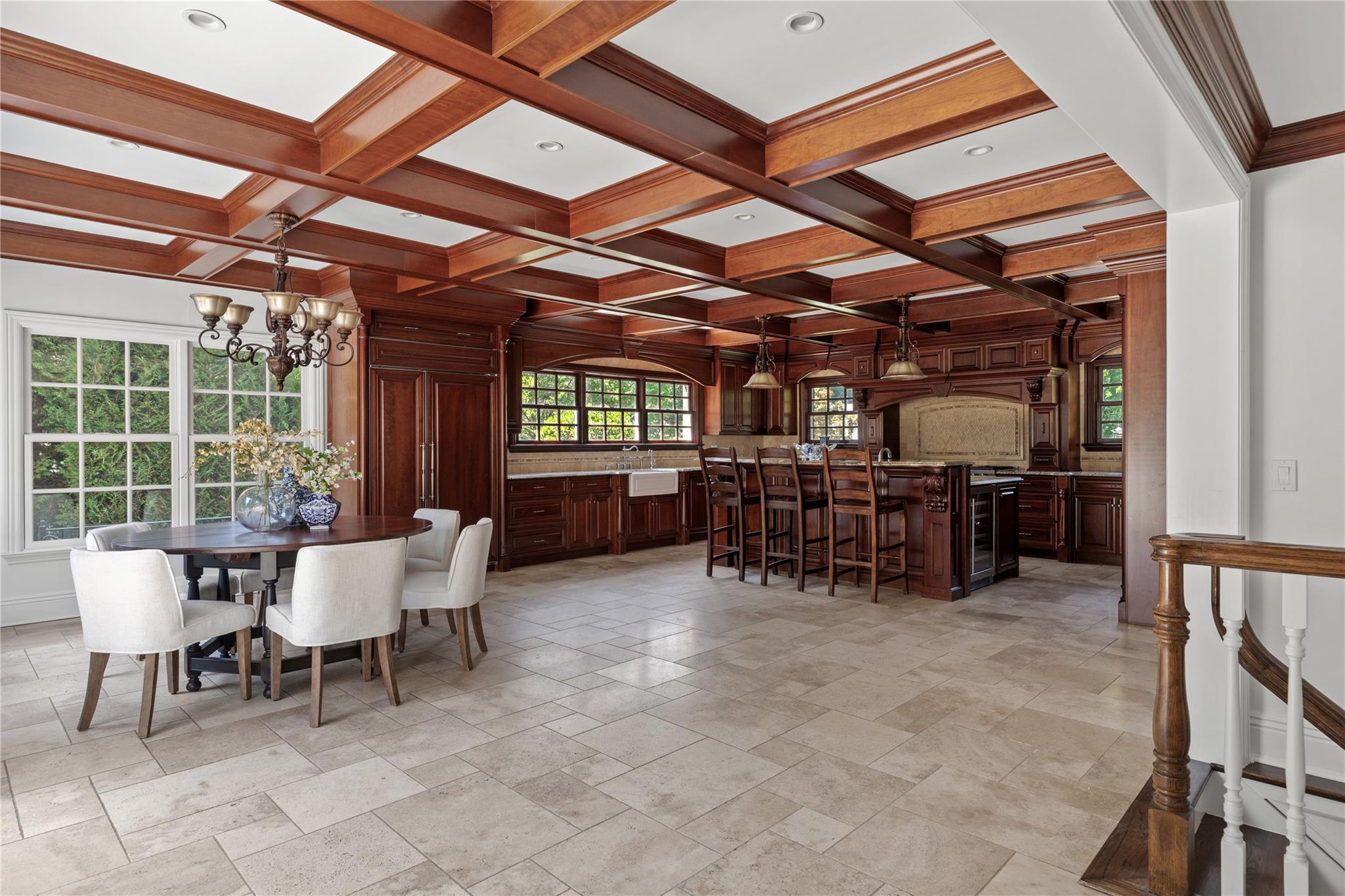 Perfectly situated in the prestigious Village of Flower Hill, this stunning 5-bedroom, 4. 5-bathroom brick Colonial is an extraordinary residence that honors tradition while embracing an expansive layout designed for elevated living. Custom built and impeccably maintained, the residence features large formal entertaining spaces with soaring ceilings, oversized windows that bathe the home in natural light, and gleaming hardwood floors throughout. The main level showcases a gracious formal living room and dining room, as well as a dramatic great room anchored by a floor-to-ceiling stone fireplace. The adjacent gourmet eat-in kitchen is a chef’s dream, appointed with bespoke dark wood cabinetry, premium stainless steel appliances, an oversized gas range, limestone flooring and an intricate coffered ceiling. A spacious mudroom with built-in storage and a laundry area connects to the attached two-car garage for added convenience. A versatile first-floor bedroom or private office is accompanied by a full bath - ideal for guests or work-from-home needs. Upstairs, the serene primary suite impresses with cathedral ceilings, a generous walk-in closet, a sitting room and a spa-inspired bath featuring a soaking tub and walk-in shower. Three additional bedrooms and two full bathrooms complete the upper level. The finished walk-out lower level offers flexible living space, including a bonus room and powder room - can be utilized for recreation, fitness, or a playroom. Additional highlights include dual French drain systems, both front and rear staircases, and exceptional storage throughout. Set on beautifully landscaped grounds, the . 52 acre exterior boasts mature privacy plantings and an expansive stone patio with a fully equipped outdoor kitchen - ideal for backyard dining and entertaining. Residents of Flower Hill enjoy exclusive access to local preserves and parks with scenic walking trails, sports courts, and playgrounds. Located within the highly regarded Port Washington Union Free School District.