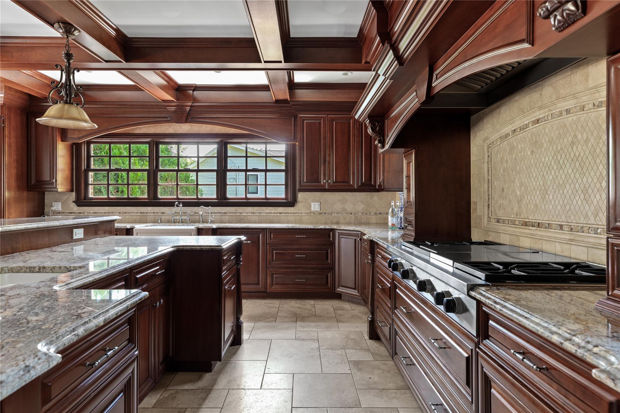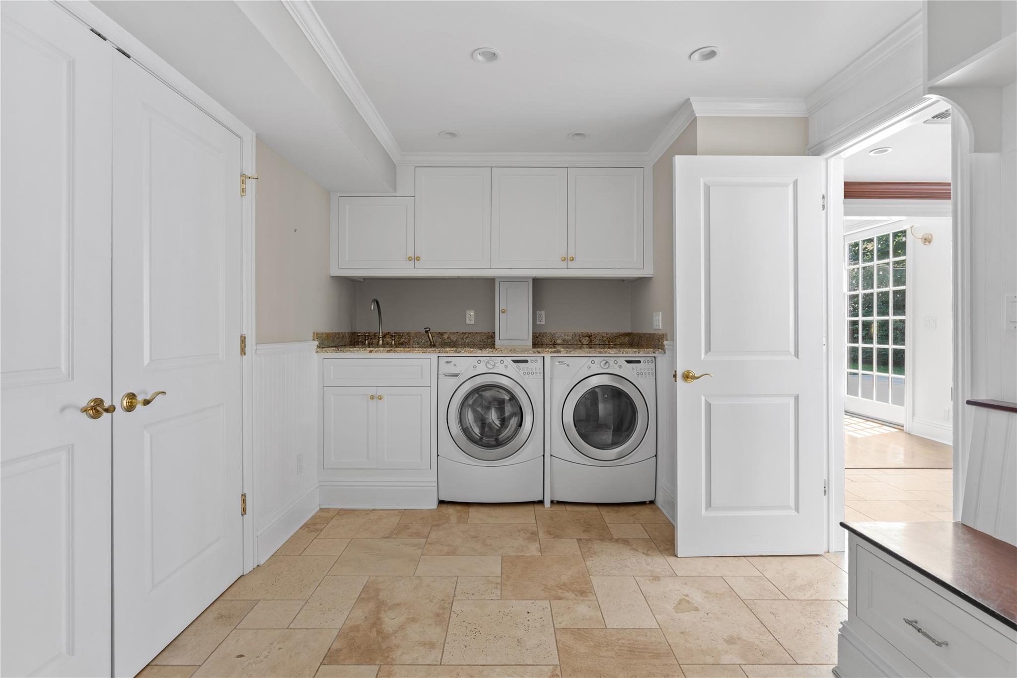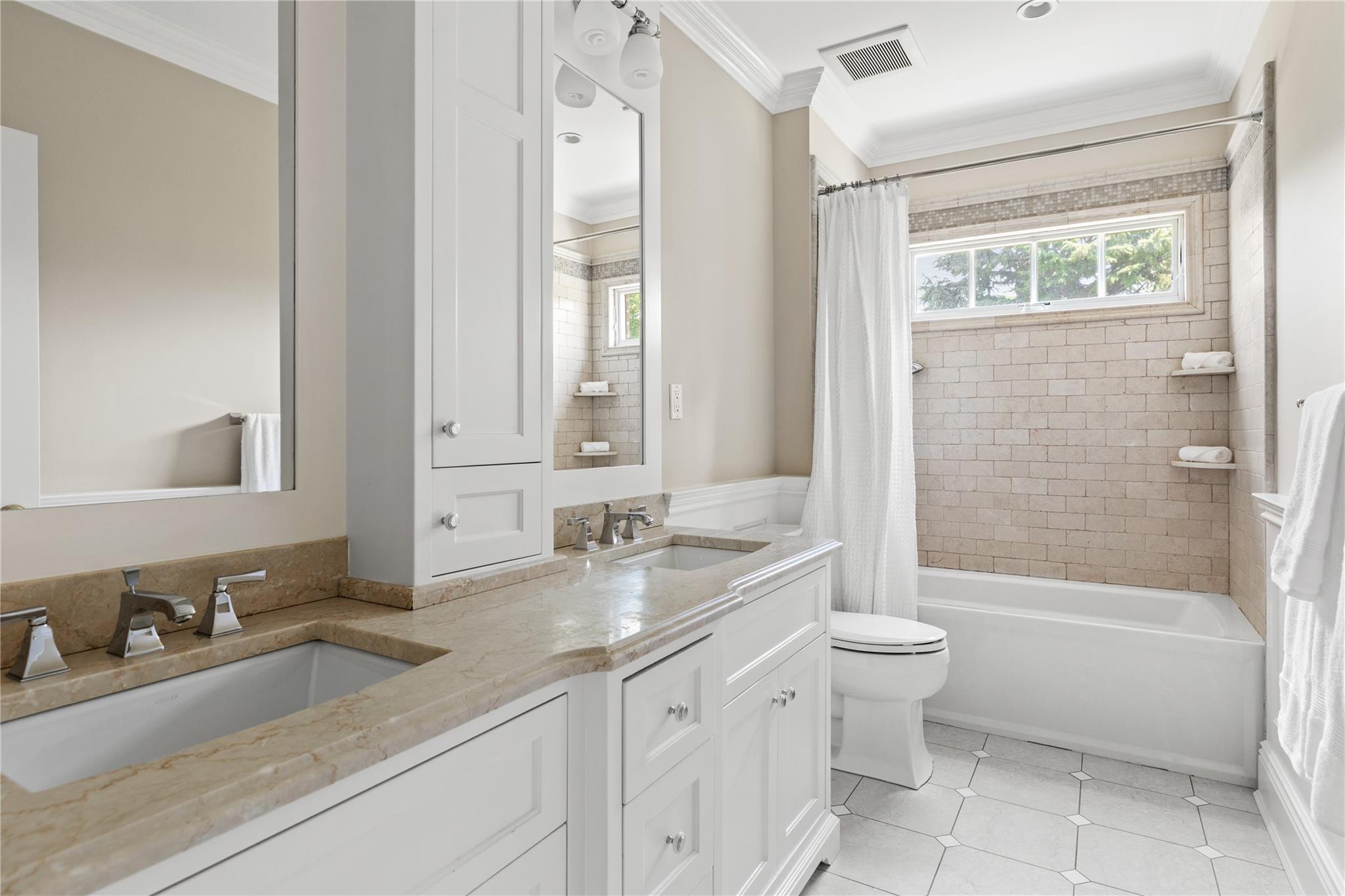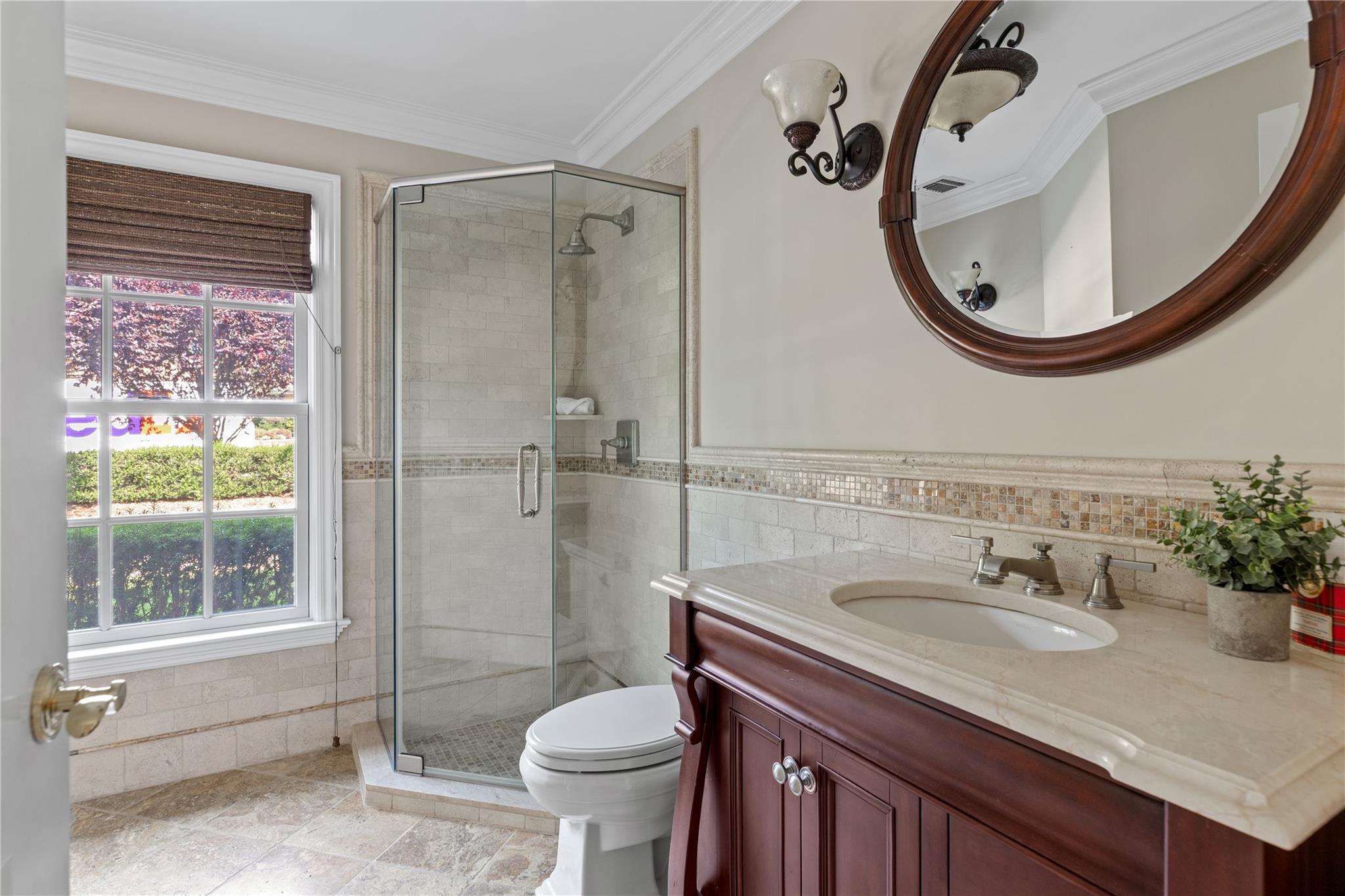 Perfectly situated in the prestigious Village of Flower Hill, this stunning 5-bedroom, 4. 5-bathroom brick Colonial is an extraordinary residence that honors tradition while embracing an expansive layout designed for elevated living. Custom built and impeccably maintained, the residence features large formal entertaining spaces with soaring ceilings, oversized windows that bathe the home in natural light, and gleaming hardwood floors throughout. The main level showcases a gracious formal living room and dining room, as well as a dramatic great room anchored by a floor-to-ceiling stone fireplace. The adjacent gourmet eat-in kitchen is a chef’s dream, appointed with bespoke dark wood cabinetry, premium stainless steel appliances, an oversized gas range, limestone flooring and an intricate coffered ceiling. A spacious mudroom with built-in storage and a laundry area connects to the attached two-car garage for added convenience. A versatile first-floor bedroom or private office is accompanied by a full bath - ideal for guests or work-from-home needs. Upstairs, the serene primary suite impresses with cathedral ceilings, a generous walk-in closet, a sitting room and a spa-inspired bath featuring a soaking tub and walk-in shower. Three additional bedrooms and two full bathrooms complete the upper level. The finished walk-out lower level offers flexible living space, including a bonus room and powder room - can be utilized for recreation, fitness, or a playroom. Additional highlights include dual French drain systems, both front and rear staircases, and exceptional storage throughout. Set on beautifully landscaped grounds, the . 52 acre exterior boasts mature privacy plantings and an expansive stone patio with a fully equipped outdoor kitchen - ideal for backyard dining and entertaining. Residents of Flower Hill enjoy exclusive access to local preserves and parks with scenic walking trails, sports courts, and playgrounds. Located within the highly regarded Port Washington Union Free School District.