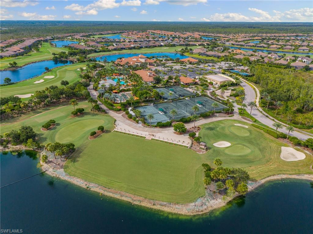 Perfectly positioned on one of the community’s most coveted lots, this 3-bedroom + den, 3-bath residence delivers an elevated lifestyle with sweeping views of the 9th hole and tranquil water beyond. Located in the heart of North Naples’ premier golf and country club community, this home masterfully blends sophistication with everyday ease—and it comes with a FULL GOLF MEMBERSHIP INCLUDED, granting immediate access to one of the area’s most exclusive courses. Inside, soaring ceilings and refined finishes complement a flowing open-concept layout. The gourmet kitchen is anchored by an oversized island, stainless steel appliances, gas cooktop, and walk-in pantry—ideal for everything from casual mornings to upscale hosting. The primary suite is a sanctuary with spa-style bath, dual vanities, and custom closets. Designed for those who live for indoor-outdoor living, the expansive lanai features a sparkling pool and spa, a large dining space, fireplace lounge, and an outdoor kitchen—all with postcard-perfect views of the fairway and lake. For added peace of mind, the home is equipped with ELECTRIC ROLL-DOWN HURRICANE SCREENS. Beyond the home, Esplanade offers a resort-caliber lifestyle with a private 18-hole championship golf course, clubhouse, resort-style pool with cabanas & tiki bar, Culinary Center with fine & casual dining, full-service spa, fitness center, tennis, pickleball, and more—all set among walking trails and protected preserves.