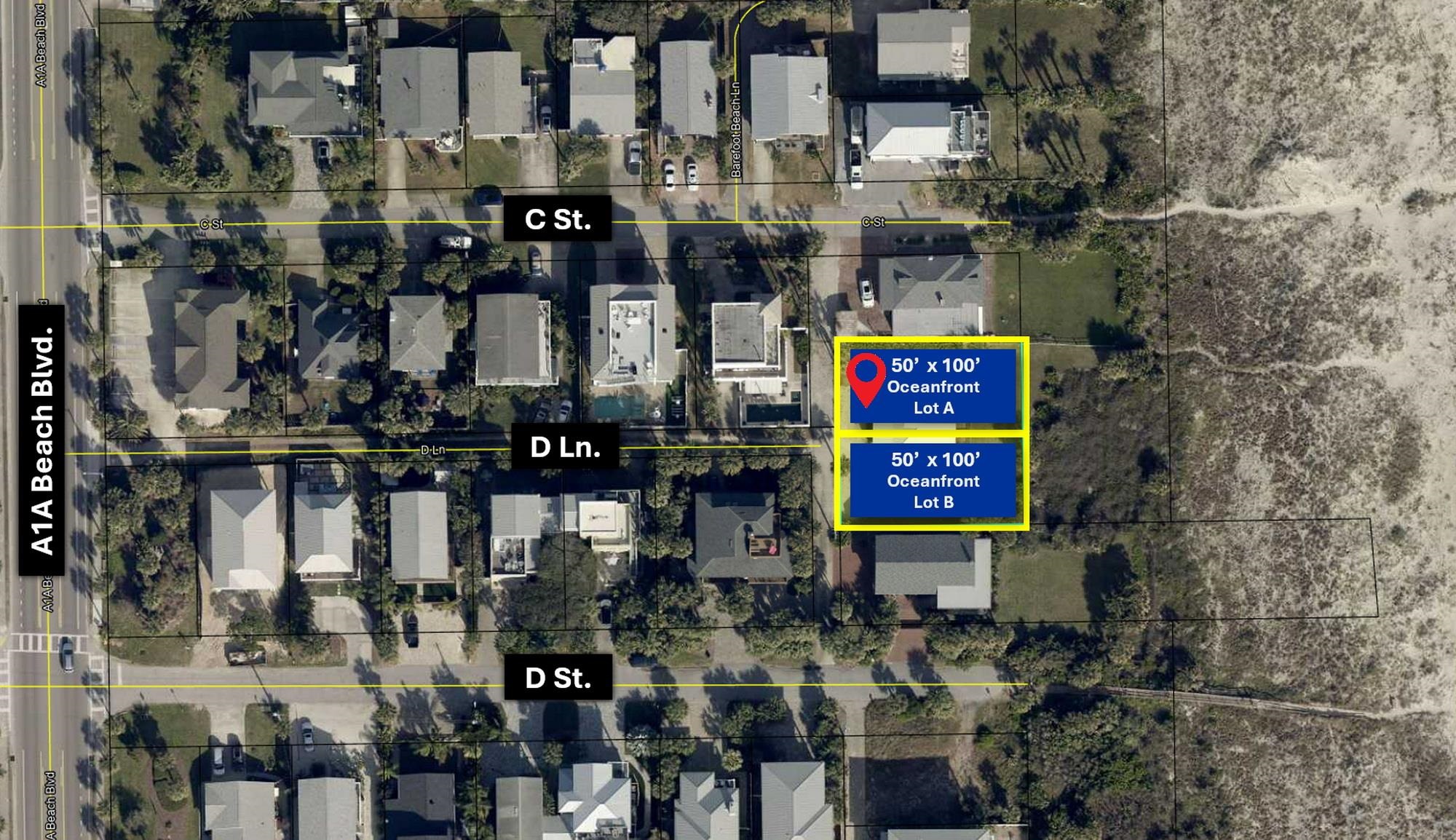 Oceanfront Lot in Prime St. Augustine Beach Location! This 50 x 100 ft residential lot offers unobstructed views of the Atlantic and direct access to the beautiful white sands of St. Augustine Beach. Nestled in a walkable, vibrant coastal community with no HOA restrictions, it's the perfect place to design and build your custom beachfront escape. A rare opportunity in one of Florida’s most beloved beach towns! The adjacent 50 x 100 ft lot (Lot B) is also available. See the photos for details.