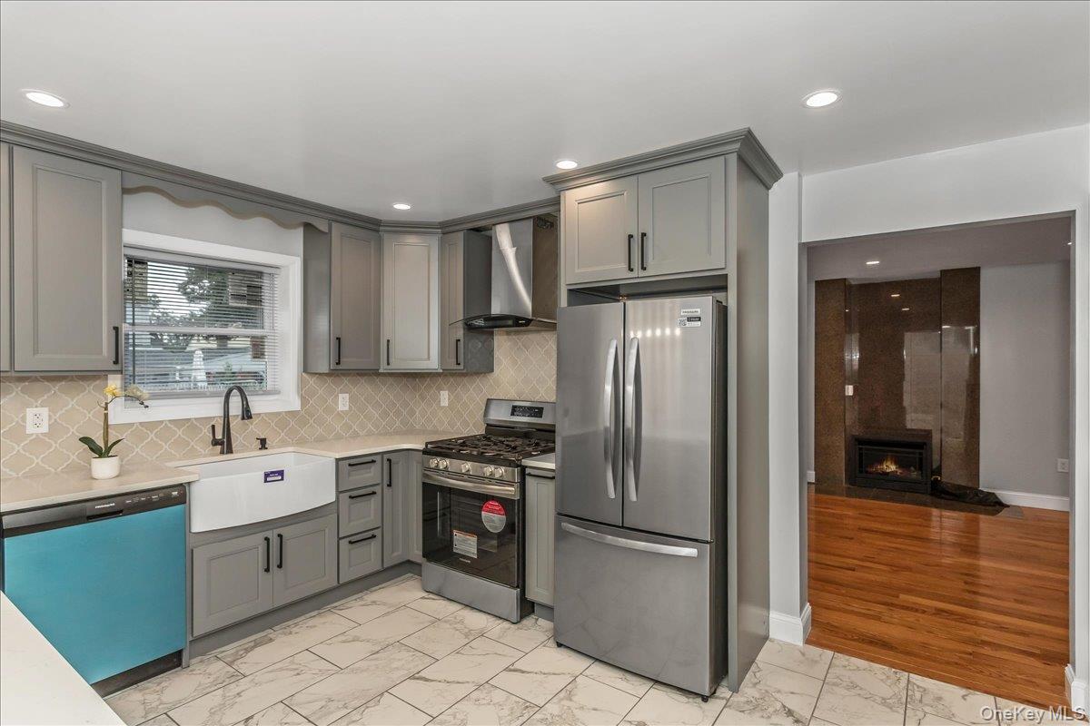 Welcome home to 664 Clinton! This newly constructed home seamlessly blends curated style and timeless elegance with modern comforts. Located in the heart of Uniondale, this home is light and bright with an open concept floor plan. Complete with a Chef's custom eat in kitchen, modern shaker cabinets, farm-house sink, quartz countertops, kitchen island and state-of-the-art appliances. Enjoy sunny mornings and cozy candlelit holidays in the warm and inviting formal dining room. Focal point of the inviting living space is a charming fireplace! Relax in the first-floor den (potential first floor bedroom). The second floor has a primary bedroom with two walk-in closets, ensuite and private jacuzzi bath. This floor continues with three additional spacious bedrooms, and a full bath. The basement is full and finished with a separate entrance, ideal for recreation, office, playroom, home gym, laundry and much more. Professionally landscaped grounds make the yard your private retreat. This home is conveniently located close to schools, houses of worship, shopping and green spaces. Make this your dream home today! Pack your bags and move right in, nothing to do, this home is waiting for you!