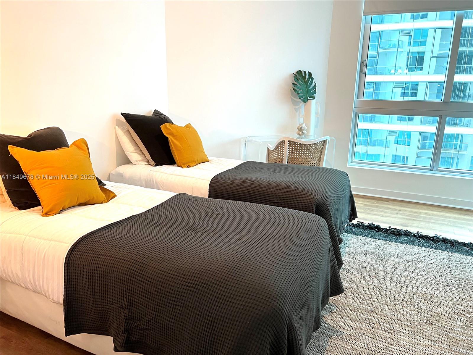 Very unique floor plan for this 2 bedroom, 2 bathroom unit at Met 1, stylish and elegant, fully furnished, split floor plan, 2 suites, new laminated flooring, custom built-in walk-in closets, washer and dryer, screens and block-out curtains, balcony, painted in white, , ready to move in. Excellent location close to Whole Foods, Bayside, Arena, Port of Miami, Downtown and Brickell Ave. One assigned parking space, pool, gym, sauna, business room, lounge. Concierge.