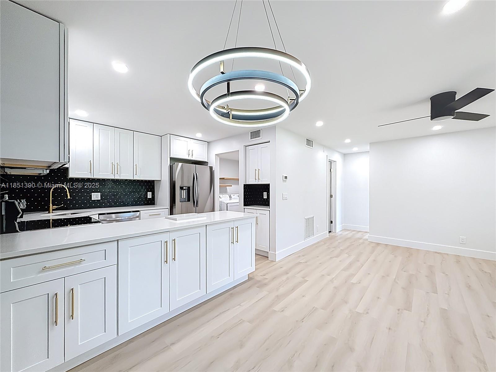 Why settle for ordinary? This fully renovated 1BR/1BA first-floor condo delivers Ritz-Carlton-style luxury. Step into the open concept Chef's kitchen with with white shaker cabinets, quartz countertops, and brand-new stainless steel appliances. Elegant vinyl plank flooring flows throughout, and the spa-inspired bathroom invites pure relaxation. Enjoy the full-size in-unit washer/dryer and Sip your favorite drink on the spacious screened porch, surrounded by peace, privacy, and palm trees. Located near I-95 & the Turnpike in a resort-style community with pool, tennis & racquetball courts, BBQ areas, and scenic lakefront trails. Move-in ready, unmatched in quality—this is your chance to upgrade your lifestyle. Schedule a showing today!