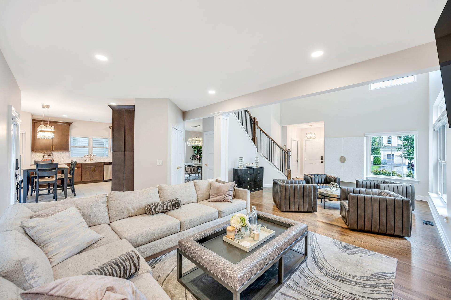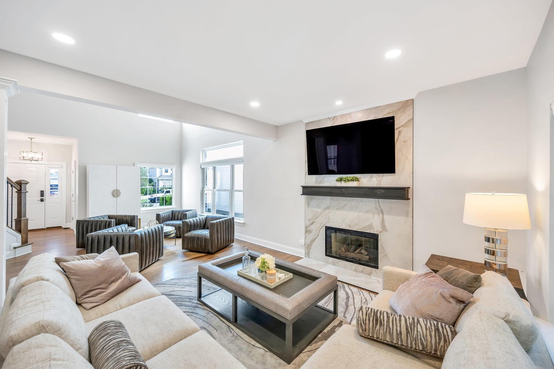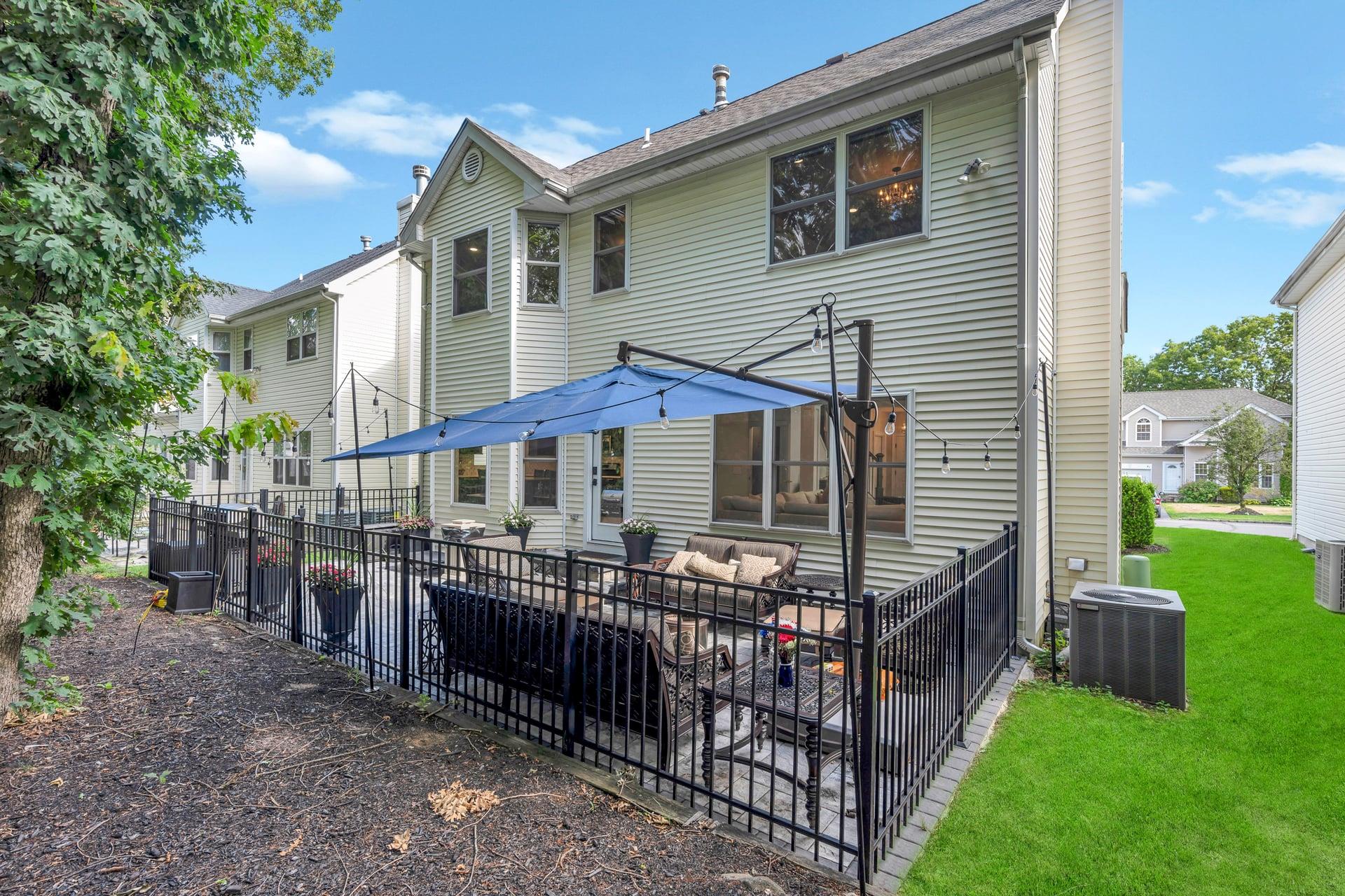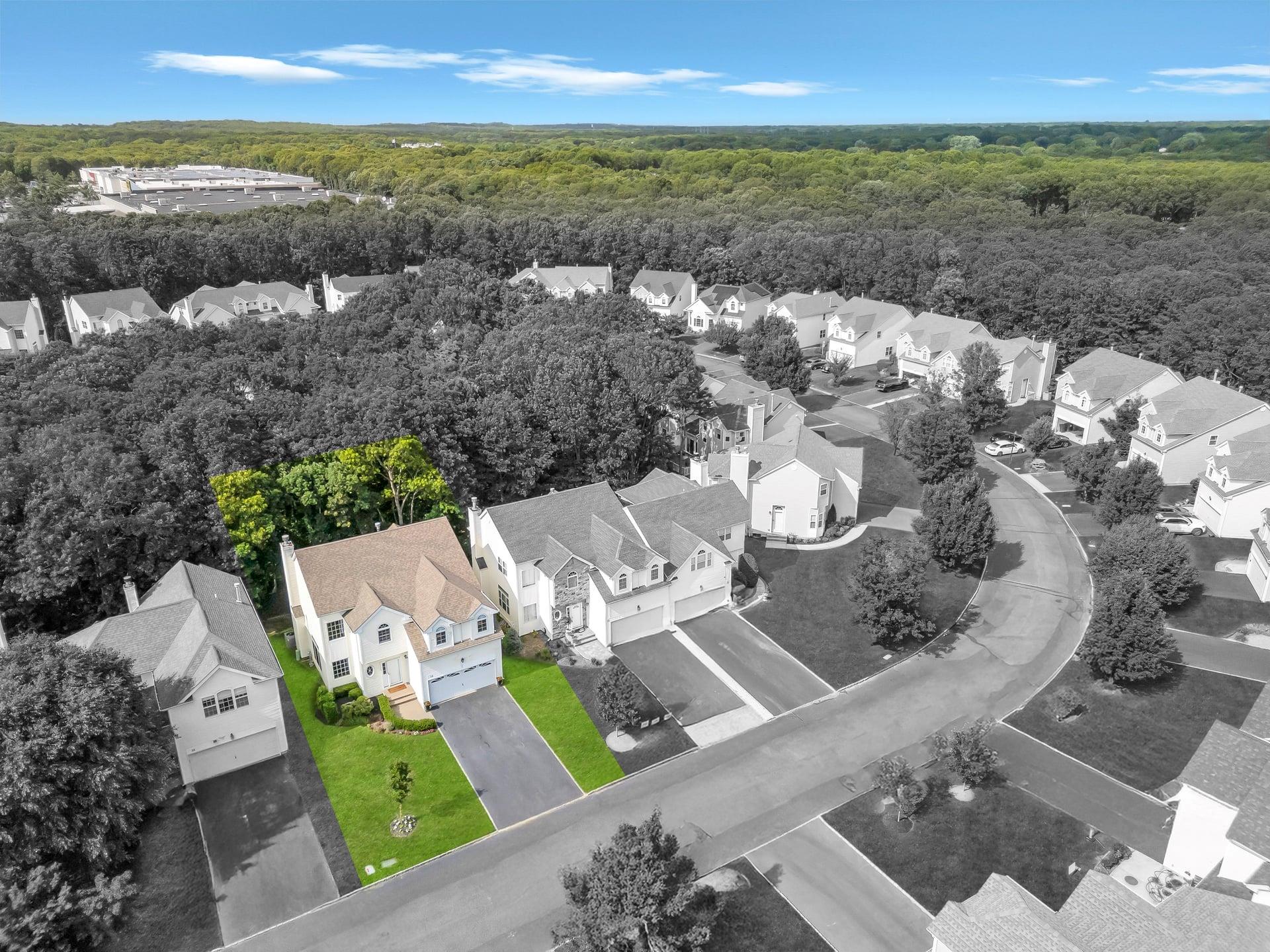 Welcome to your dream home! Incredible opportunity to own a fully detached single-family home inside a private gated Three Village Green HOA offering luxury living with none of the hassle! One of the best locations in the community! Step into a grand two-story entry with a soaring 21-foot ceilings. This home has a modern open floor plan with tasteful details. The chef’s kitchen features a farmhouse sink, gorgeous cabinets, a designer tile marble backsplash, quartz countertops, a large pantry. Just off the kitchen is a door leading to your stunning and private paved patio, ideal for entertaining or enjoying the outdoors. The kitchen flows seamlessly into a formal dining room. Marble sink in half bath is a show stopper! The second floor offers spacious bedrooms, a gorgeous hallway full bath with a tub and glass-enclosed shower, A laundry closet with doors for convenience . The spa-like primary suite features two large walk-in closets with custom closet systems. The luxurious primary bath includes a rain head shower and a marble double vanity. The basement features a large finished space for additional relaxation. The home is filled with oversized windows that flood the space with natural light. Additional highlights include hardwood floors on the main level, modern LVT upstairs, 200-amp electric service. Brand new hot water heater! Located in the highly desirable Three Village School District, this stunning home is part of an exclusive development featuring a clubhouse with gym and event space, a saltwater pool, and a playground. This is low-maintenance luxury living at its absolute finest. Enjoy landscaping, snow removal, driveway sealing, water usage, and more all included in your low monthly HOA fee of just $415!