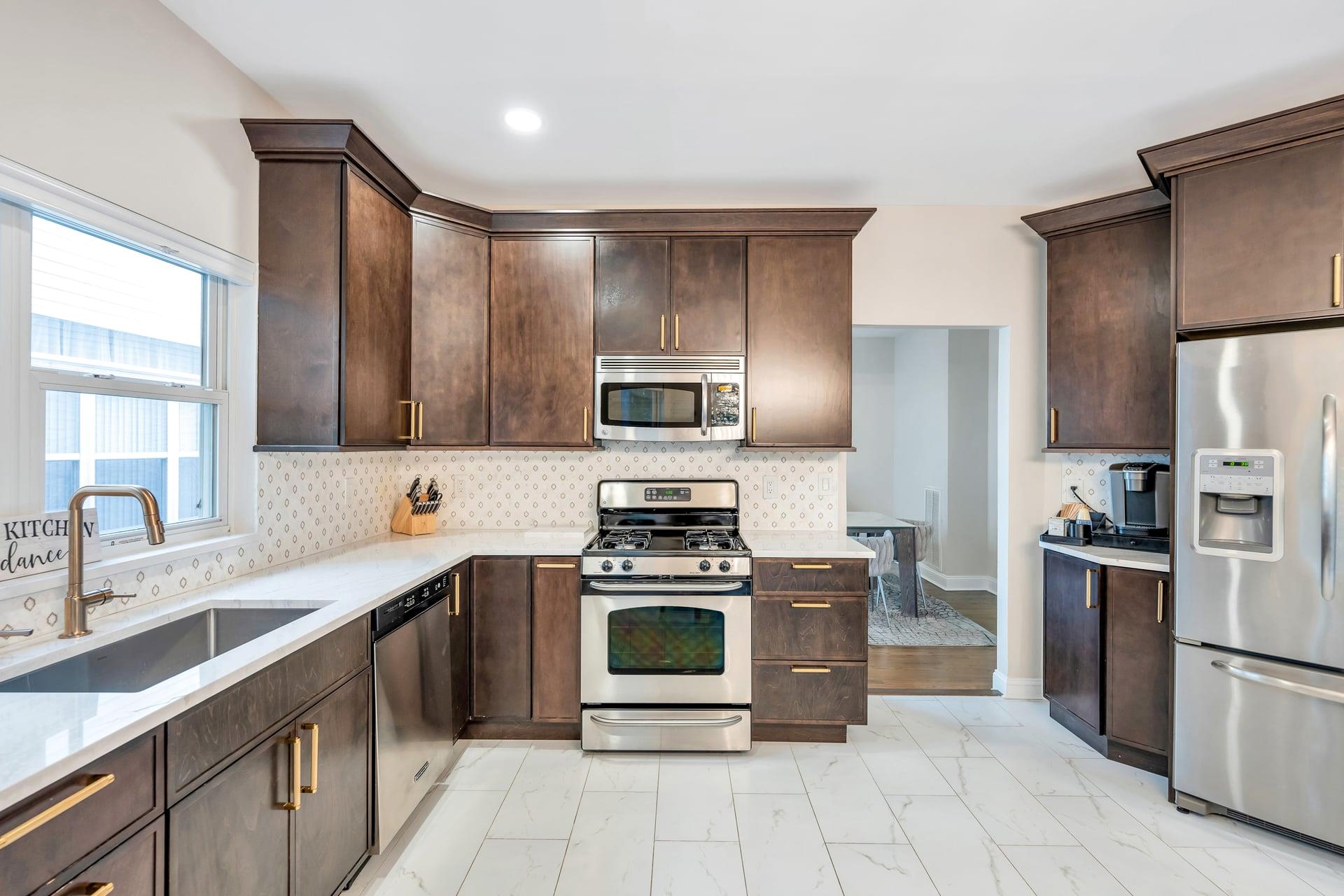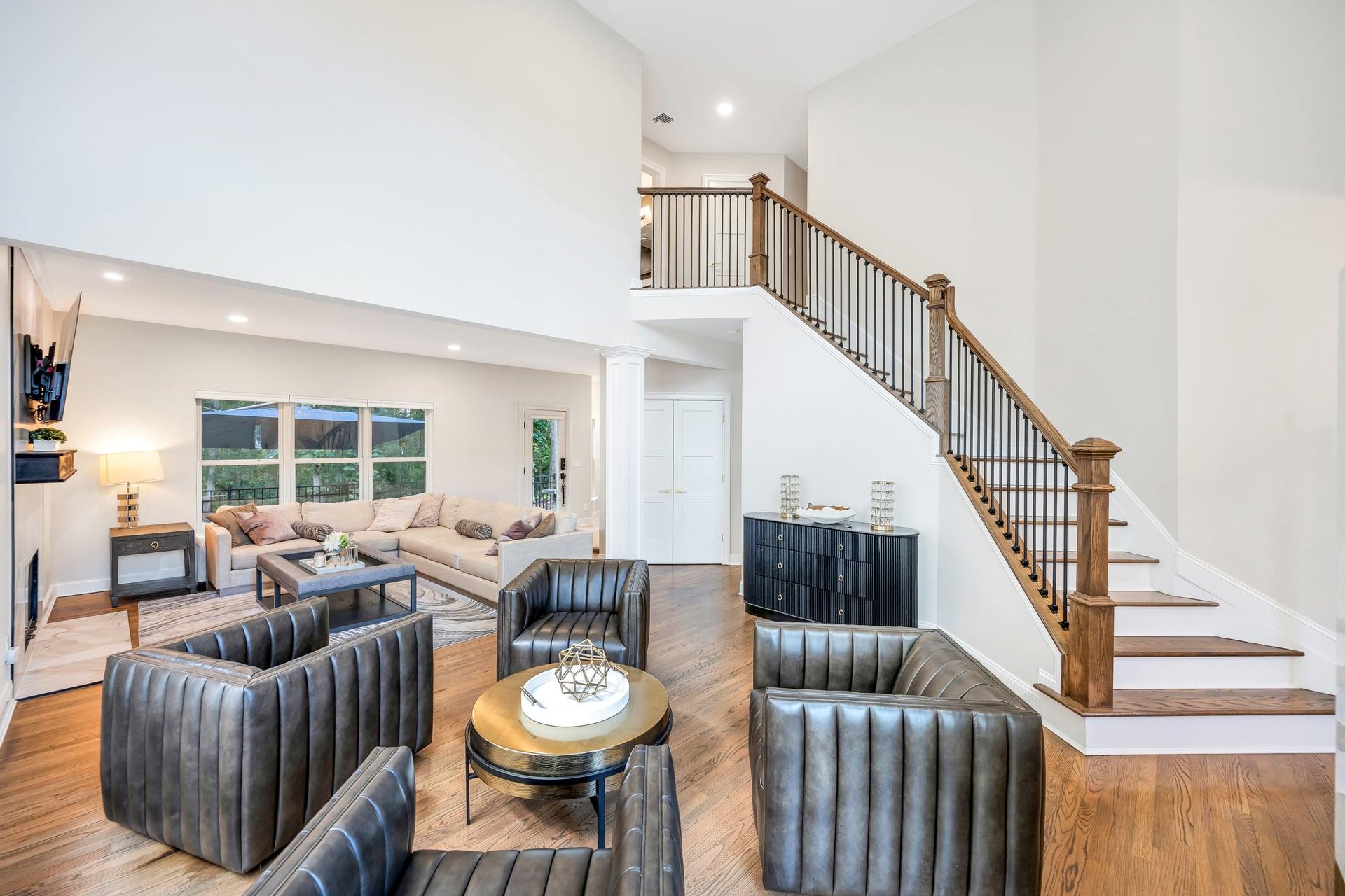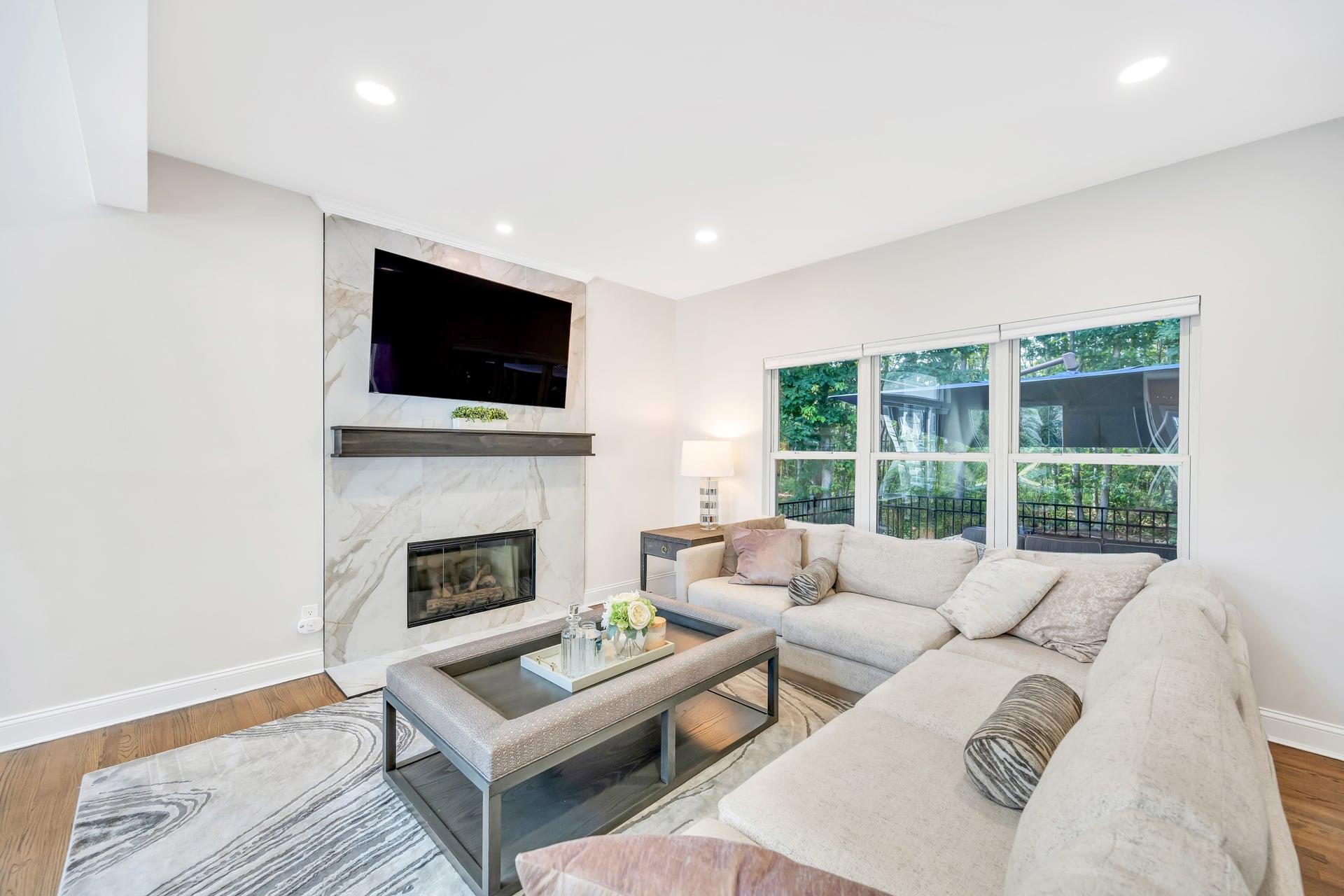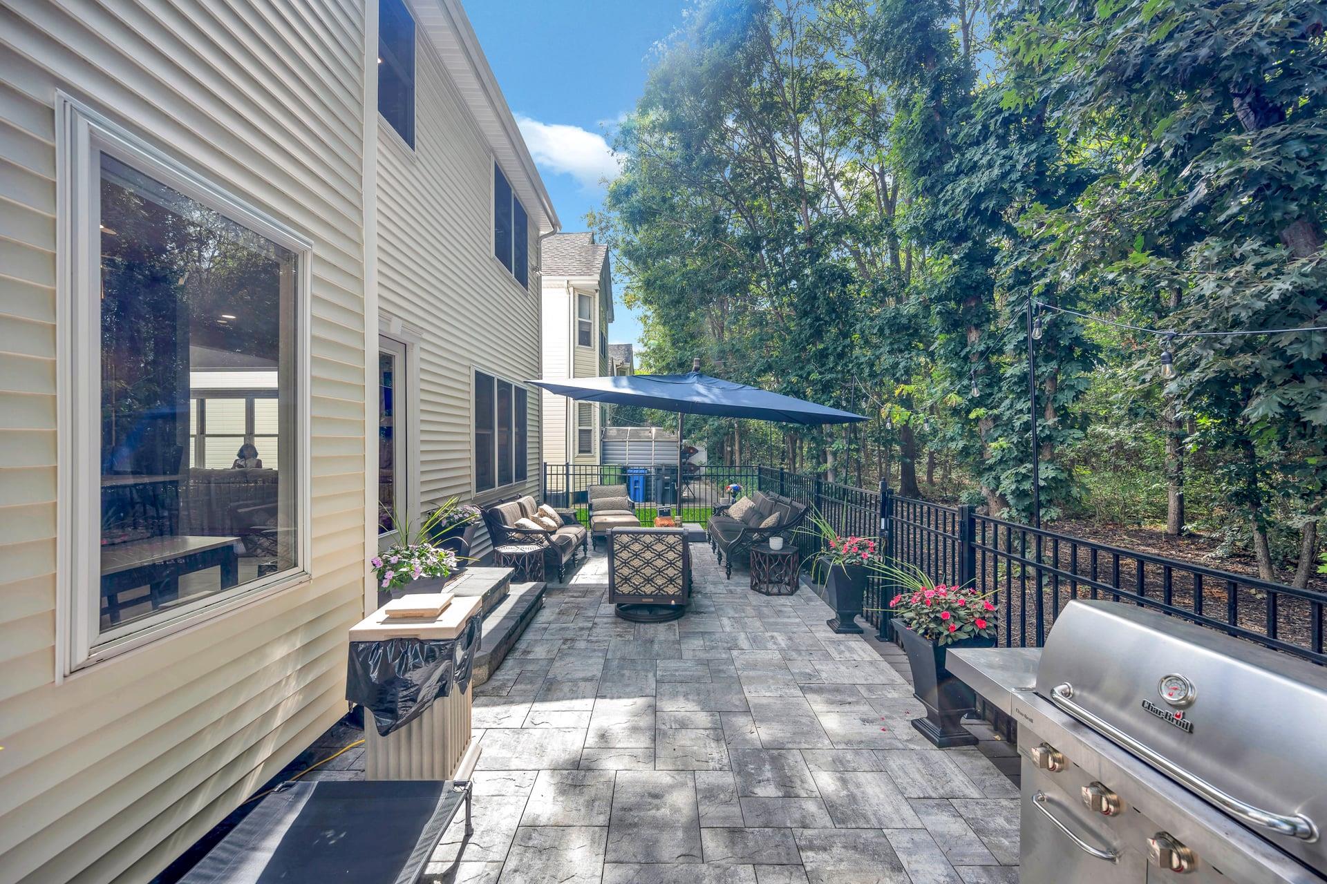 Welcome to your dream home! Incredible opportunity to own a fully detached single-family home inside a private gated Three Village Green HOA offering luxury living with none of the hassle! One of the best locations in the community! Step into a grand two-story entry with a soaring 21-foot ceilings. This home has a modern open floor plan with tasteful details. The chef’s kitchen features a farmhouse sink, gorgeous cabinets, a designer tile marble backsplash, quartz countertops, a large pantry. Just off the kitchen is a door leading to your stunning and private paved patio, ideal for entertaining or enjoying the outdoors. The kitchen flows seamlessly into a formal dining room. Marble sink in half bath is a show stopper! The second floor offers spacious bedrooms, a gorgeous hallway full bath with a tub and glass-enclosed shower, A laundry closet with doors for convenience . The spa-like primary suite features two large walk-in closets with custom closet systems. The luxurious primary bath includes a rain head shower and a marble double vanity. The basement features a large finished space for additional relaxation. The home is filled with oversized windows that flood the space with natural light. Additional highlights include hardwood floors on the main level, modern LVT upstairs, 200-amp electric service. Brand new hot water heater! Located in the highly desirable Three Village School District, this stunning home is part of an exclusive development featuring a clubhouse with gym and event space, a saltwater pool, and a playground. This is low-maintenance luxury living at its absolute finest. Enjoy landscaping, snow removal, driveway sealing, water usage, and more all included in your low monthly HOA fee of just $415!