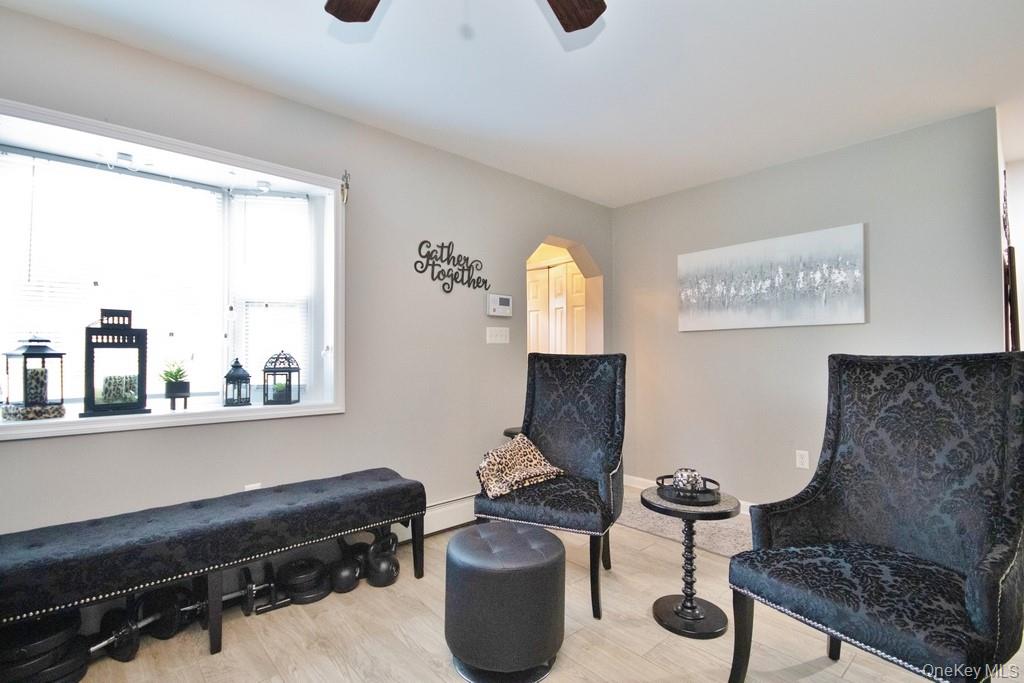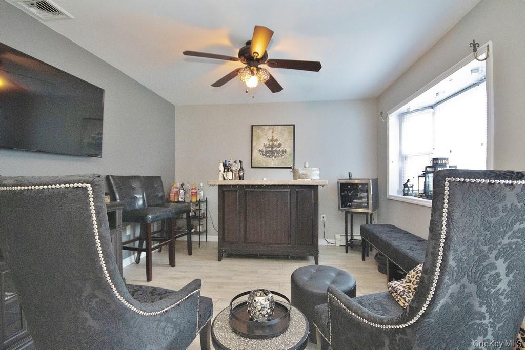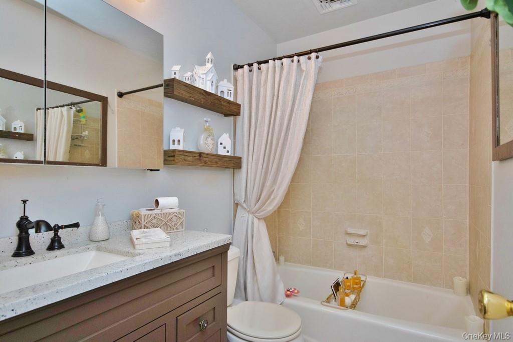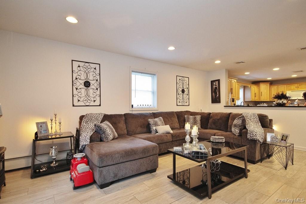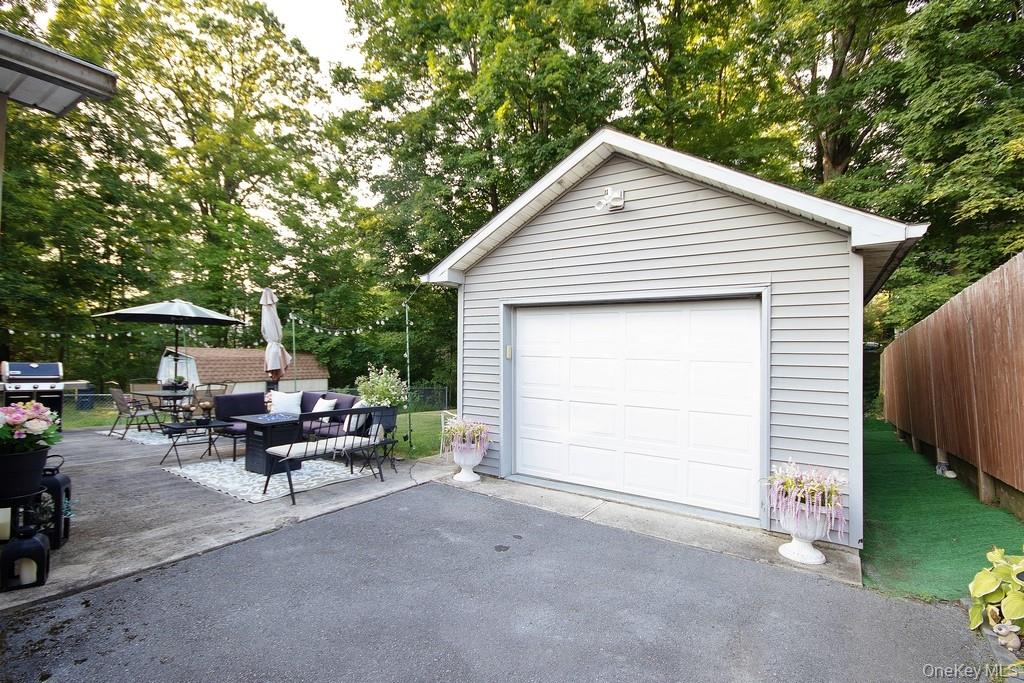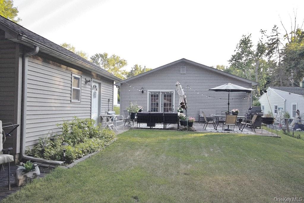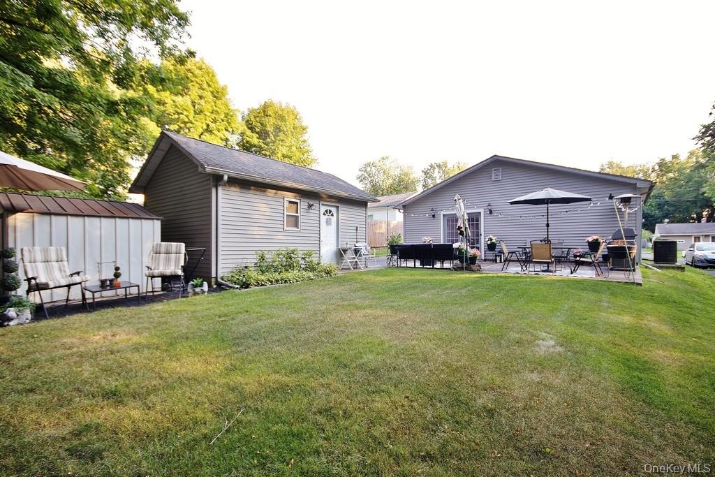 Charming 2-Bedroom, 2-Bath Ranch in Monroe-Woodbury – Prime Location! Welcome to this meticulously maintained ranch-style home, ideally located just two minutes from all major shopping, dining, highways, and public transportation. Nestled on a quiet dead-end street, this beautifully kept property offers the perfect blend of convenience, comfort, and privacy. Inside, you’ll find a spacious layout featuring two large bedrooms and two fully updated bathrooms. The entire home boasts gleaming tile and hardwood floors, crown molding, and abundant natural light throughout. The heart of the home is the oversized kitchen, complete with oak cabinetry, a massive granite center island, and a cozy breakfast nook—ideal for entertaining or casual family meals. Adjacent to the kitchen is a bright and airy living room that leads out to the private backyard. Additionally, there is a formal dining room, currently being used as a bar and recreational space, offering flexible living options. Additional highlights include central air conditioning, a detached one-car garage, and a perfectly flat, private backyard—ideal for relaxing or gardening. The professional landscaping enhances the home’s curb appeal, and the pristine condition of both the interior and exterior reflects true pride of ownership. Whether you’re looking to downsize or prefer the ease of single-level living, this move-in ready ranch has it all. Absolutely nothing to do—just unpack and enjoy!