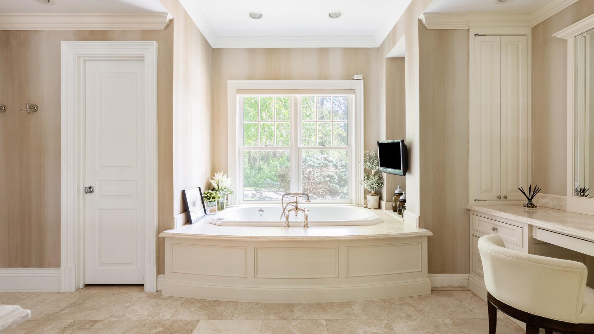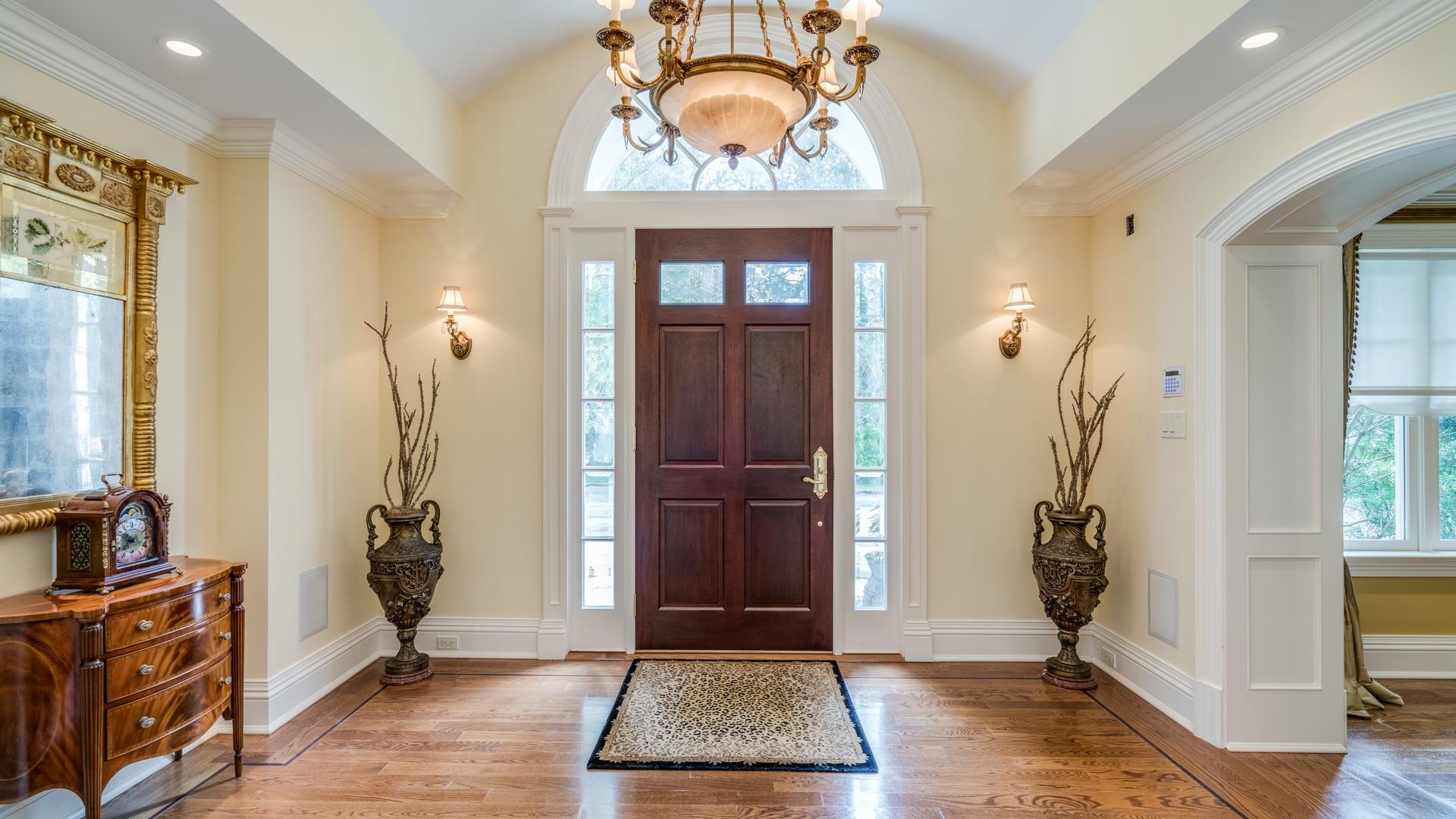 A long private tree lined drive leads to this elegantly appointed home. Featuring six bedrooms, hardwood floors, high ceilings, four fireplaces, and intricate moldings, this residence exudes sophistication. The chef's kitchen is equipped with top-of-the-line appliances and flows into a charming breakfast room. Spacious principal rooms boast elegant designs, making them ideal for entertaining family and friends. The formal dining room comfortably accommodates a large gathering and the great room is bathed in natural light through the French doors, featuring a mantled fireplace that adds warmth. A cozy den is perfect for snuggling up while enjoying your favorite shows. On the first floor, the primary suite offers its own oasis, encompassing a mahogany home office, fitted closets, a mantled fireplace, barrel ceiling and a luxurious marble bathroom. There is an additional bedroom and full bath on the main level. The second floor offers two bedroom suites, a two room suite and multi-purpose den. The lower level offers a thoughtful floor plan for entertaining. There is a wine cellar fit for the wine connoisseur, gym, built-in wet bar, two full bathrooms, and an additional bedroom. Verdant two acre landscape and covered patio. Desirable location with fine dining, Tilles Center, The Americana, Wheatley Plaza, golf, equestrian trails, and the beach all nearby. Only 45 minutes from NYC and close to international airports.