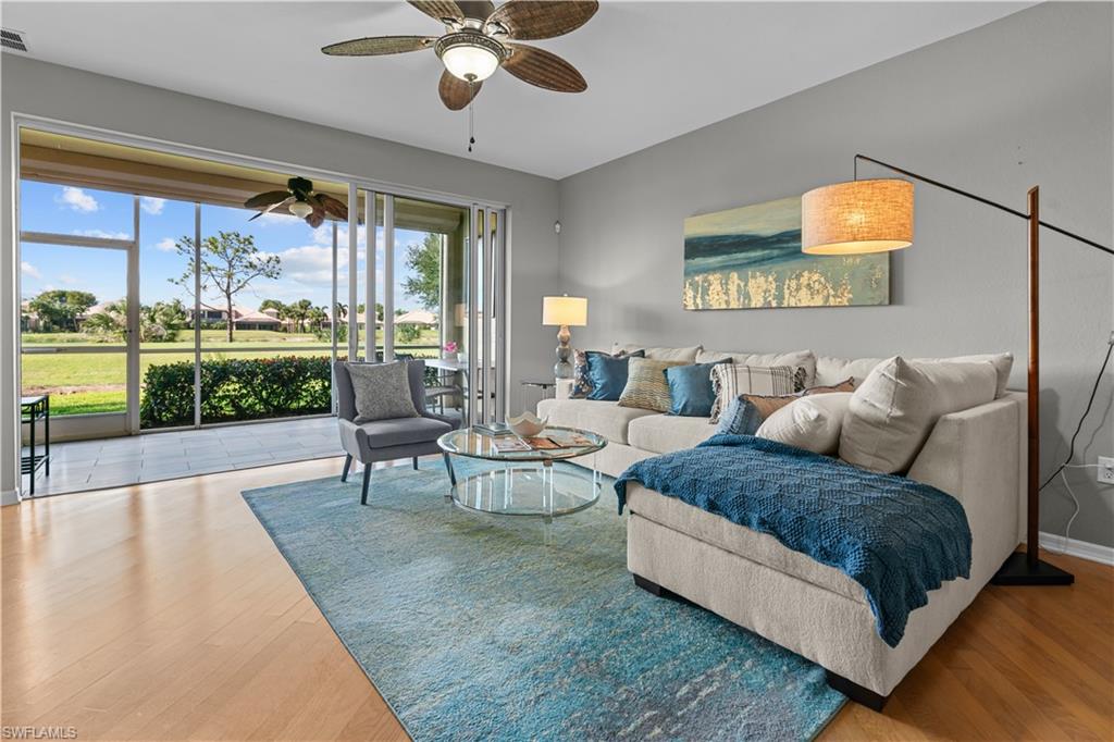 **Rented Jan 15-April 1** Find your ideal paradise escape! This tastefully furnished 3-bedroom, 2-bathroom turnkey condo is ready for your retreat, offering stunning lake and golf course views to enjoy from the moment you arrive. Featuring an open-concept layout, the spacious living and dining areas flow seamlessly into a modern kitchen with granite countertops, white cabinetry, and stainless steel appliances. The primary suite is a peaceful oasis with bay windows overlooking the fairway, a walk-in shower, and dual vanities. Enjoy the Florida lifestyle on your private screened lanai, perfect for relaxing or entertaining. Located in a prestigious golf community, residents have access to resort-style amenities, including a sparkling pool, clubhouse, and more. Just minutes from shopping, dining, and the beaches, this condo is perfect as a vacation getaway. This exceptional rental is your chance to experience the best of Florida living! Social membership available to transfer.