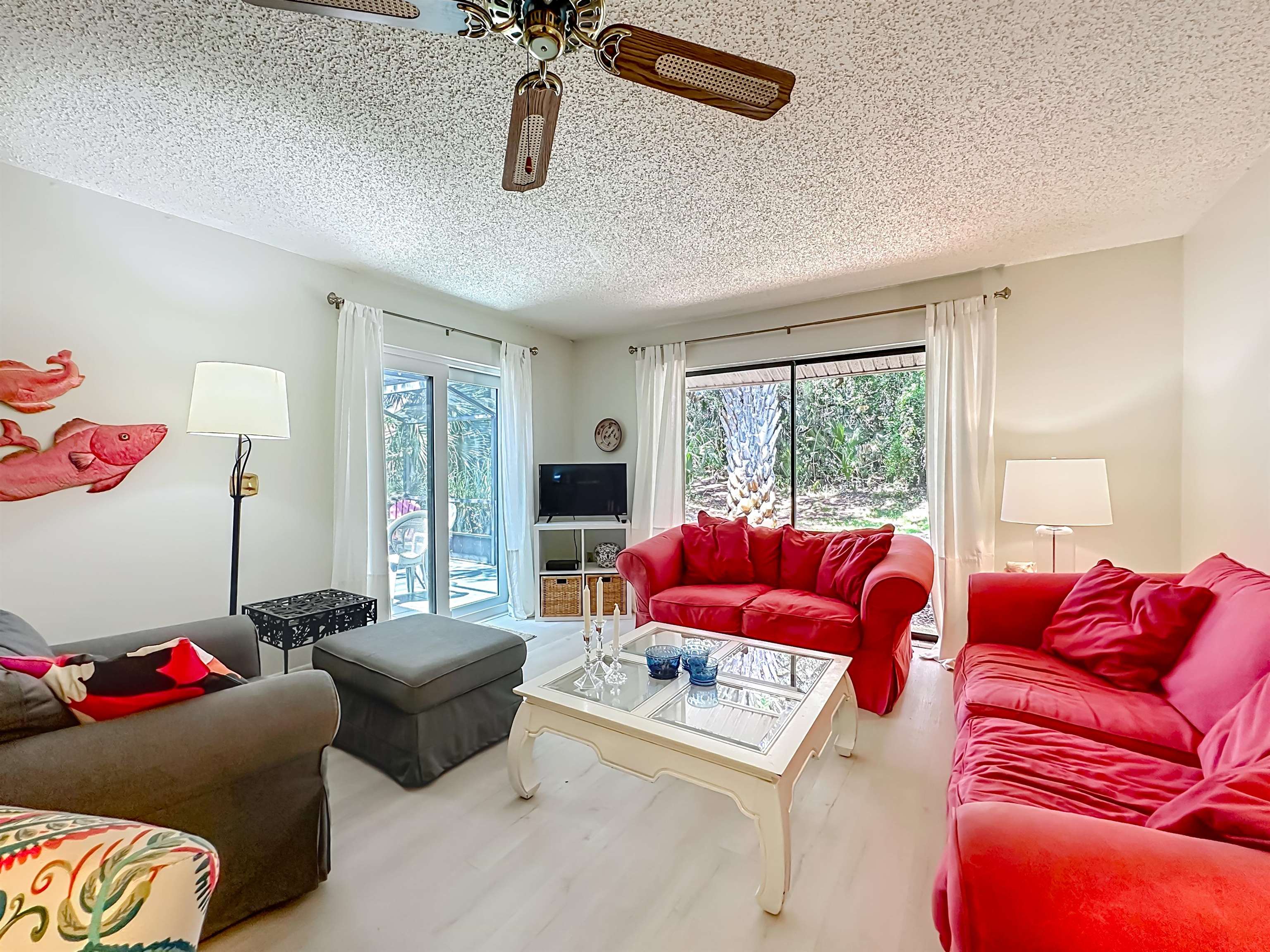 Step into coastal comfort with this beautifully maintained 2-bedroom, 2-bathroom one -story townhouse, located in a gated beachside community that blends relaxation and convenience. Whether you're looking for a full-time residence, vacation escape, or income producing rental, this fully furnished turnkey property checks all the boxes. Enjoy the newly renovated master bathroom, a spacious open layout and a private screen in patio that captures plenty of sun perfect for quiet mornings or entertaining guests. Residents enjoy access to a heated community pool, private beach walkway and neighborhood that embraces short term rentals, making it ideal for investor or part time owners. The singe story layout offers easy living with no stairs and tropical setting adds to the resort style feel.