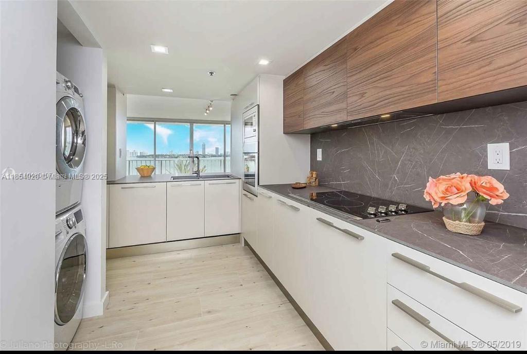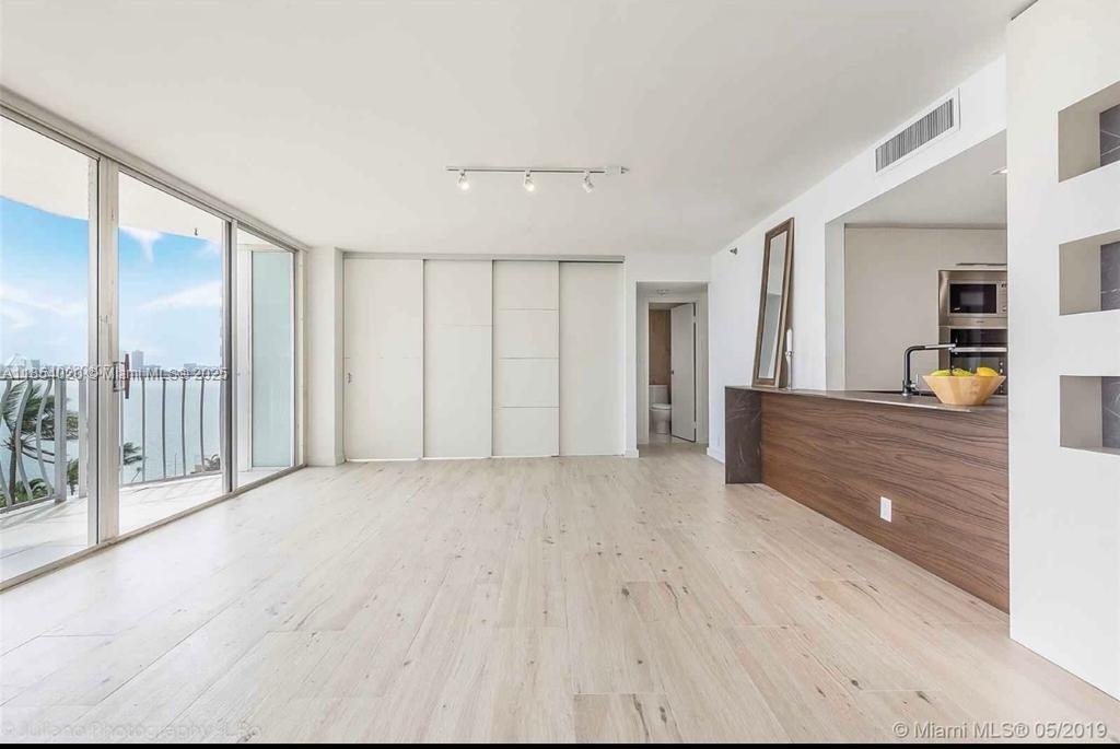 Stunning corner unit with amazing water view of the Biscayne bay and downtown Miami. 2 bedroom/2 bathrooms completely renovated from scratch with the finest material imported from Italy. Porcelain floor and marble bathrooms with double vanity and walk-in shower with massage jets, italian custom made kitchen with built in appliances, costume made luxury closets, stackable wash and dryer, brand new A/C unit and water heater. Flexible floor plan with one of the bedroom that can be opened up to the living room area thanks to the telescopic doors system. FULL SERVICE BUILDING with gym and olimpic size pool. Additional parking/marina are available to buy/rent.