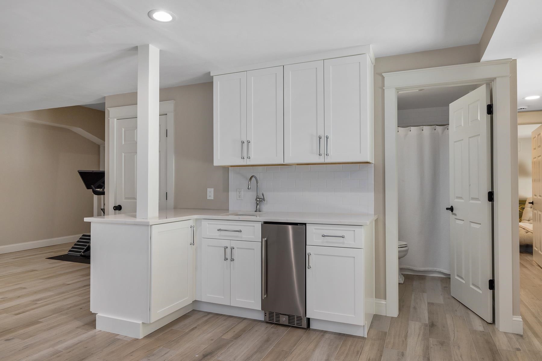 Magnificent 5BR/5. 5BA residence in exclusive Tucker’s Cove, set on a 2. 11-acre corner lot with direct private access to the 182-acre Urban Forestry Center and scenic Sagamore Creek. Fully renovated in 2024, this home is effectively a new build and all renovations were permitted. Modernized kitchen with new custom wood cabinetry, new quartz counters, new Bosch appliances, new Kohler fixtures, a new walk-in pantry, and new LED under/over-cabinet lighting. All bathrooms and the laundry room were renovated with new cabinetry, new porcelain tile, new quartz counters, new Kohler fixtures, and the laundry room features new twin LG WashTowers. Refinished oak floors upstairs; new Berber carpet in bedrooms; new porcelain tile downstairs; the entire residence was newly painted with Sherwin Williams Emerald low-VOC paint. All new Andersen windows, all new exterior doors, new roof, new James Hardie siding, new Azek trim on entire exterior, new Trex decking, new rain gutters, and a new underground water runoff drainage system. New Bosch heat pumps, new Viessmann boiler/on-demand hot water heater, new whole-house water filtration system, new 26kW Generac generator, and a new underground propane tank. Newly landscaped yard and new patio with fire pit. Newly added private lower-level 5th bedroom ideal for in-law/au-pair suite. There is no better-located, higher-quality, fully modernized, and newly renovated home available anywhere in Portsmouth!