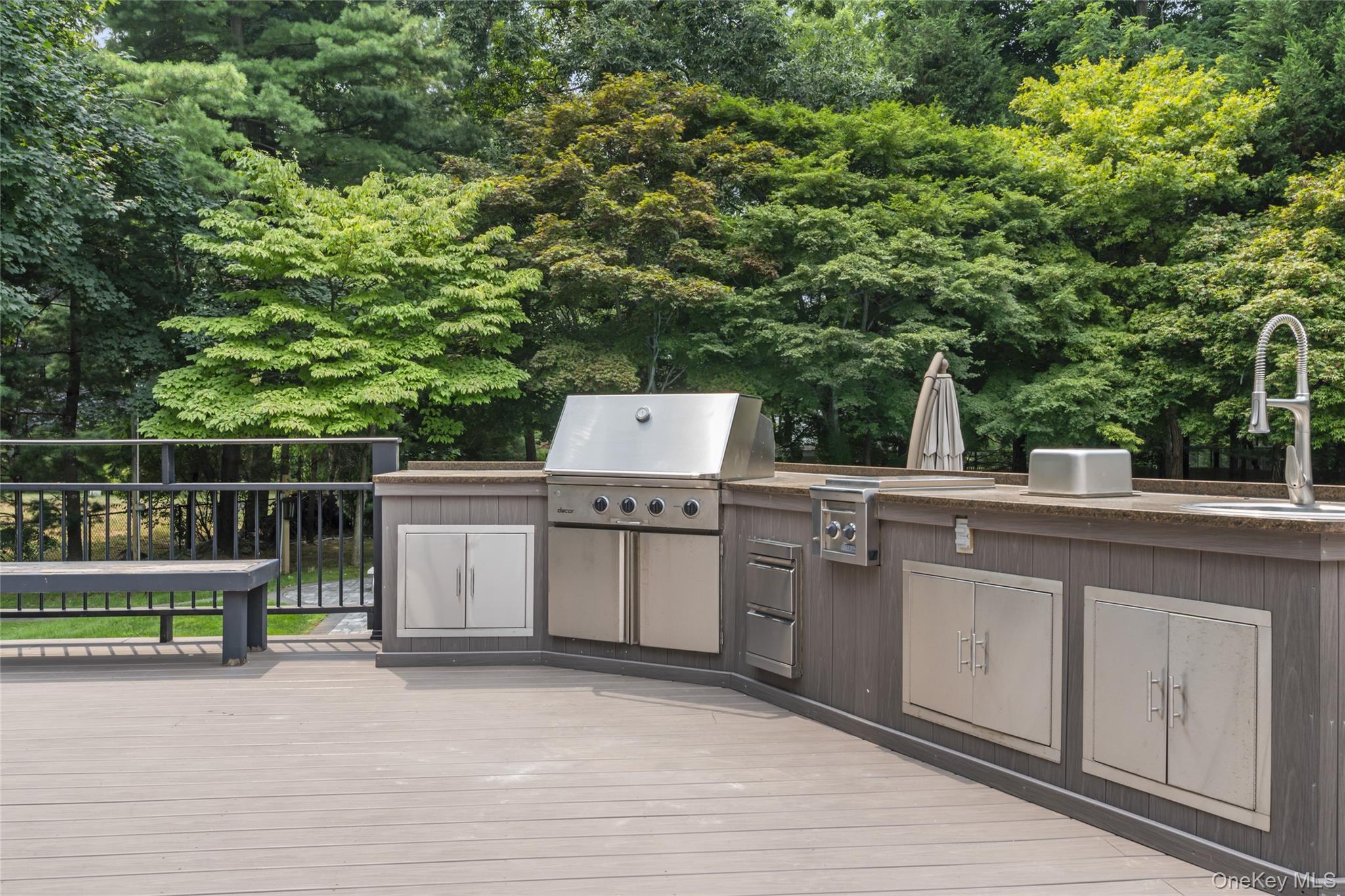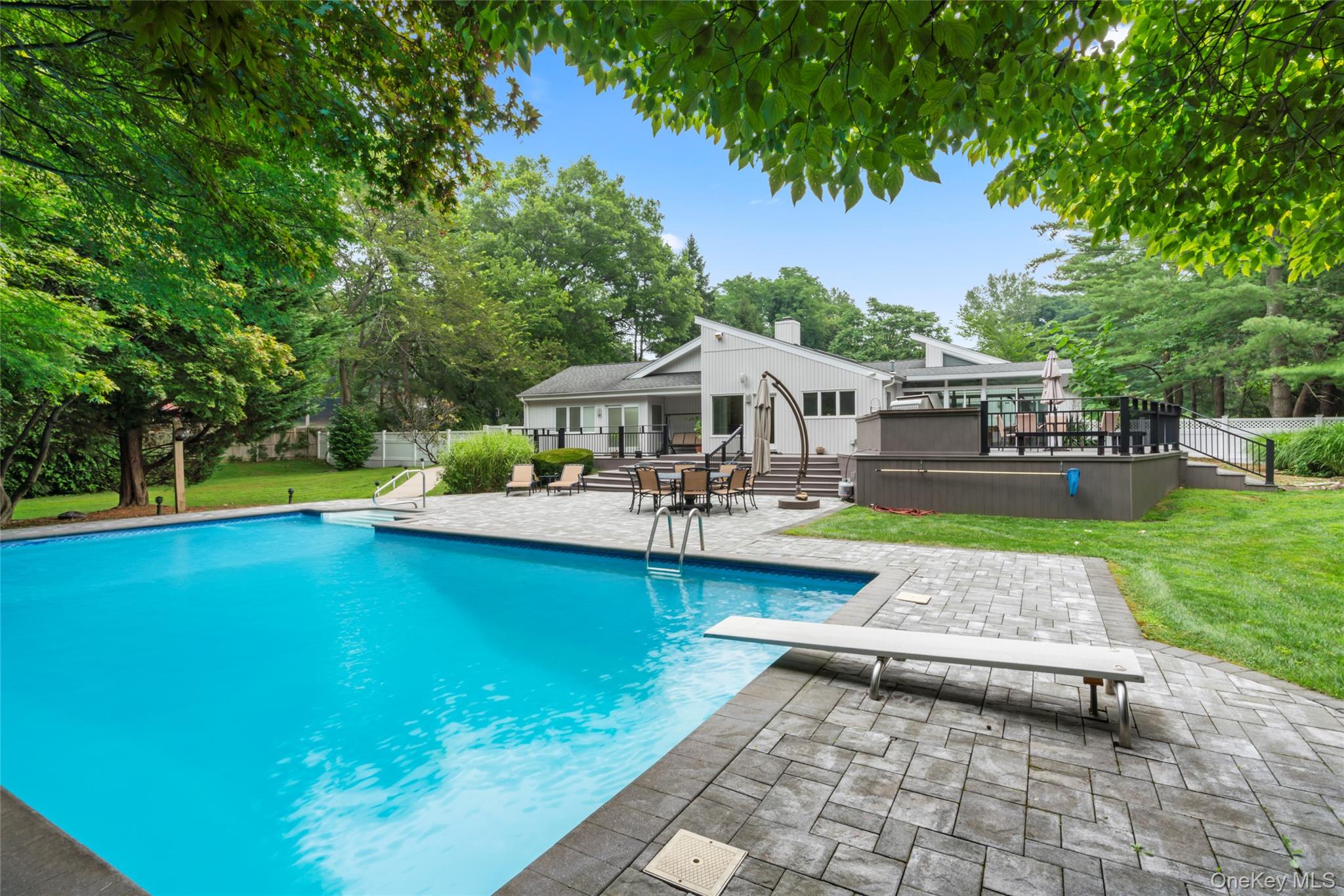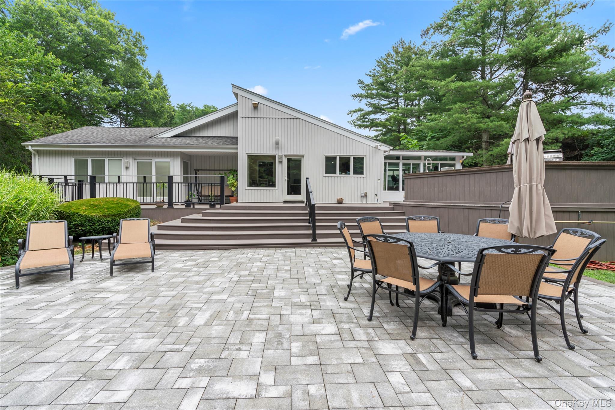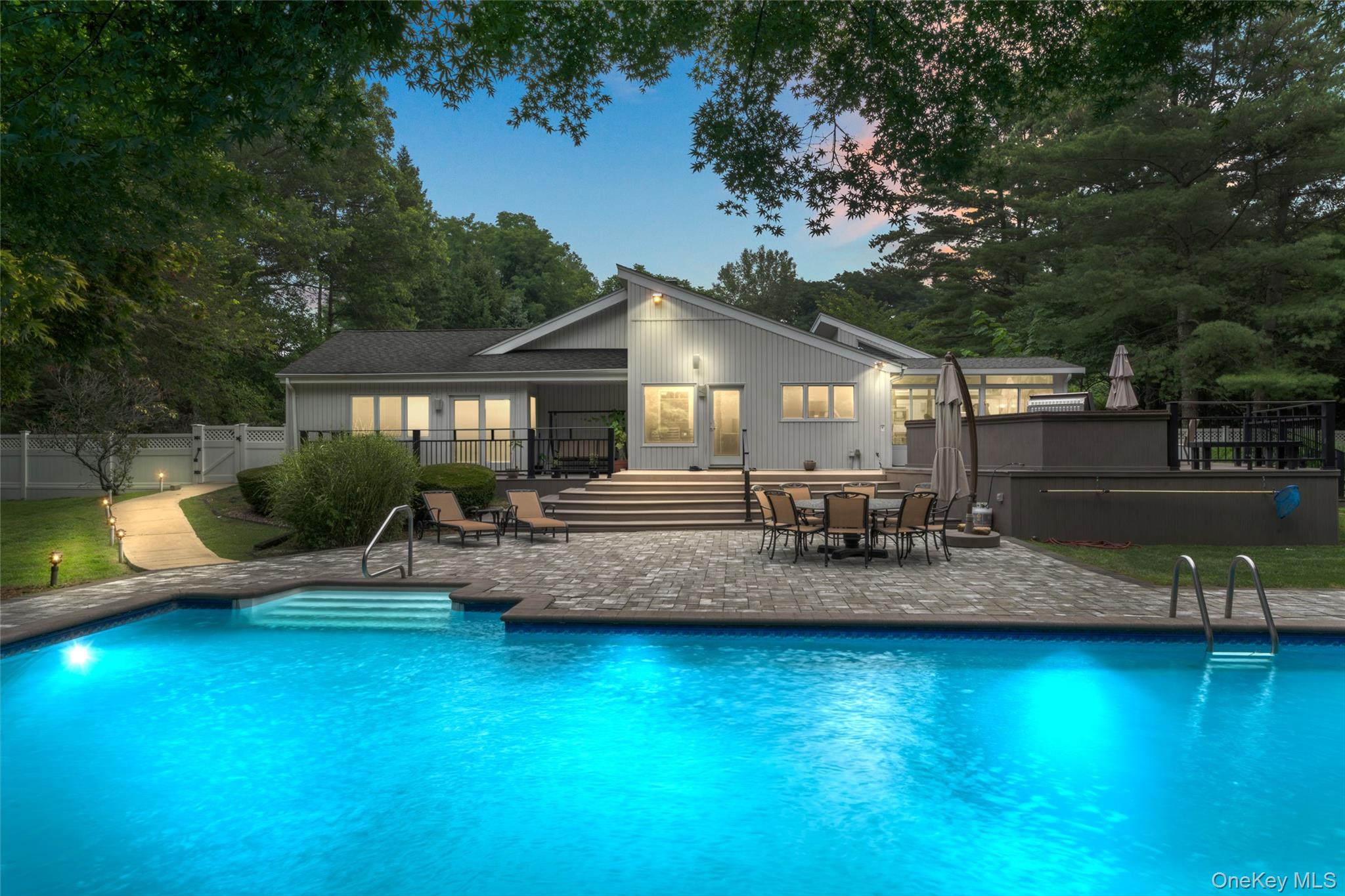 Discover this stunning 4-bedroom, 3. 5-bath contemporary ranch set on a picturesque, partially wooded acre. From the moment you enter, you're greeted by soaring ceilings, natural light, and a seamless blend of comfort and sophistication. The gourmet kitchen features a large granite island, high-end appliances, and custom cabinetry -- perfect for everyday living and entertaining. Enjoy year-round views from the sunroom, overlooking lush gardens and mature trees. Step outside to a backyard built for gatherings, complete with a composite deck, built-in grill, granite cooking island, and a refreshing in-ground pool. A true retreat in the heart of Woodbury Estates.