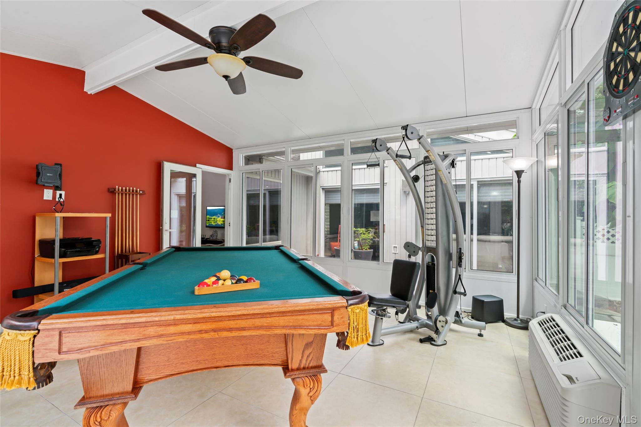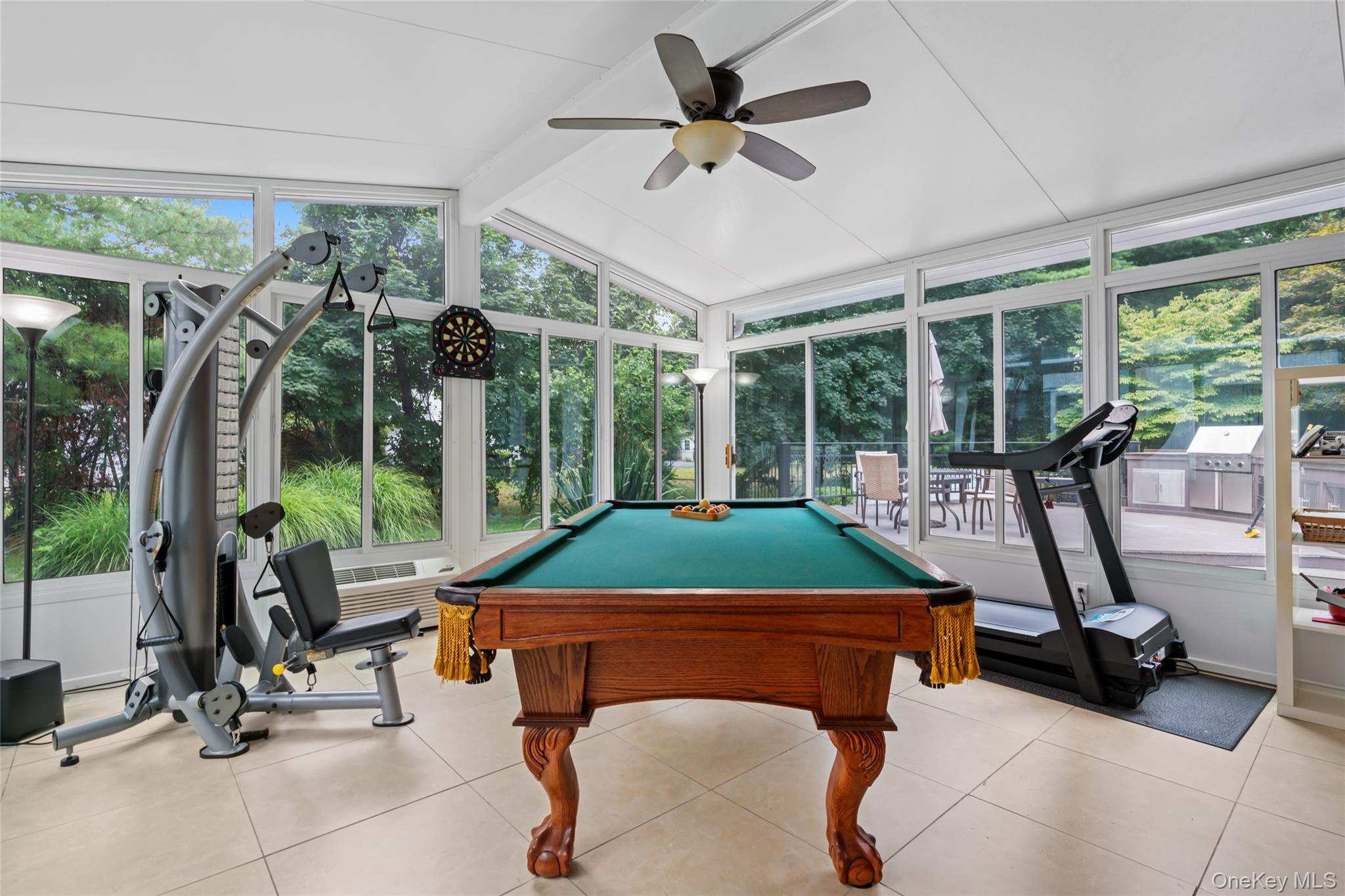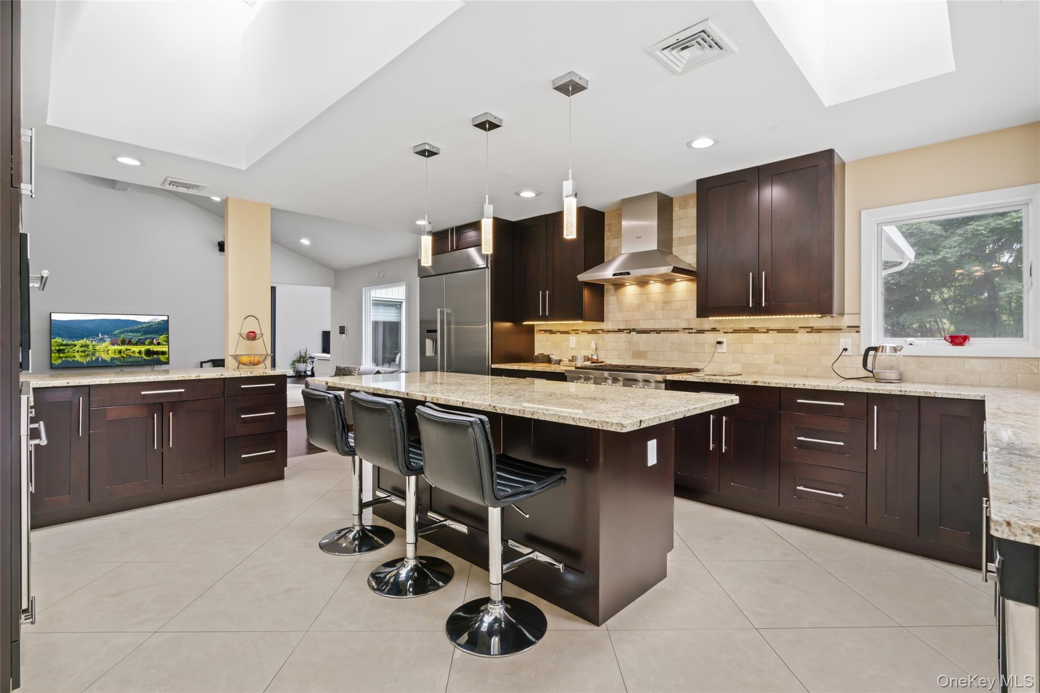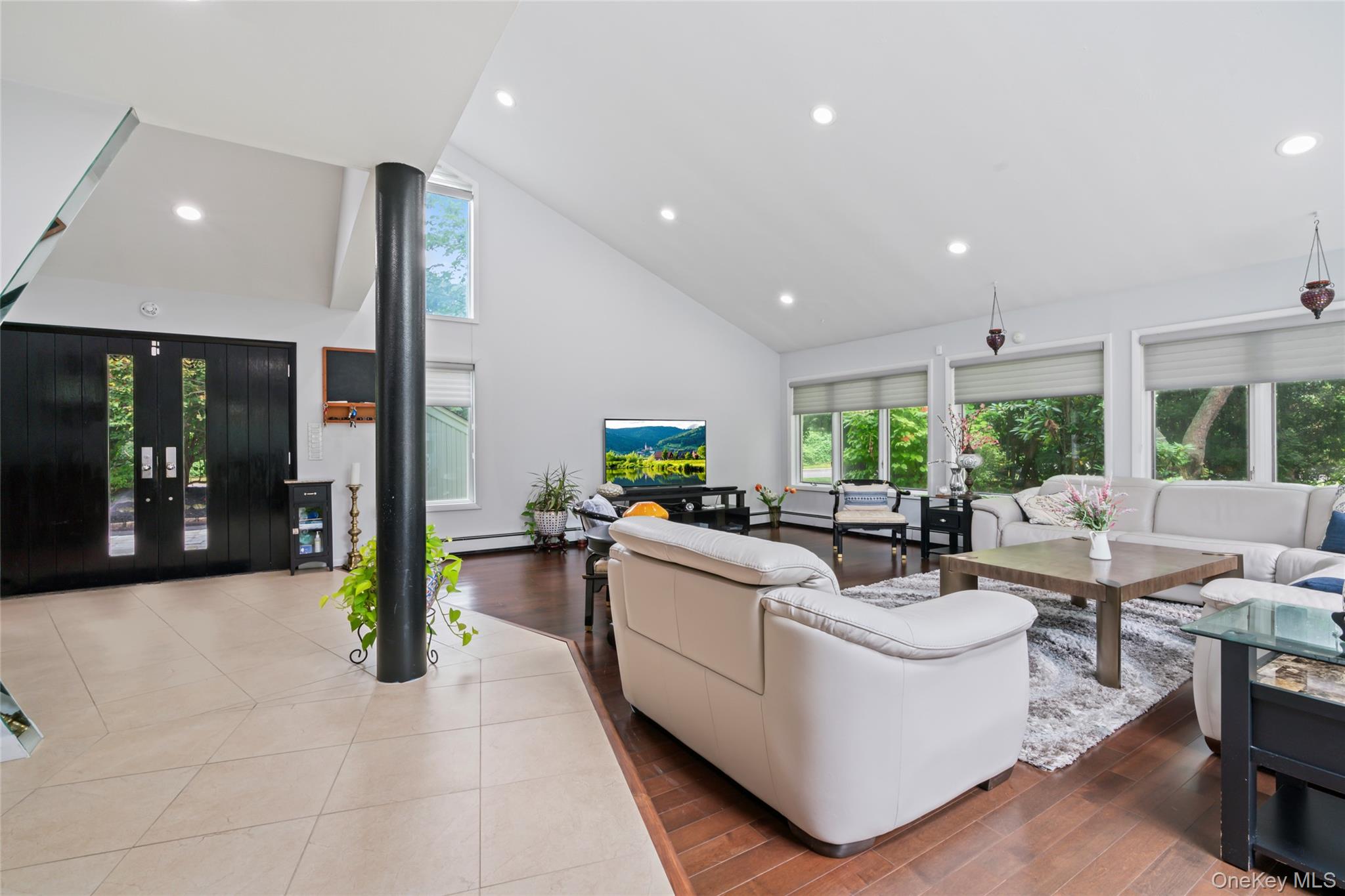 Discover this stunning 4-bedroom, 3. 5-bath contemporary ranch set on a picturesque, partially wooded acre. From the moment you enter, you're greeted by soaring ceilings, natural light, and a seamless blend of comfort and sophistication. The gourmet kitchen features a large granite island, high-end appliances, and custom cabinetry -- perfect for everyday living and entertaining. Enjoy year-round views from the sunroom, overlooking lush gardens and mature trees. Step outside to a backyard built for gatherings, complete with a composite deck, built-in grill, granite cooking island, and a refreshing in-ground pool. A true retreat in the heart of Woodbury Estates.
