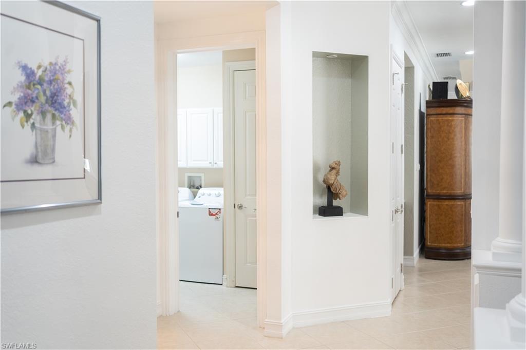 A terrific location for everything Naples has to offer! With an eastern exposure overlooking a lovely lake with three water features, plus having the amenities conveniently located right next door, this home will welcome you to enjoy staying home to relax on the lanai, sun by the pool/spa or work out in the fitness center. There is easy access to reach shopping, dining or getting the sand between your toes as well! This exceptional property boasts 10' ceilings accented with double crown moulding in the main living areas, plus tray ceilings with offset lighting and additional crown moulding! Accents like a medallion in the tray ceiling of the Great Room and Pillars to frame the Dining Room/Den, make this an elegant choice. High impact windows throughout will give you the peace of mind needed for the arrival of any storms, whether your are in residence or up north! A spacious Master Bedroom with custom chandeliers in the Master Bath and closets and a bright morning view each day, is one of three bedrooms, another of which is en suite for your guests privacy. The Open Plan lends itself to an ease of lifestyle that you expect in your Florida home!
