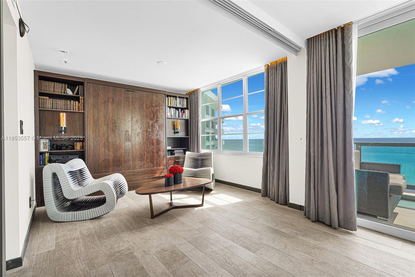 Completely renovated condo with high- end designer finishes throughout . Experience elevated coastal living in this renovated 2-bed, 2-bath oceanfront residence at the iconic Seacoast Condo by famed architect Morris Lapidus. Designed to emphasize light, space, and sweeping sea views, the open layout features sliding pocket doors in the second bedroom, revealing custom cabinetry and a space-saving Murphy bed. Located on prestigious Millionaire’s Row, this income-producing property allows monthly rentals. Lagoon-style pool, full fitness center, tiki café, beachside service with lounge chairs and umbrellas, plus boardwalk access. Direct ocean views from every room! Unit is tenant occupied. Tenant occupied, please 24hour notice