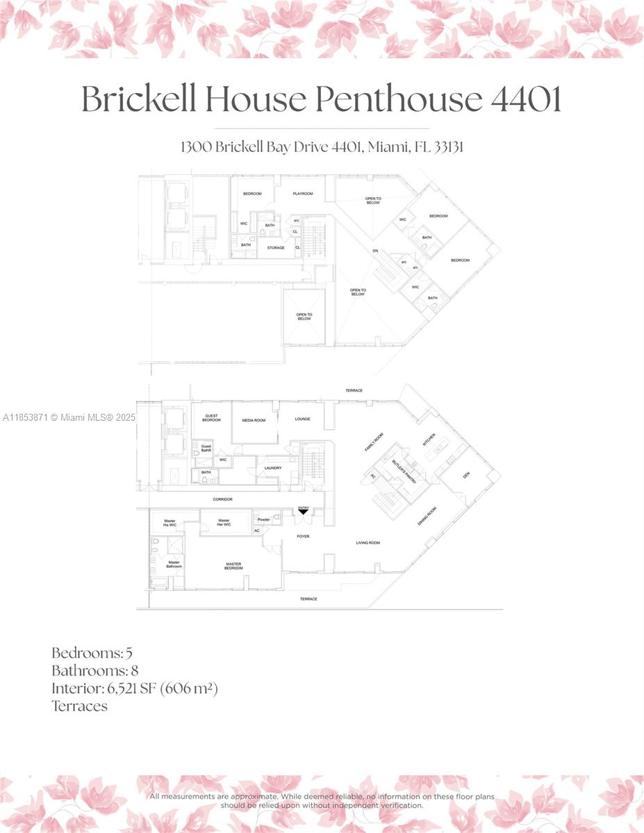 EXQUISITELY REDESIGNED TWO-STORY PENTHOUSE BY TOGU DESIGN & MASTERFULLY EXECUTED BY SABAL LUXURY BUILDER IN THE HEART OF BRICKELL! Encompassing 6, 521 SF of Interiors this Smart Home wrapped in Bay & City Views offers 5 Bedrooms + 6 Baths + 2 Powder Rooms w/Office, Gym & Theater. Soaring 20-foot Ceilings & Floor-to-Ceiling Impact Glass w/sweeping Water Views. Rich Black Walnut Flooring throughout. Residence features Open-Concept Chef’s Kitchen w/premium appliances + a Separate Prep Kitchen. Expansive Primary Suite w/Oversized Spa-like Bath & Custom California Closets. State-of-the-Art Savant Automation System. Building Amenities include Rooftop Pool & Sundeck, 50FT Lap Pool, Owner’s Lounge, Fitness Center. Located in the Epicenter of Brickell w/World-Class Dining, Shopping + Nightlife.