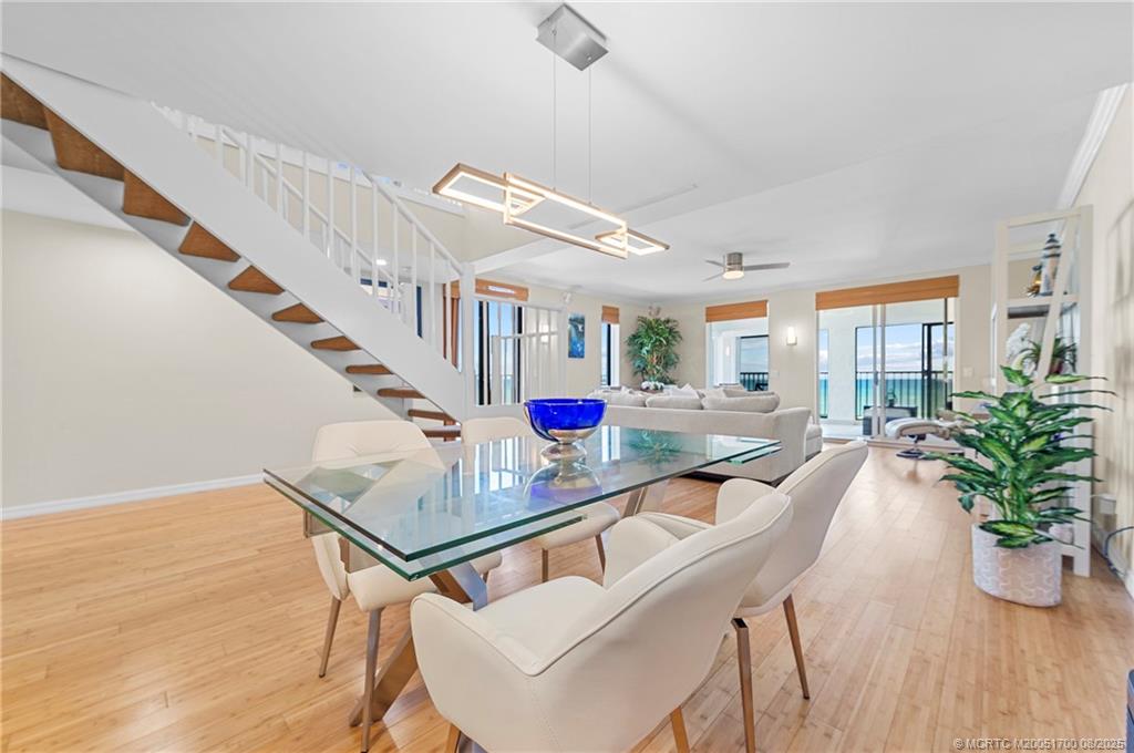 Welcome to the BEST breathtaking direct ocean views offered at The Dune on Hutchinson Island, your dream beach getaway awaits! This elegant 2-bedroom, 2. 5-bathroom corner unit epitomizes laid-back luxury. Upon entering, you are greeted by high ceilings that frame panoramic ocean vistas. Dine on your private balcony, where the ocean's beauty provides a stunning backdrop to every meal. This residence is fully furnished, features a blend of hardwood, carpet, and ceramic floors that enhance its cozy and stylish appeal. Leisure opportunities extend beyond your doorstep, immerse in the serene pool, stay active in the gym, unwind in the sauna, or engage in a friendly match on the tennis courts. For your convenience, covered parking garage and guest parking are all part of the package. If you' re looking to embracea a coastal lifestyle with direct beach access and combines comfort, elegance, and a prime location, visit us and discover how this oceanfront retreat is your perfect sanctuary!