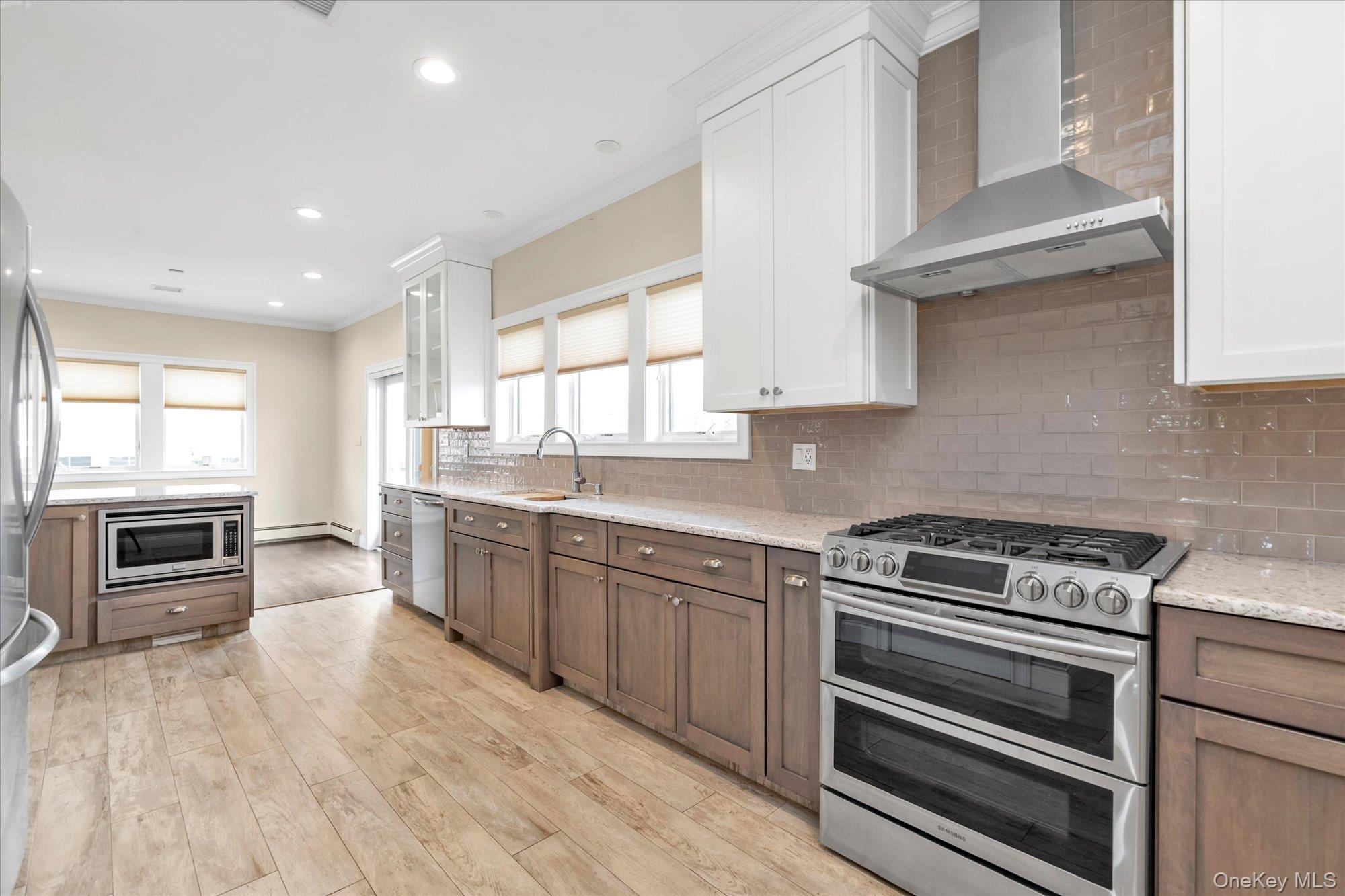 Welcome to 236 E. Shore Drive. Completely rebuilt (2017), this home is located in Nassau Shores, seconds from the open bay. This home offers the perfect blend of modern luxury and style. Sitting on a spacious 60 x 125 lot, this home features new marine bulkhead/Trex Decking (2014). Possible outdoor shower, just need hook-up. Beautiful manicured landscaping with brick pavers. Watch your Sunrise from the East from one of your bi-level decks, or Sunset from your front porch. . Inside, you’ll discover soaring 9-foot tray ceilings, equipped with surround sound, Cat 6 wiring and two sets of sliders on the main floor. Crown Moldings throughout the whole house. Living room with gas fireplace and Dining room in an open-concept layout, centered around a gourmet Quartz kitchen with Stainless Steel appliances and wine cooler, perfect for entertaining. Main level has a laundry room and an entrance to an attached 1. 5 car garage with 16 ft ceiling height. Possible heated garage, gas line and thermostat already in place. Shower stall installed. This 4 bedroom, 3 full bath home offers space and comfort including a luxurious primary bedroom with an additional gas fireplace, walk-in closets and sliders to the upper deck/balcony. Along with a spa-inspired bath with a sit-in shower. The second large bedroom also features the deck access. One of the bathrooms boasts a 6-ft soaking tub. All bathrooms are equipped with heated exhaust fans. Additional features are: All hardwood flooring upstairs, Two-zone Central air and two heating systems. 6-inch insulation on all exterior walls for maximum insulation and additional insulation between floors. An abundance of closets/storage. Central Vac, 5 zone outside Sonos system. New sewer hook-up, In-ground sprinklers, new water main. Front and Rear security cameras with video. 200 amps electric service. The home is raised 12 feet. Approx 2 feet above FEMA regulations providing lower flood insurance costs which is transferable ($553). 5. 5 ft crawl space whole length of house. Don’t miss your chance to own a slice of waterfront paradise. It’s the perfect retreat to call home.