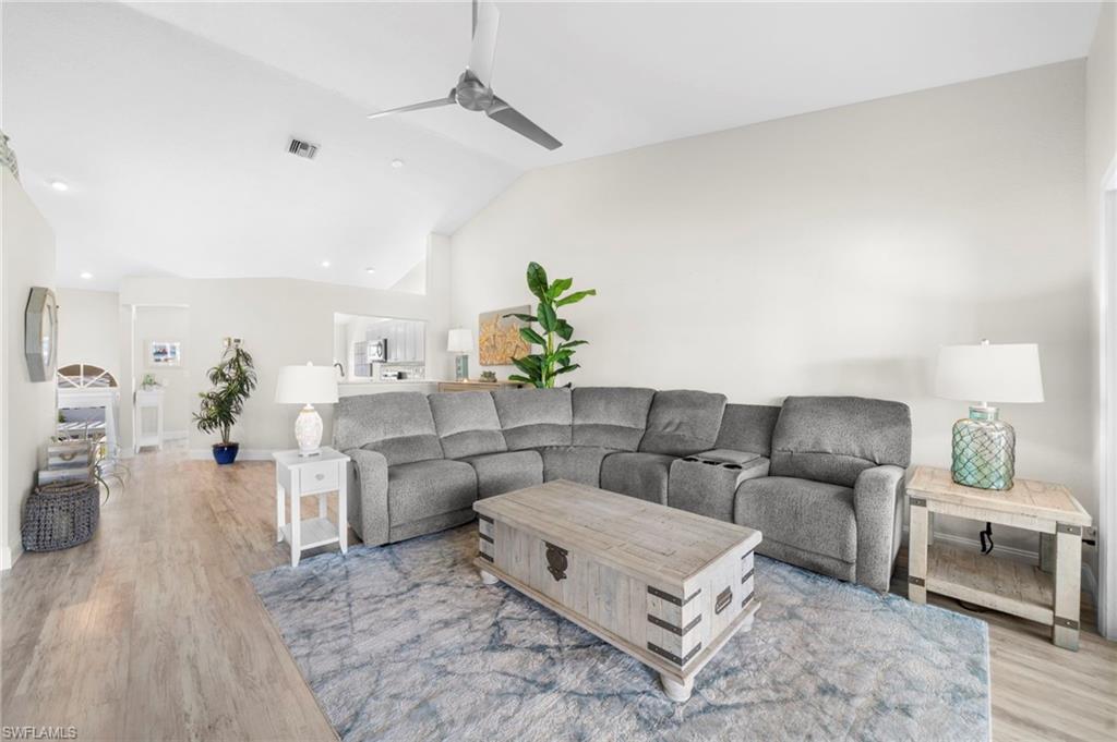 An inviting living area with ample natural light and tasteful decor. The open-concept design flows effortlessly into a well-equipped, updated kitchen with granite countertops, stainless steel appliances (including a brand new dishwasher), and plenty of counter space, ideal for casual dining and entertaining.