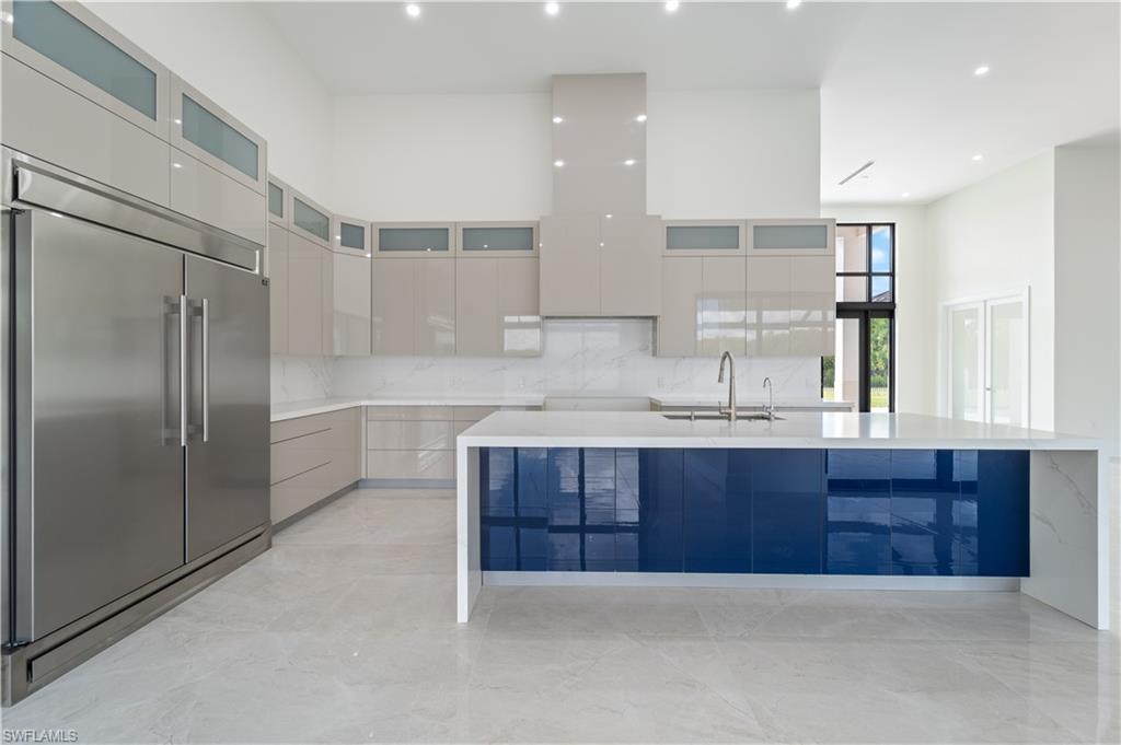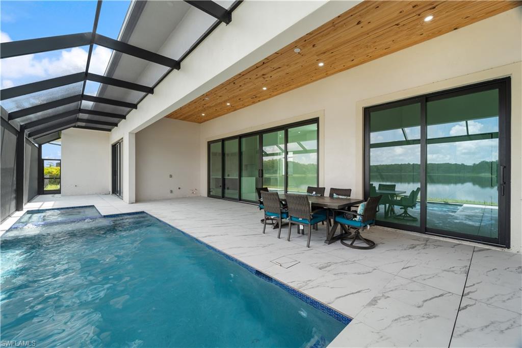 Spectacular lakefront pre-construction home! This 5, 375 SF modern residence will be built on a premium lot in Golden Gate Estates, featuring 4 bedrooms, office, 5 bathrooms, open floor plan, high ceilings, gourmet kitchen with island, panoramic windows, premium finishes, private pool and 4-car garage. Positioned directly on a lake with expansive views. Model home available for private tours. Experience elevated living in a tranquil, water-oriented setting!