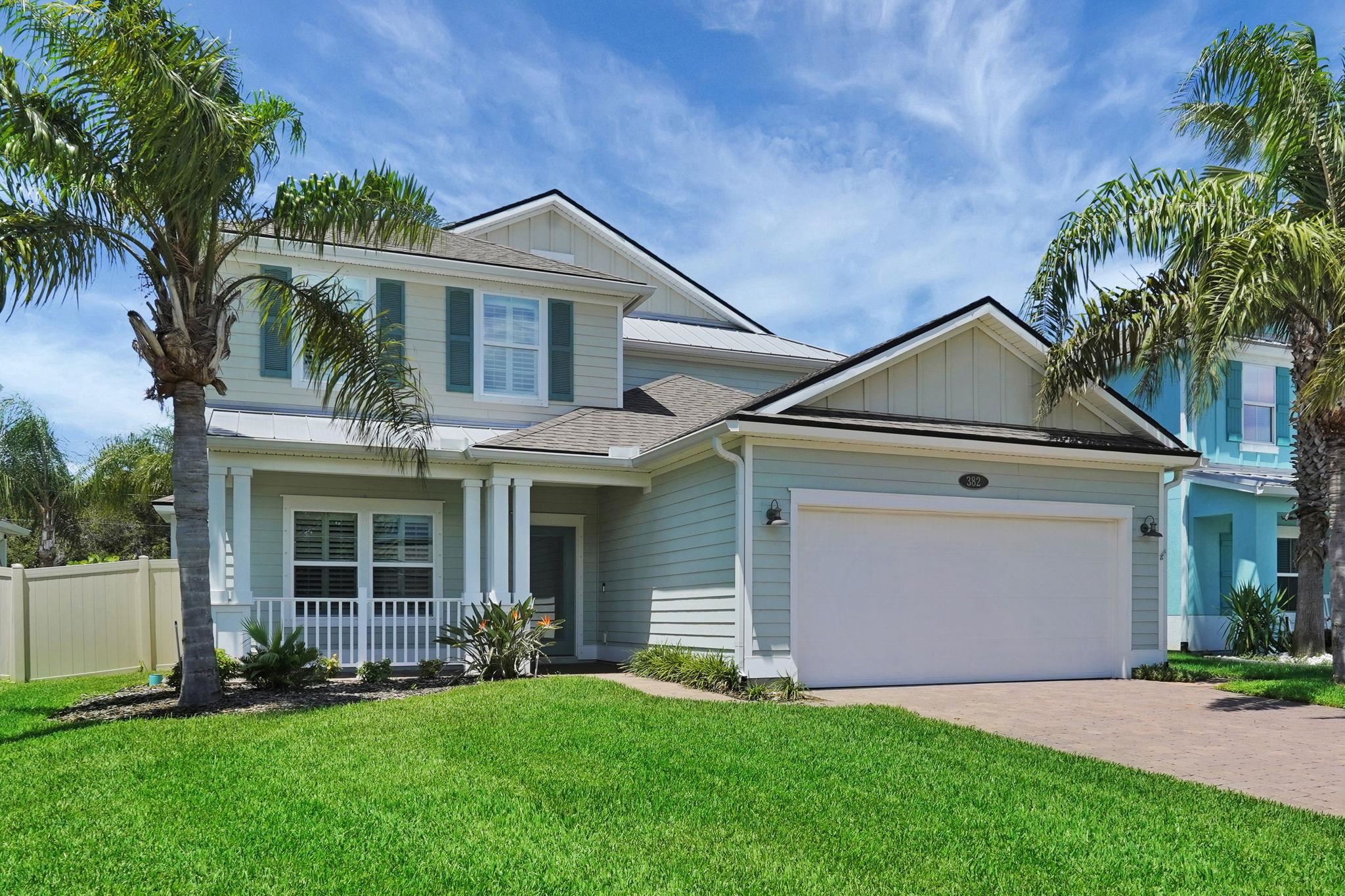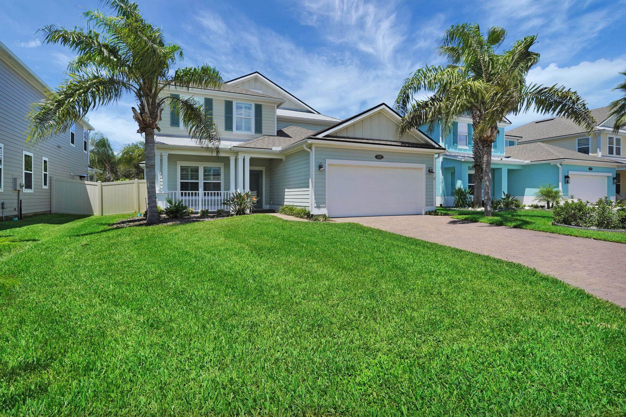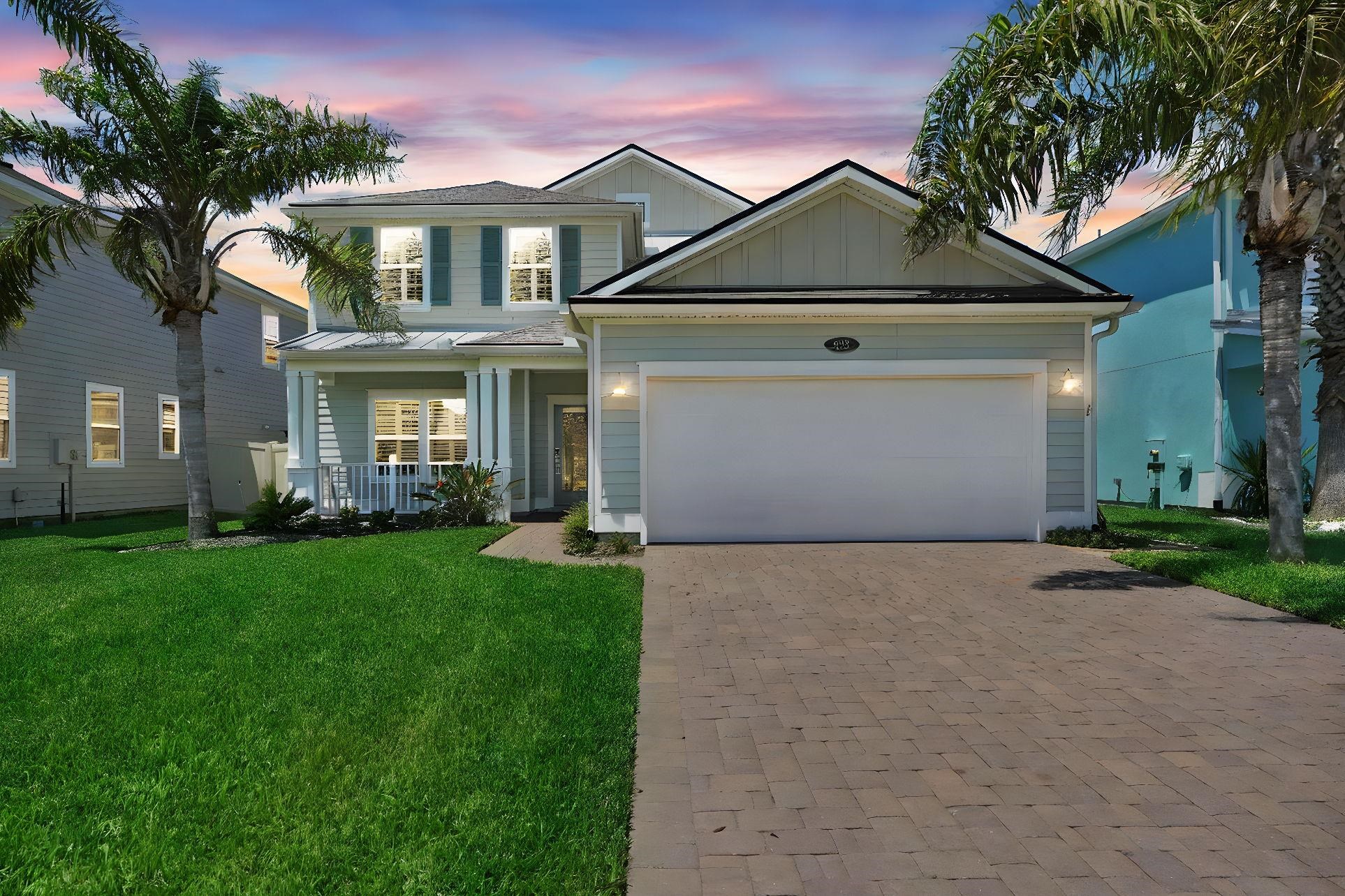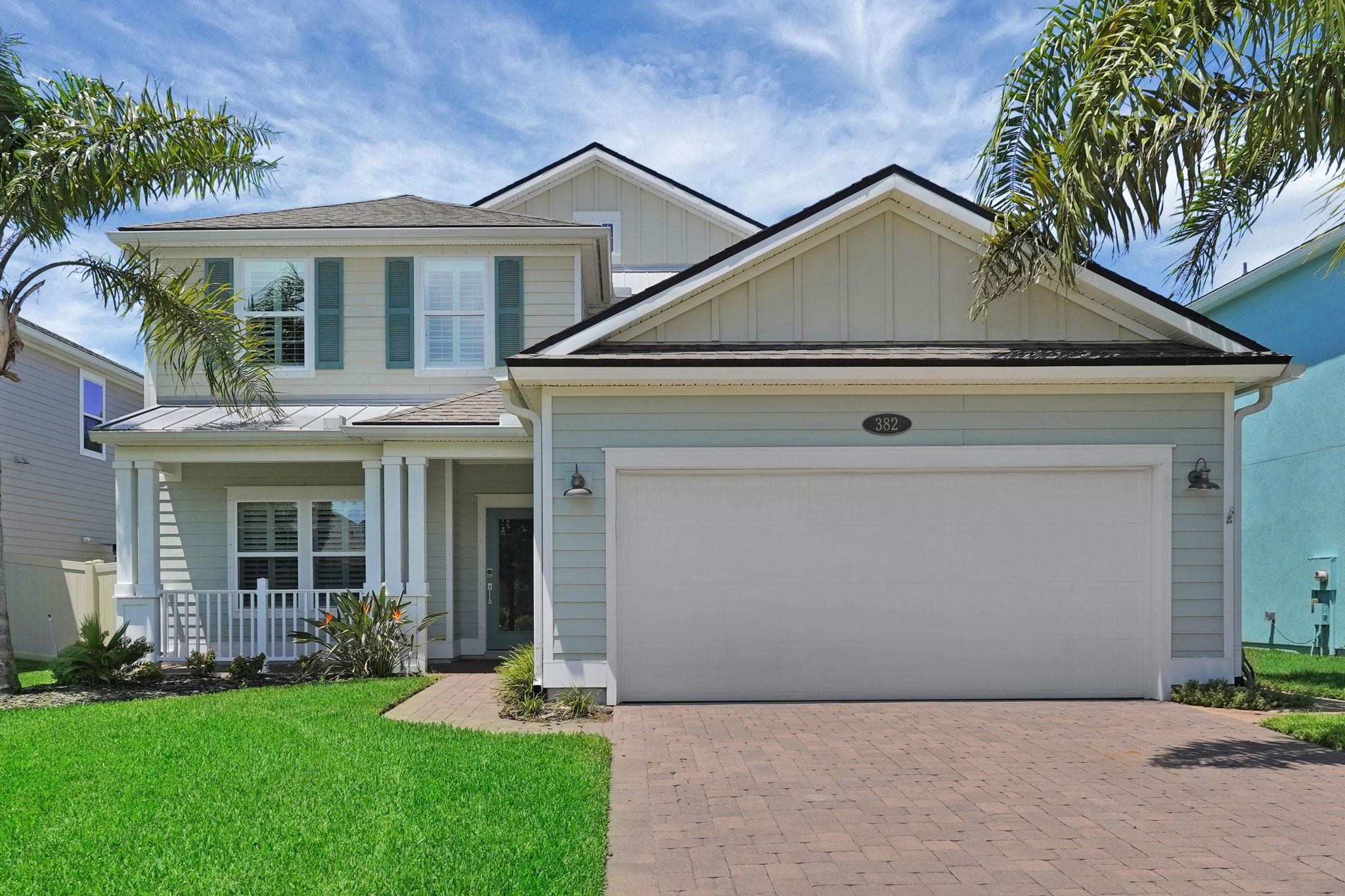 LOCATION, LOCATION! This coastal inspired home boasts four bedrooms, three and a half bathrooms and over 2, 900 sf of living space. The kitchen features quartz countertops, oversized floating island, 42' cabinets and upgraded stainless steel appliances. Light and bright living area with french doors leading to a pool oasis backyard with turf and palm trees. Extended oversize two car garage perfect for larger vehicles and additional storage. Downstairs master suite has his/her's vanities, garden tub and shower and a deep walk in closet with custom shelving. Upstairs you will find huge loft with a custom built entertainment space, three spacious bedrooms, two full baths and a laundry room (Washer/Dryer included!) with built-ins. This island oasis will is a must see!
