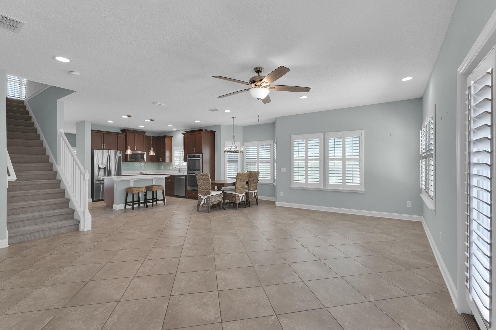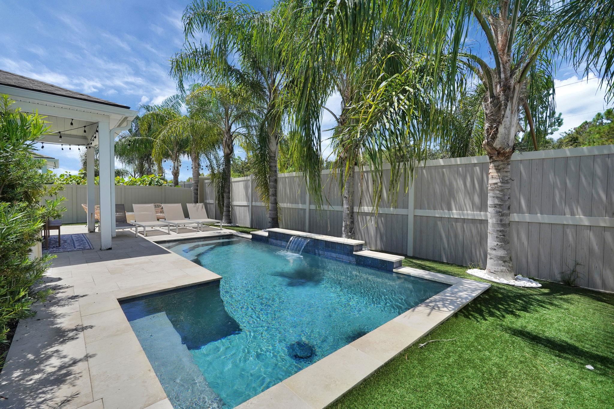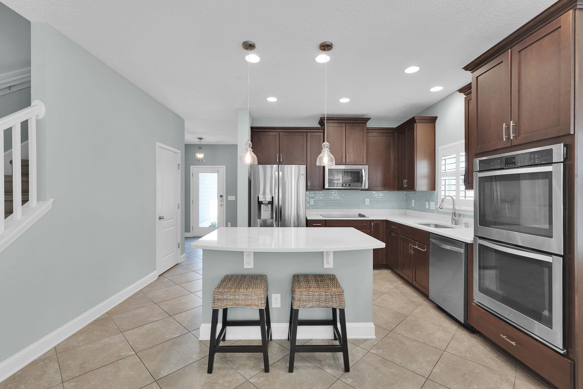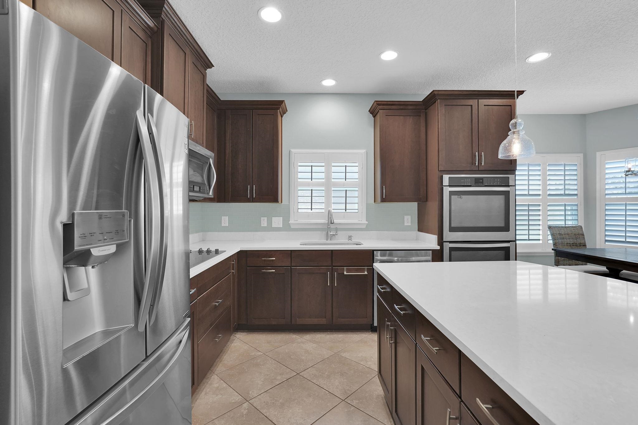 LOCATION, LOCATION! This coastal inspired home boasts four bedrooms, three and a half bathrooms and over 2, 900 sf of living space. The kitchen features quartz countertops, oversized floating island, 42' cabinets and upgraded stainless steel appliances. Light and bright living area with french doors leading to a pool oasis backyard with turf and palm trees. Extended oversize two car garage perfect for larger vehicles and additional storage. Downstairs master suite has his/her's vanities, garden tub and shower and a deep walk in closet with custom shelving. Upstairs you will find huge loft with a custom built entertainment space, three spacious bedrooms, two full baths and a laundry room (Washer/Dryer included!) with built-ins. This island oasis will is a must see!