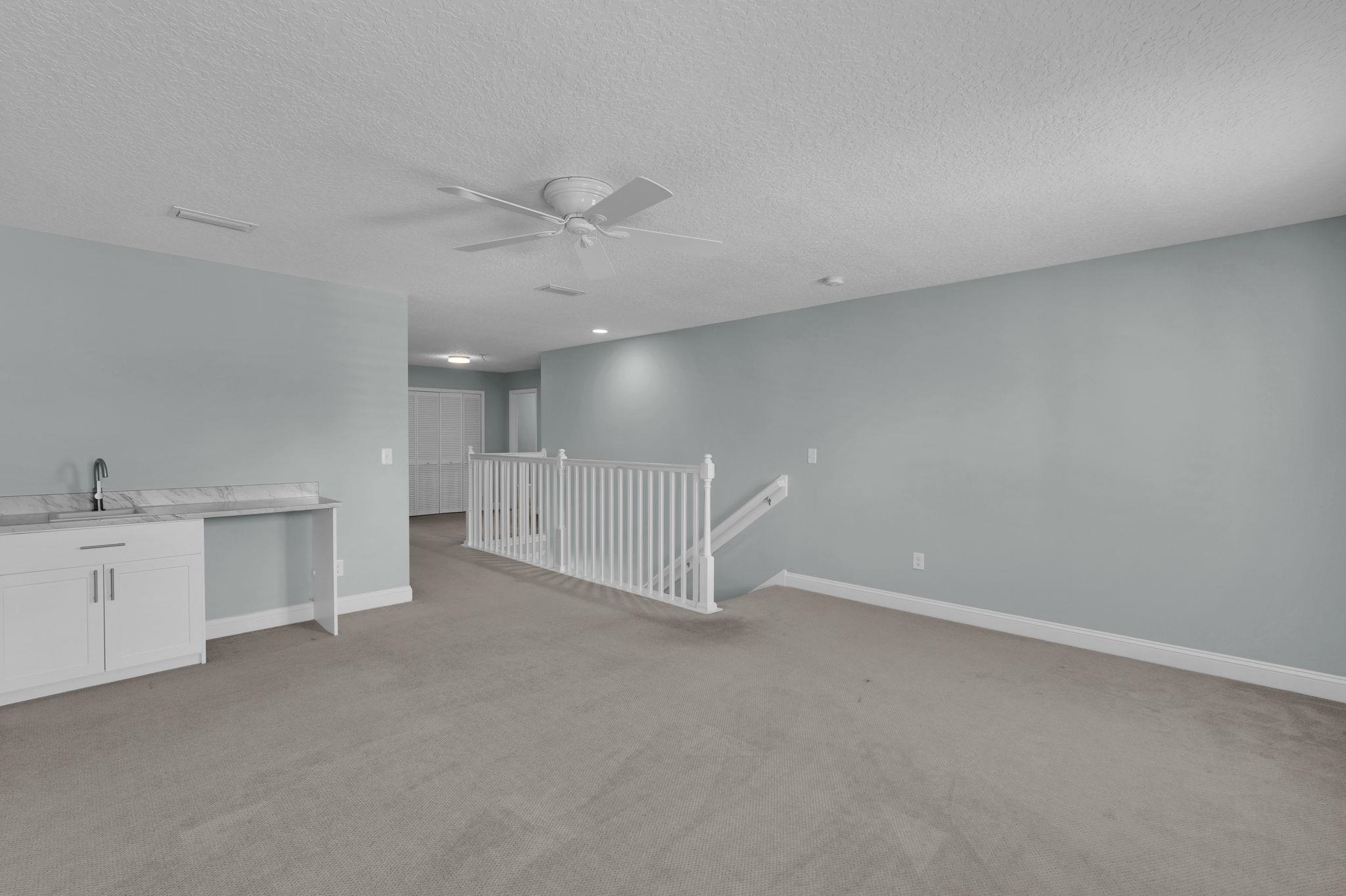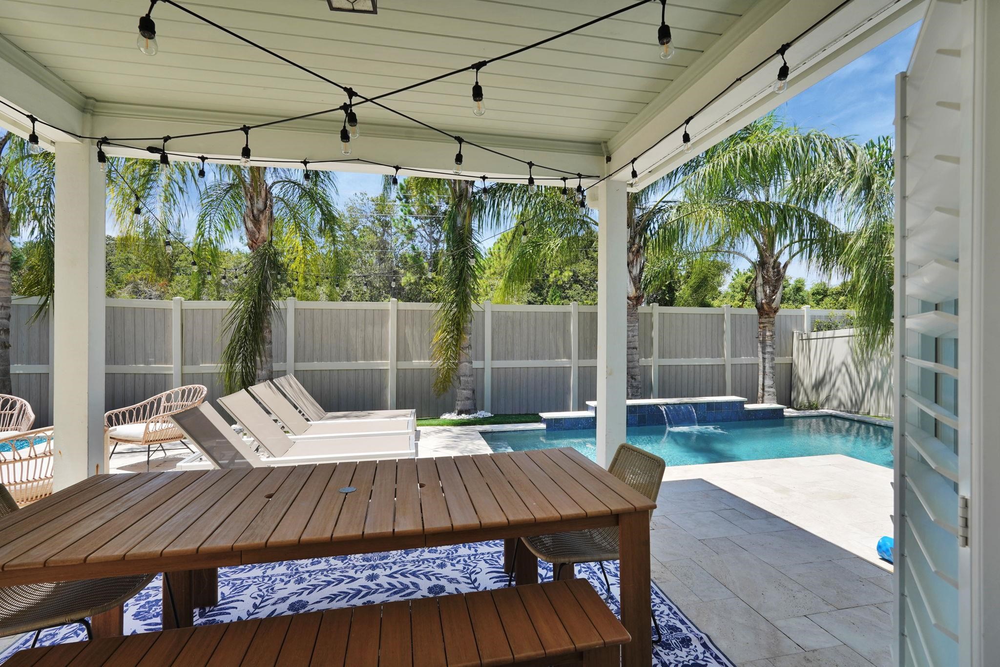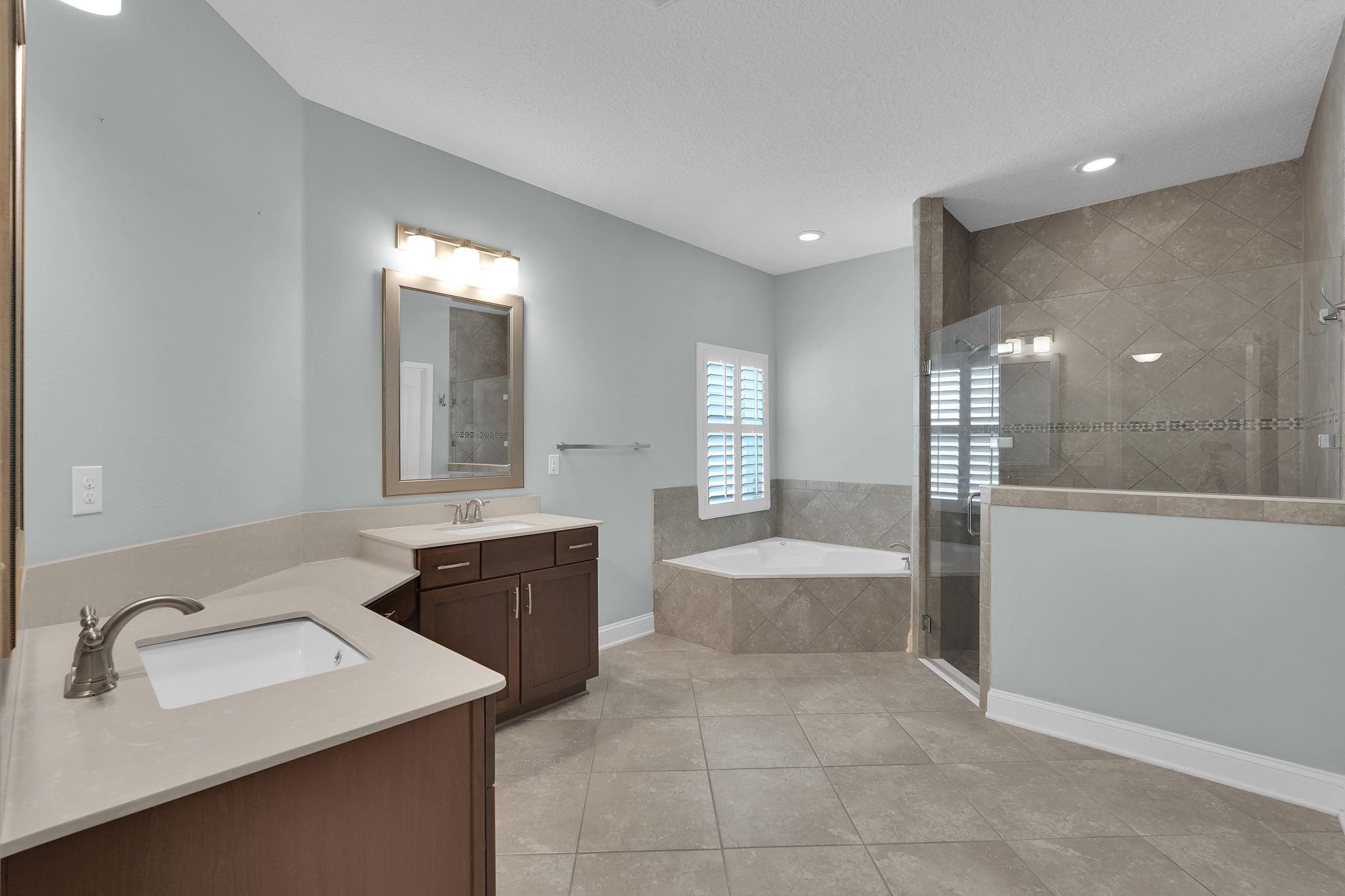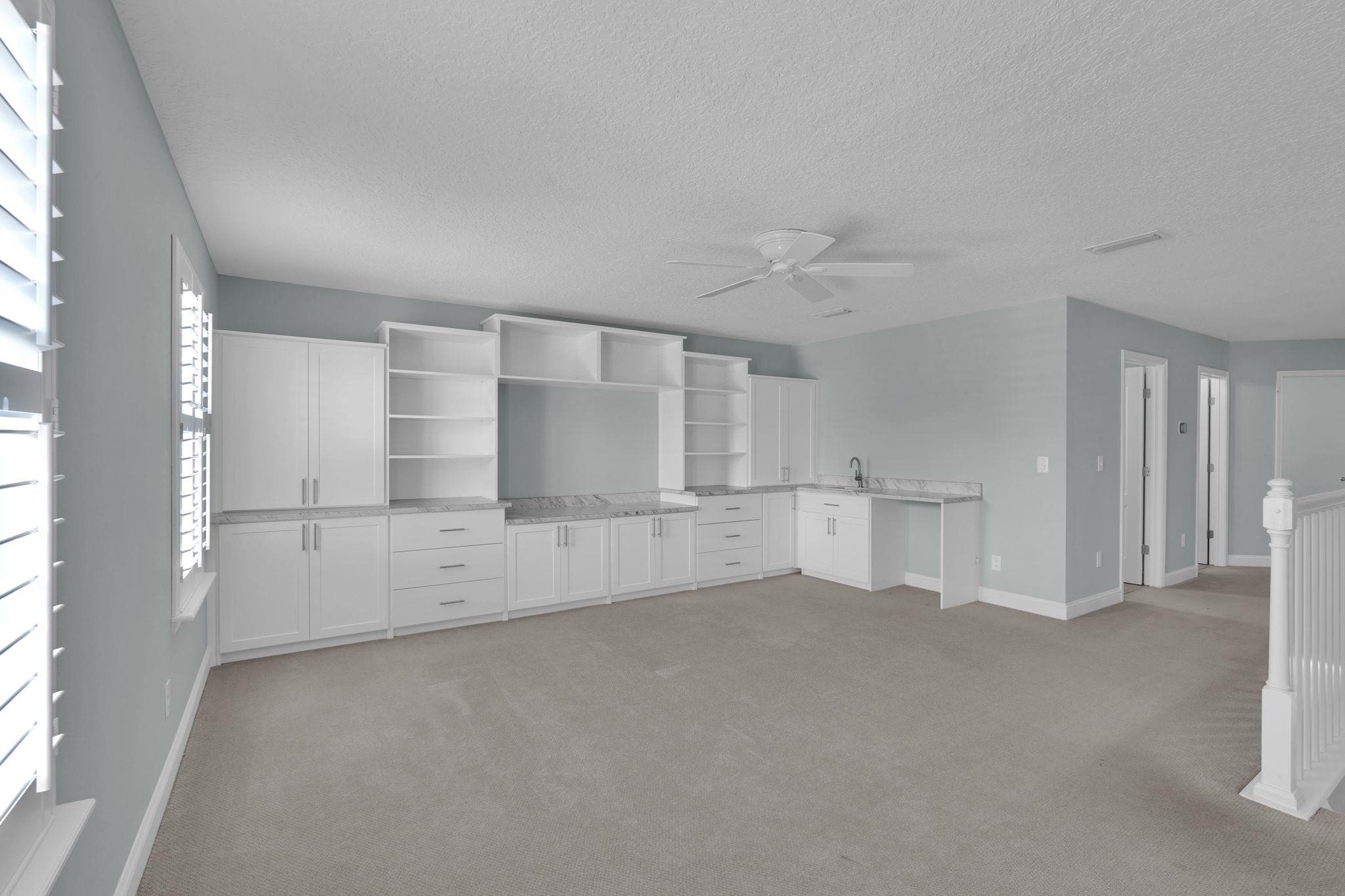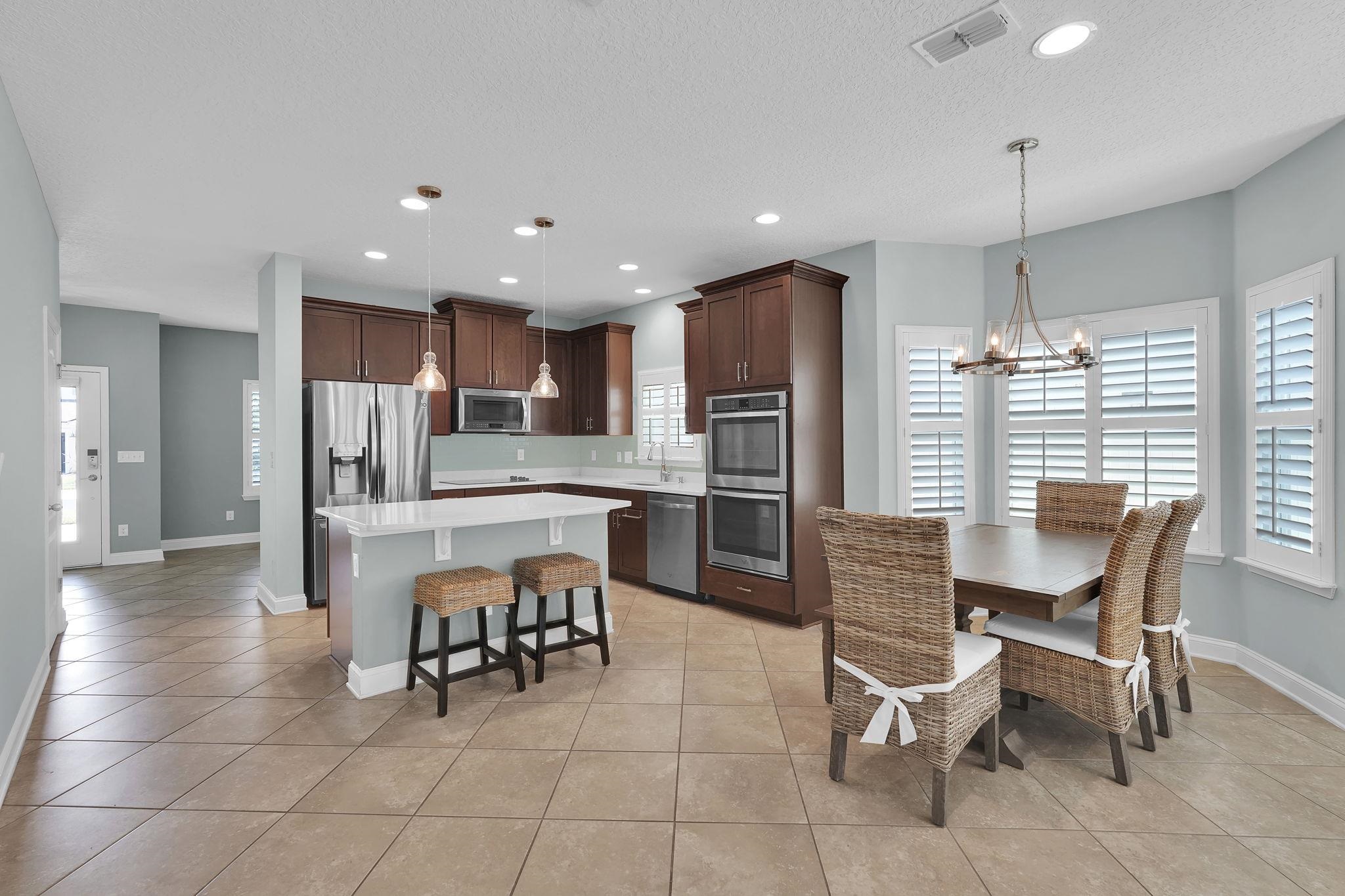 LOCATION, LOCATION! This coastal inspired home boasts four bedrooms, three and a half bathrooms and over 2, 900 sf of living space. The kitchen features quartz countertops, oversized floating island, 42' cabinets and upgraded stainless steel appliances. Light and bright living area with french doors leading to a pool oasis backyard with turf and palm trees. Extended oversize two car garage perfect for larger vehicles and additional storage. Downstairs master suite has his/her's vanities, garden tub and shower and a deep walk in closet with custom shelving. Upstairs you will find huge loft with a custom built entertainment space, three spacious bedrooms, two full baths and a laundry room (Washer/Dryer included!) with built-ins. This island oasis will is a must see!