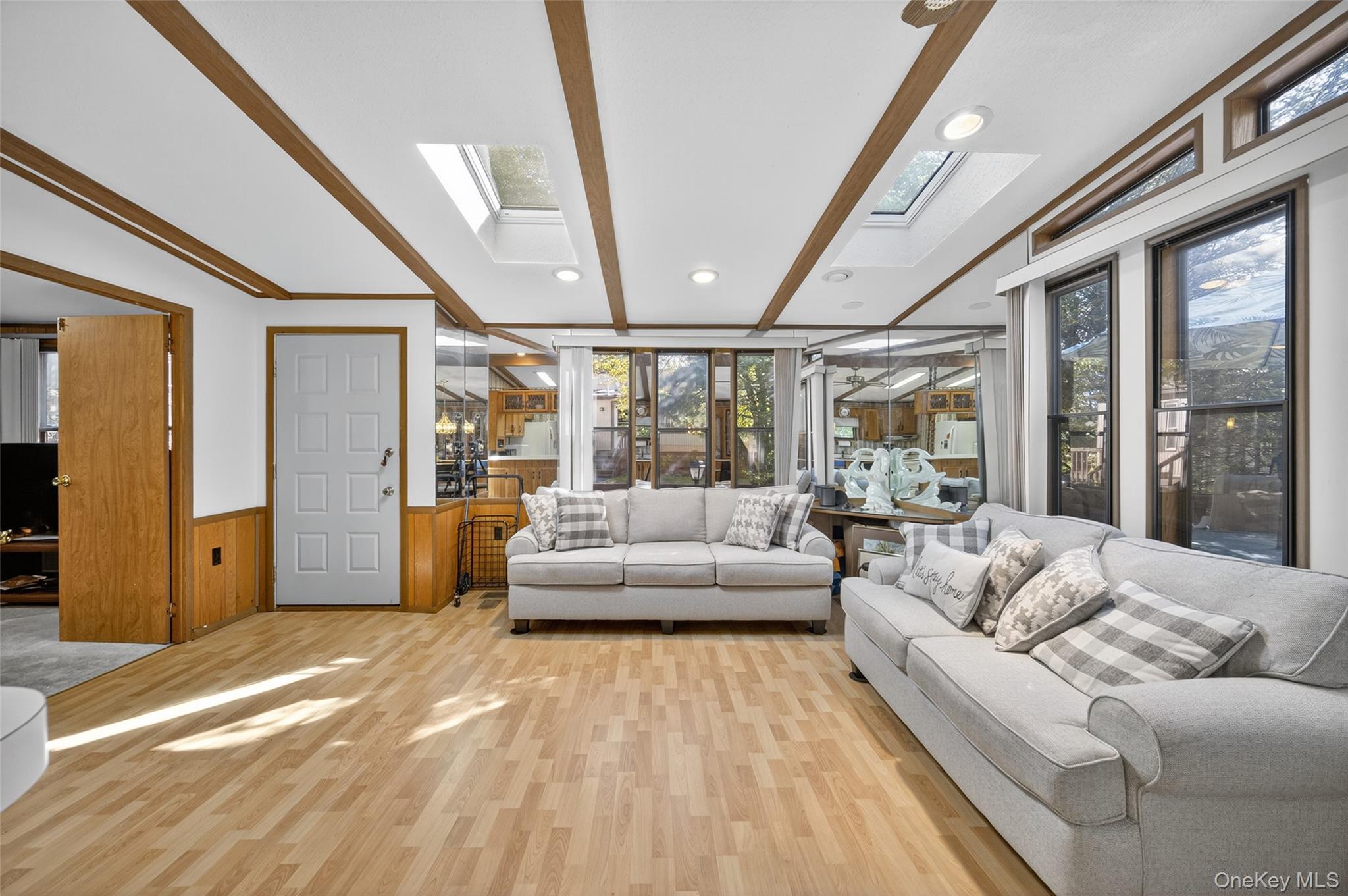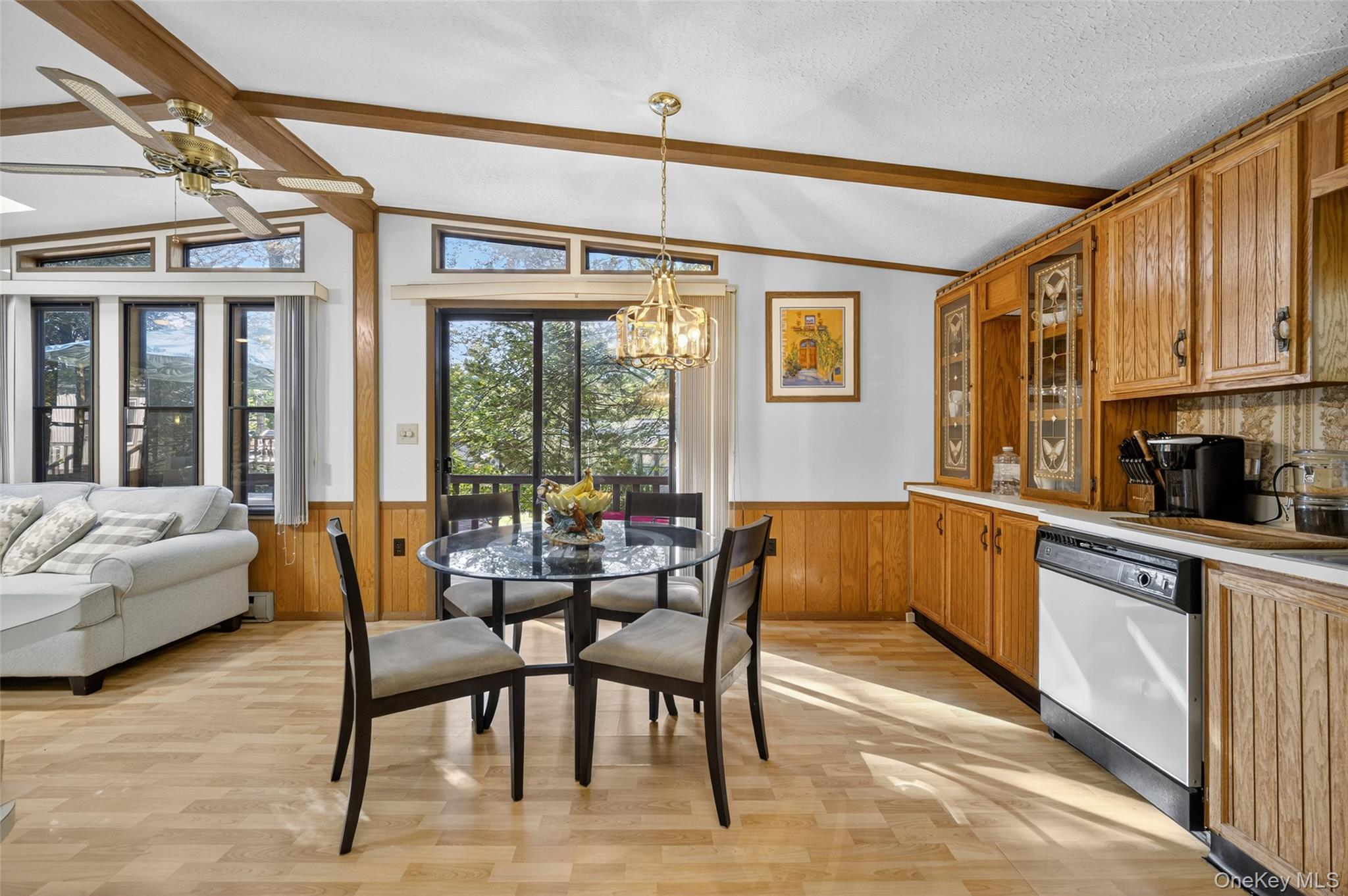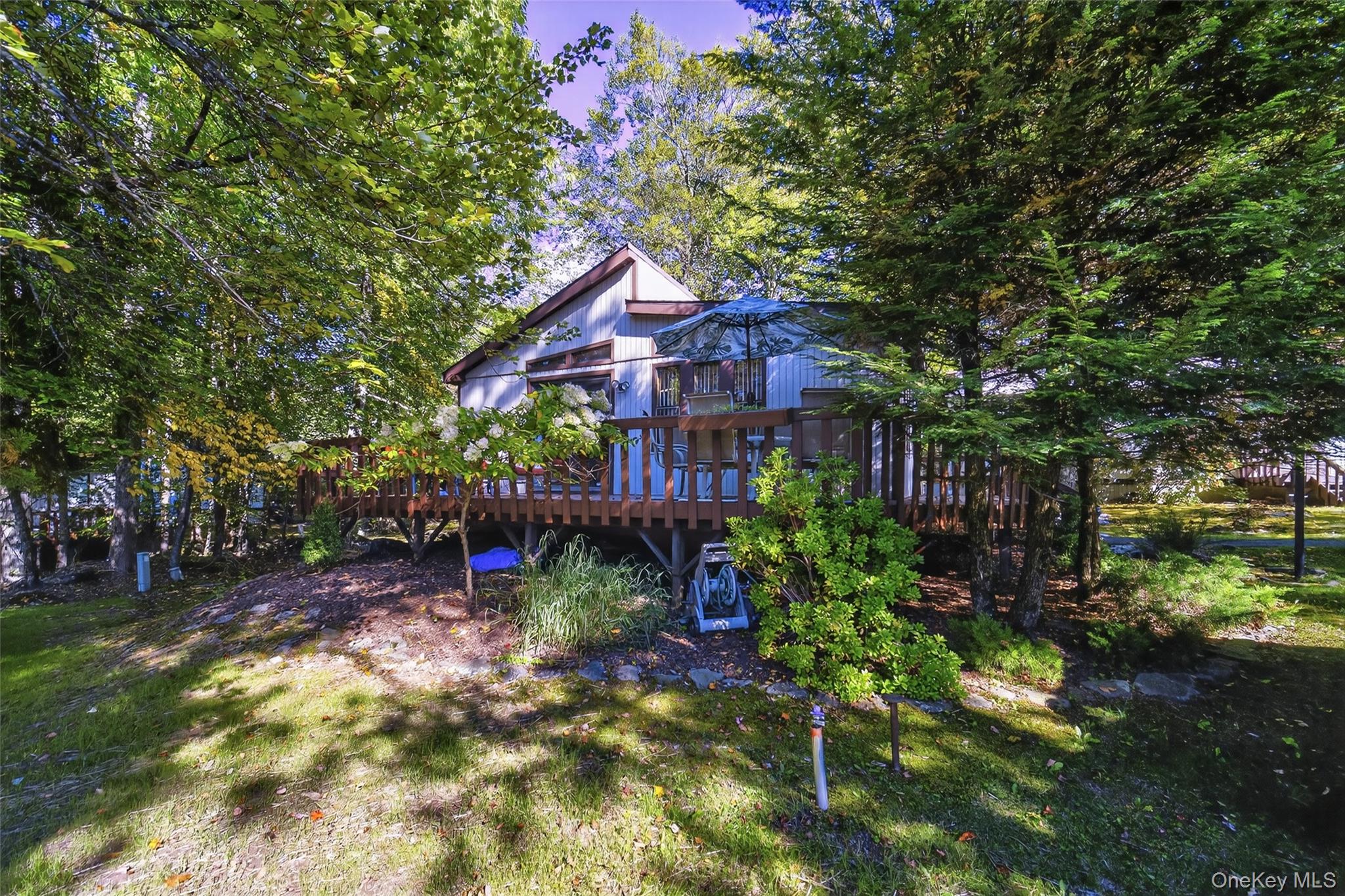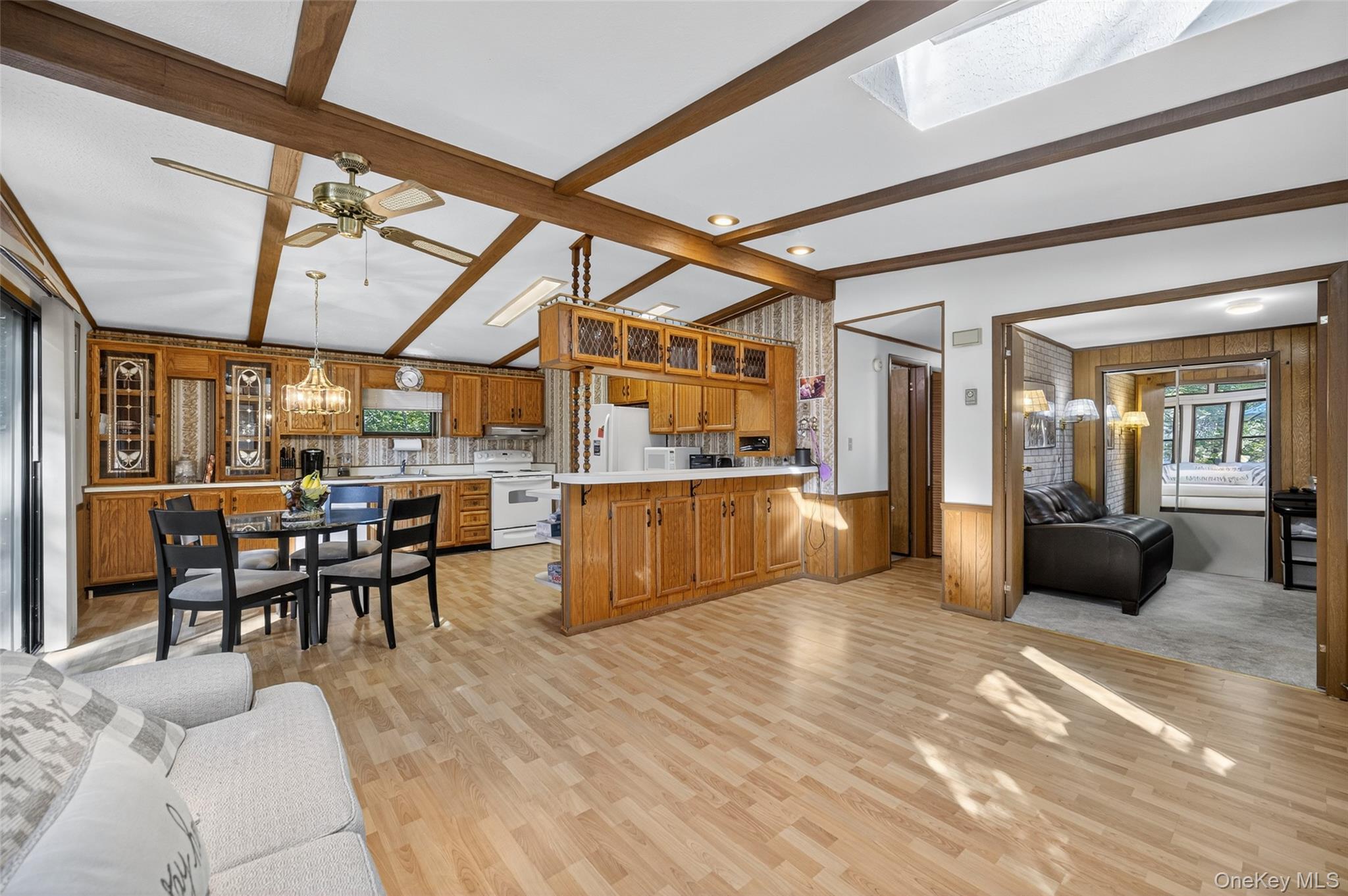 On a peaceful Cul-de sac in the desirable community of Camelot Woods sits this ranch home that has everything you could need. The bright and airy living room welcomes you and recessed lighting and open dining room with sliding glass doors out to the deck, an ideal spot to enjoy your morning coffee. Plus, open kitchen with breakfast bar and plenty of cabinetry. Two bedrooms and den that acts as a third for extra guests. Community Pool and playground. Entertainment all summer shows, bingo, movies, tennis and pickleball. Beautiful clubhouse with Gym, and kitchen. Use of beautiful Sackett Lake. A real Gem!