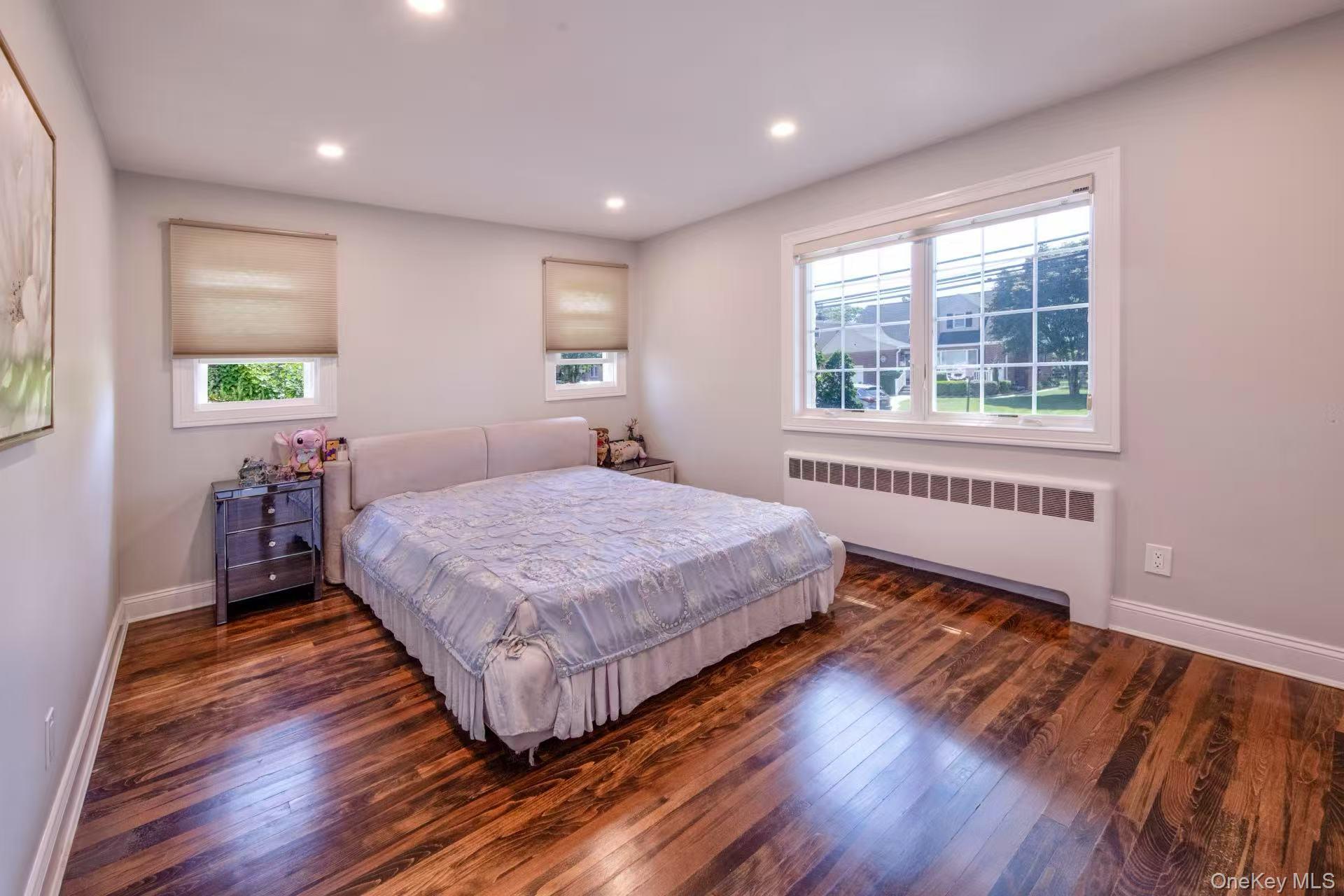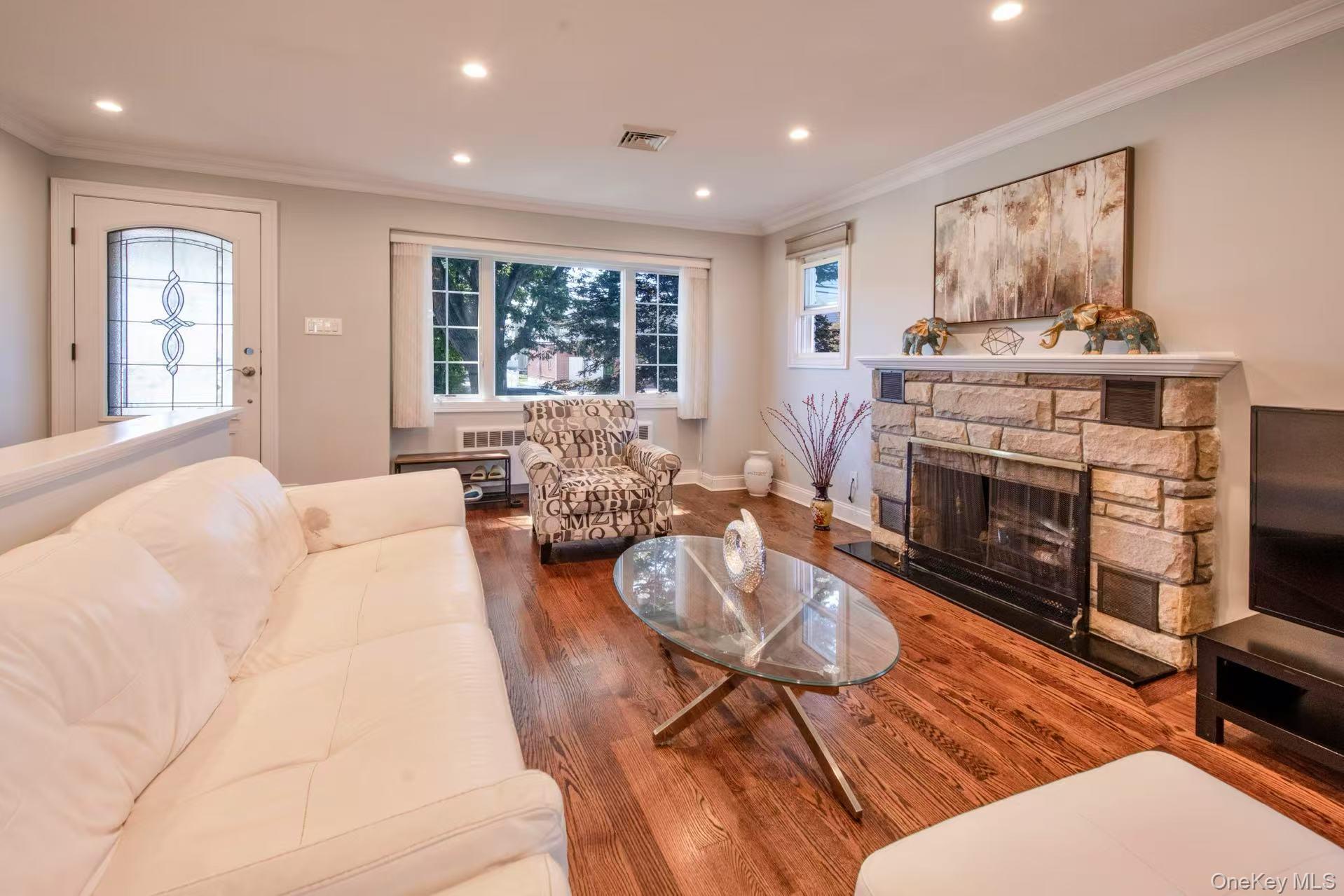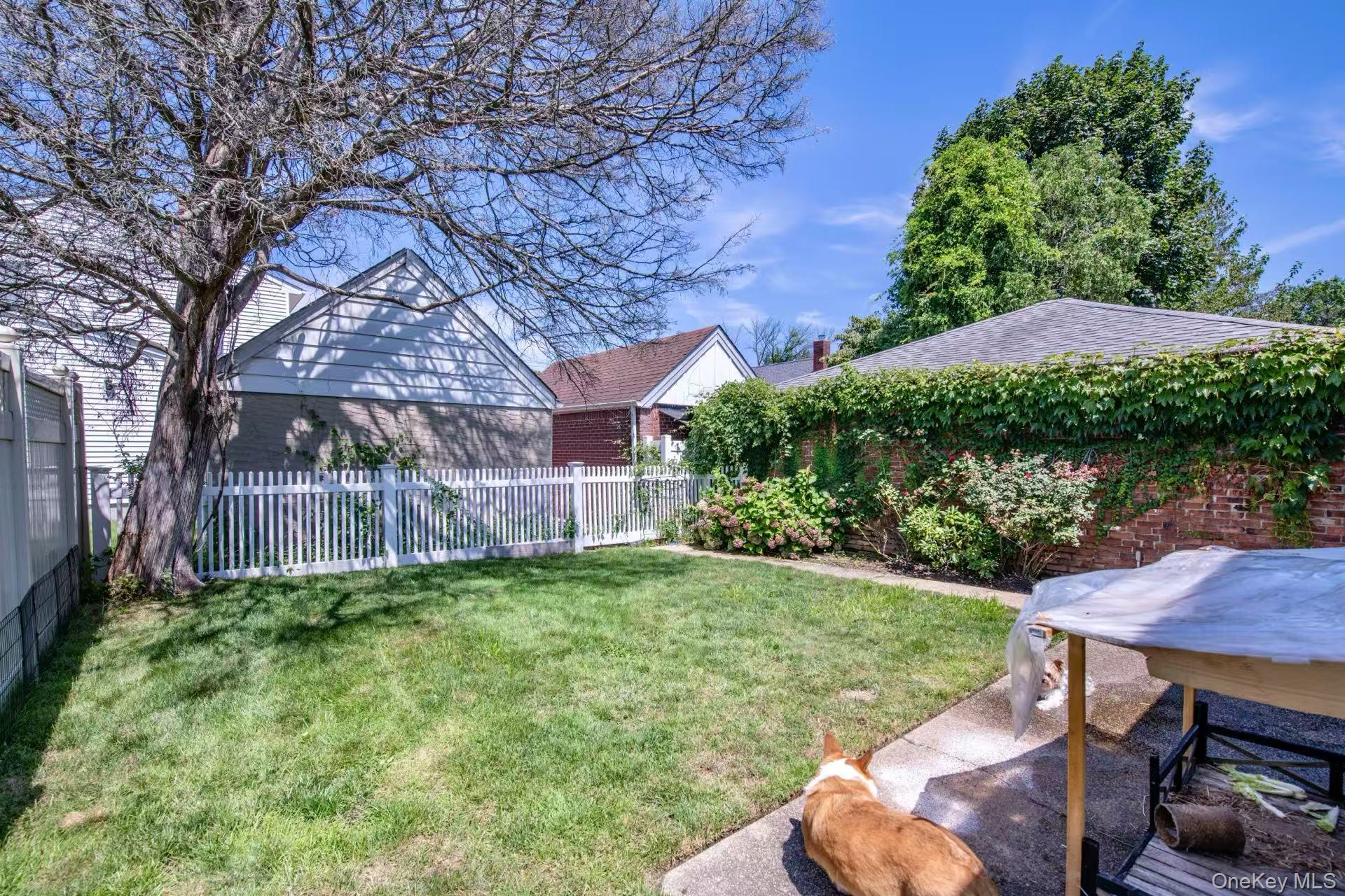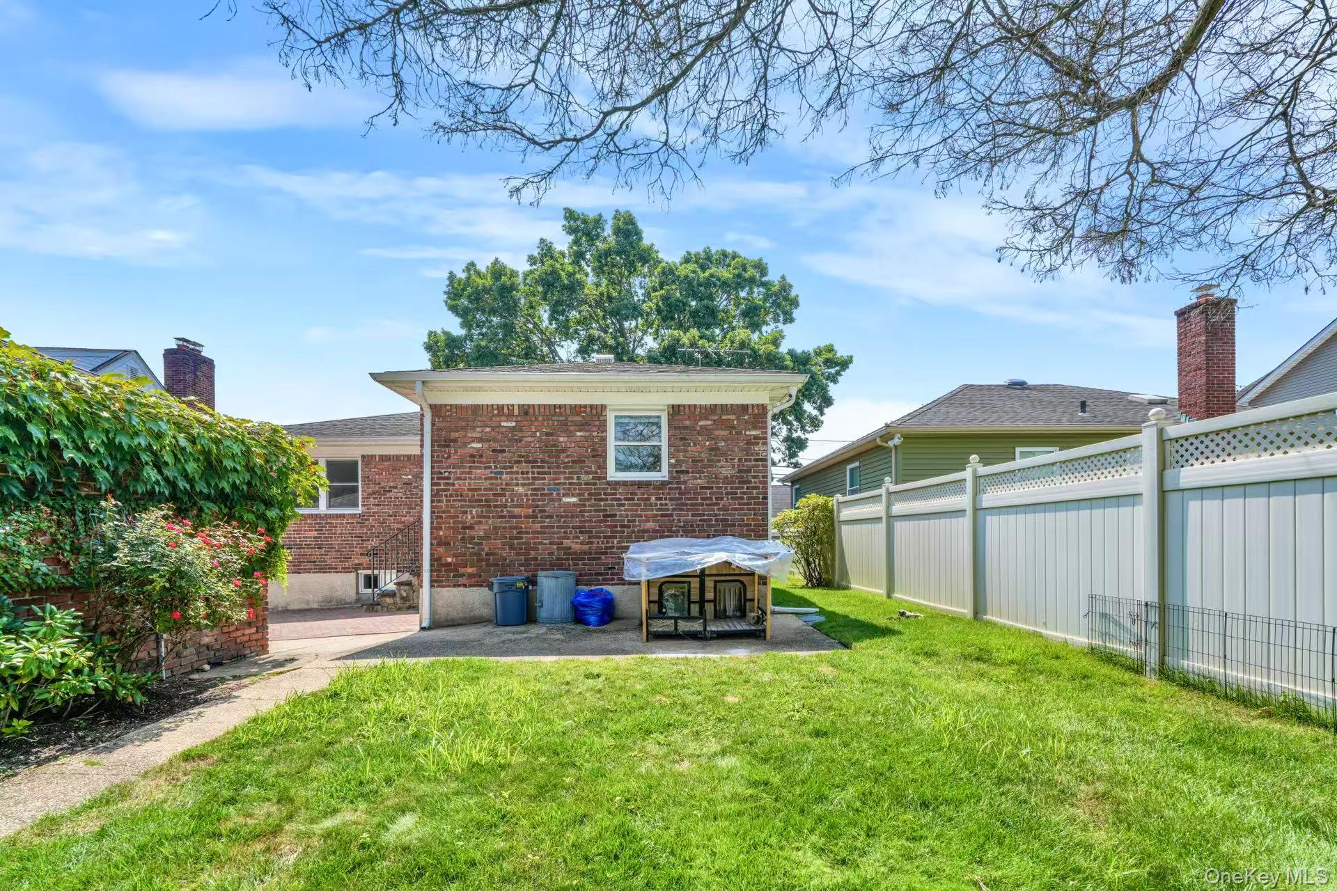 Welcome to this charming ranch-style home, ideally located just steps away from a highly regarded local school, offering unmatched convenience for everyday living. A Stunning full red brick ranch well maintained home in the heart of New Hyde Park. This sun-drenched 3-bedroom, 2-bathroom home offers rich natural light, hardwood floors, and a versatile layout perfect for modern living. The main level features a spacious living room, formal dining room, and an eat-in kitchen with custom cabinetry and stainless-steel appliances. A king-size primary bedroom, two additional bedrooms, and a full bathroom complete the main floor. The fully finished lower level is designed for entertaining and flexible living, offering a large open area with a built-in custom wet bar, an additional private room, a full bathroom, laundry room, ample closet space, and a boiler room. A separate rear entrance adds convenience for guests or extended living. Set on a 50x100 lot, the property includes a fenced backyard, oversized garage, and a long private driveway accommodating 3–5 cars. Additional upgrades include fully updated electrical wiring, a new central air system, updated boilers and copper piping throughout. Meticulously maintained in-ground, automatic sprinkler system with multiple zones and rain sensor for efficient, low-maintenance landscaping. Located on a quiet, tree-lined street in New Hyde Park, close to parks, shopping, dining, and everyday essentials. Access to LIRR and bus routes, providing easy connectivity while maintaining suburban tranquility.