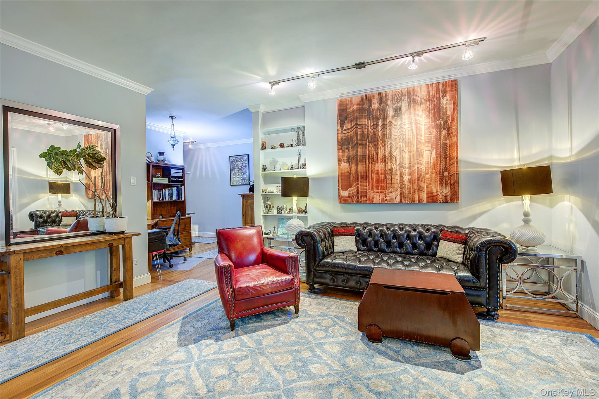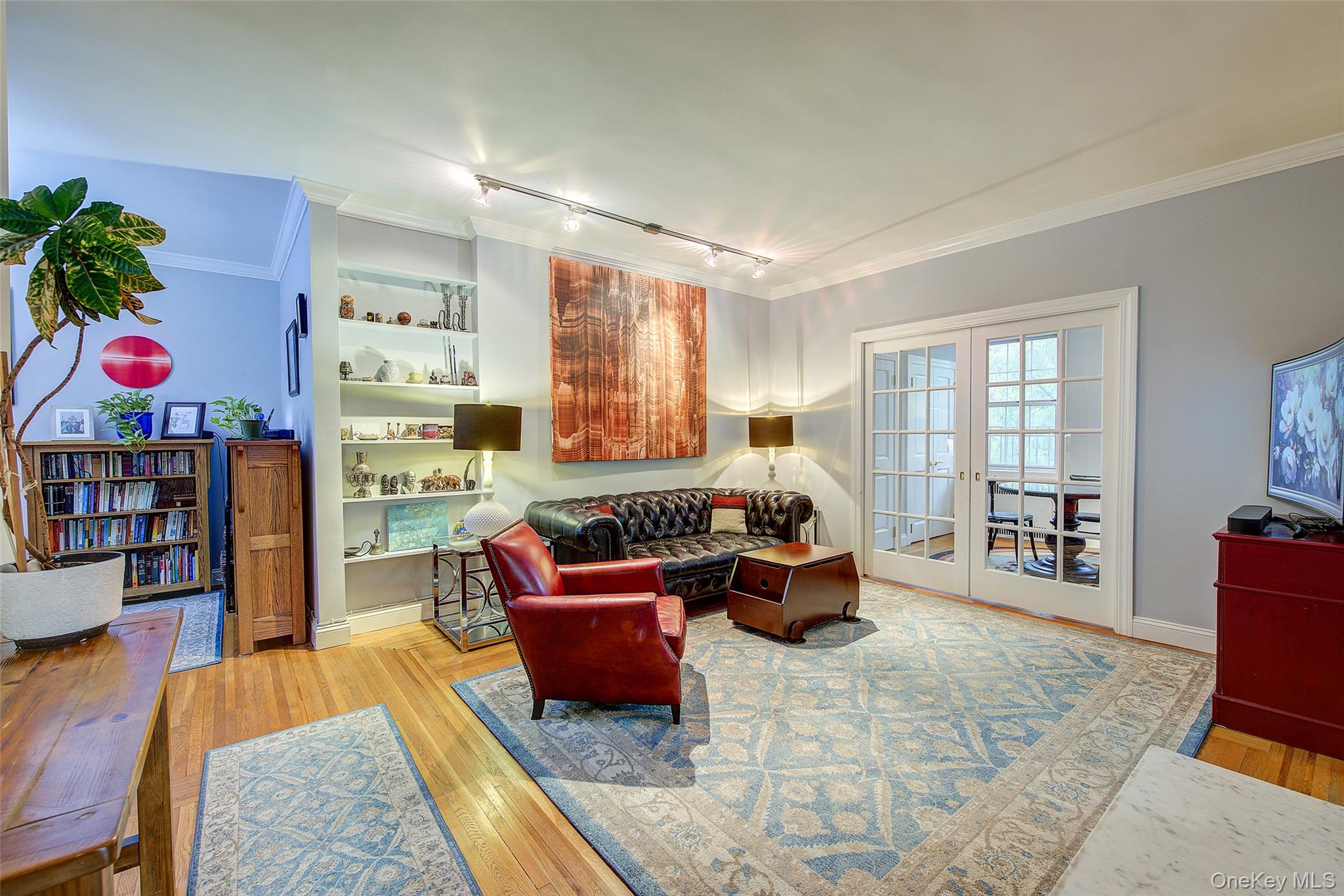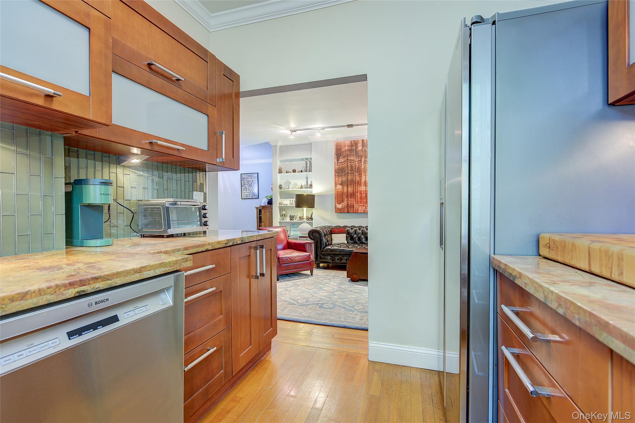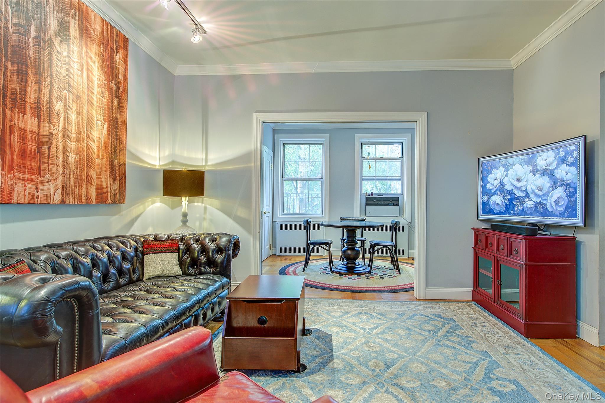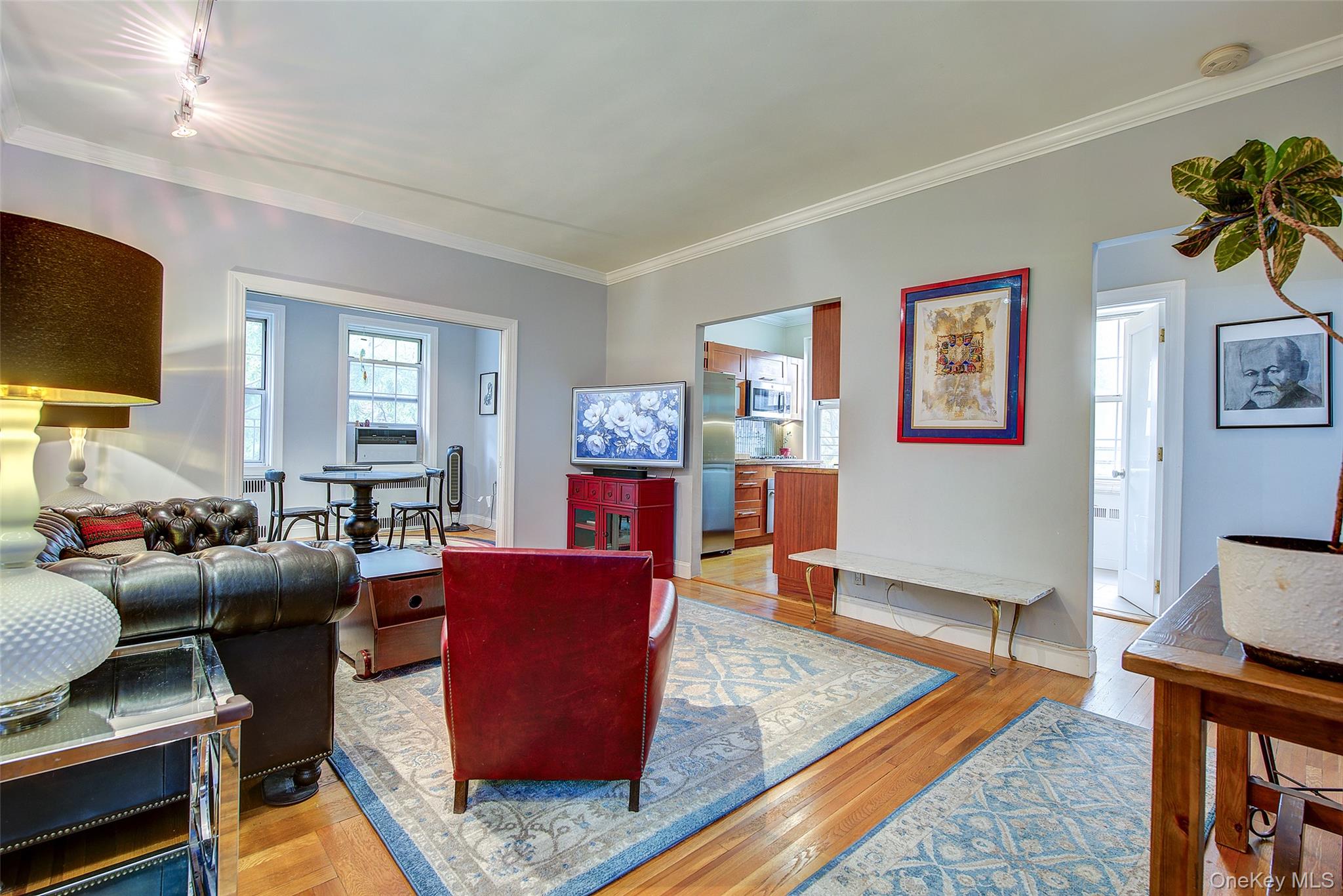 Open house for 8/15/2025 is cancelled. Beautifully reimagined top-floor corner residence in the classic Hampton Court! This thoughtfully updated apartment blends timeless pre-war charm with modern luxury. Highlights include refinished original hardwood floors, elegant French doors throughout, skim-coated walls, and a contemporary kitchen featuring stainless steel appliances, marble countertops, custom cabinetry, and a sleek glass backsplash. The large, windowed bathroom has beautiful marble tiling and modern fixtures. The layout was professionally redesigned to create an open living and dining space ideal for entertaining. The modern kitchen flows into the living room, which is elegantly separated from the formal dining area by custom French pocket doors. The airy primary bedroom is peacefully tucked away from the main living space for optimal privacy. It boasts a generous walk-in closet with a specially designed 11-shelf shoe rack (holding approximately 50 pairs), a pocketbook organizer, and dedicated luggage storage. Expansive Georgian-style windows fill the home with natural light and offer captivating views of Forest Park and the serene courtyard. The second bedroom/Jr. 4 (9' x 9') is bright and versatile, with two windows and its own heater: perfect as a guest room, child’s room, or home office. Additional features include high ceilings, distinctive moldings, and oversized windows that embody the building’s classic character. This home delivers a rare balance of functionality, elegance, and peaceful comfort. Beyond the apartment’s delightful features, the building itself carries its own historic charm, with an impressive pre-war architecture that stands the test of time. The scenic Hampton Court, which was recently added to the New York State and the National Register of historic places, contains four Georgian style buildings with a total of 316 apartments placed in a large and airy courtyard. Like a calm oasis in the middle of all this bustle the property is known for its well-kept buildings, landscaping design, and round the clock security. Additional amenities are laundry facilities, bicycle storage, storage rooms and live-in super. This pet friendly complex is conveniently located walking distance to the Long Island Rail Road and to the E and F trains. Great restaurants, a charming movie theater, coffee shops, organic stores and small grocery stores are only steps away. Less than 1. 5 miles to Trader Joe’s and more restaurant options on Metropolitan Avenue. Built on the grounds of Forest Park you can just step out and walk into one of the biggest parks in Queens with hiking, jogging, biking trails, horse rides, playgrounds, and a golf course.