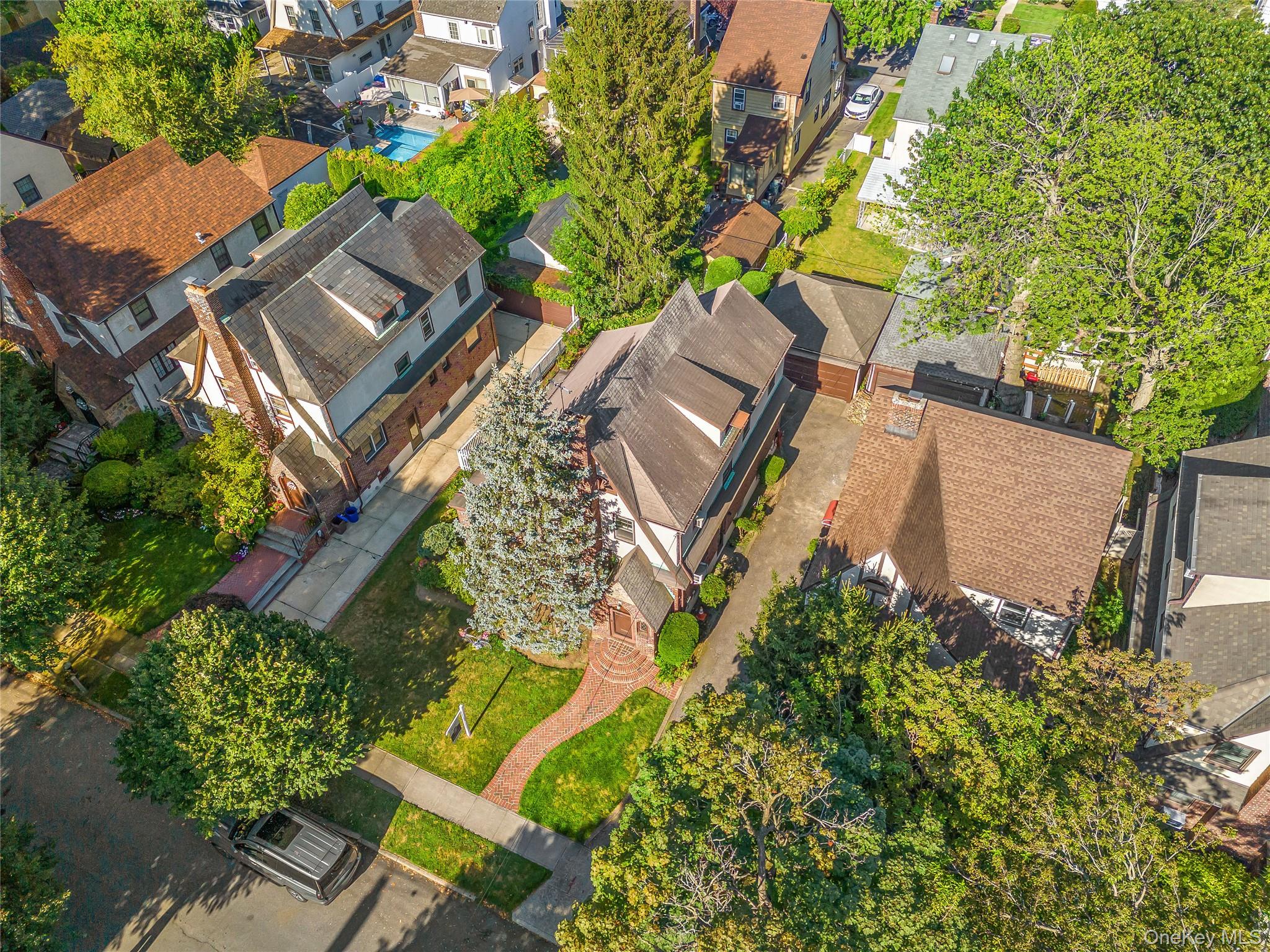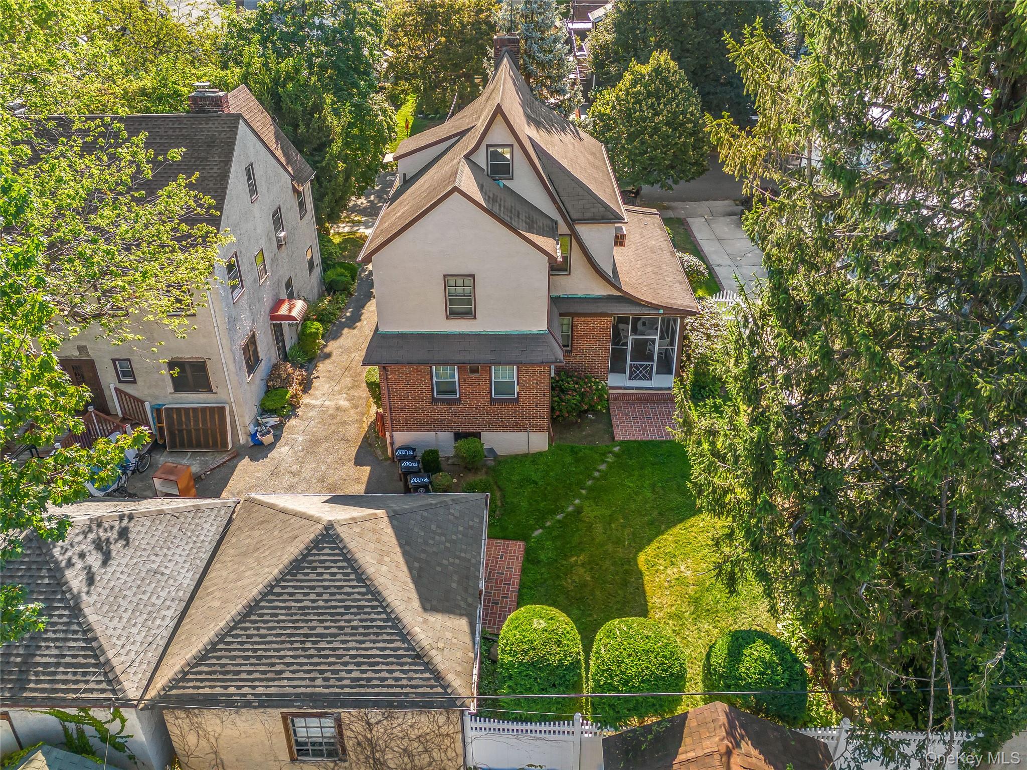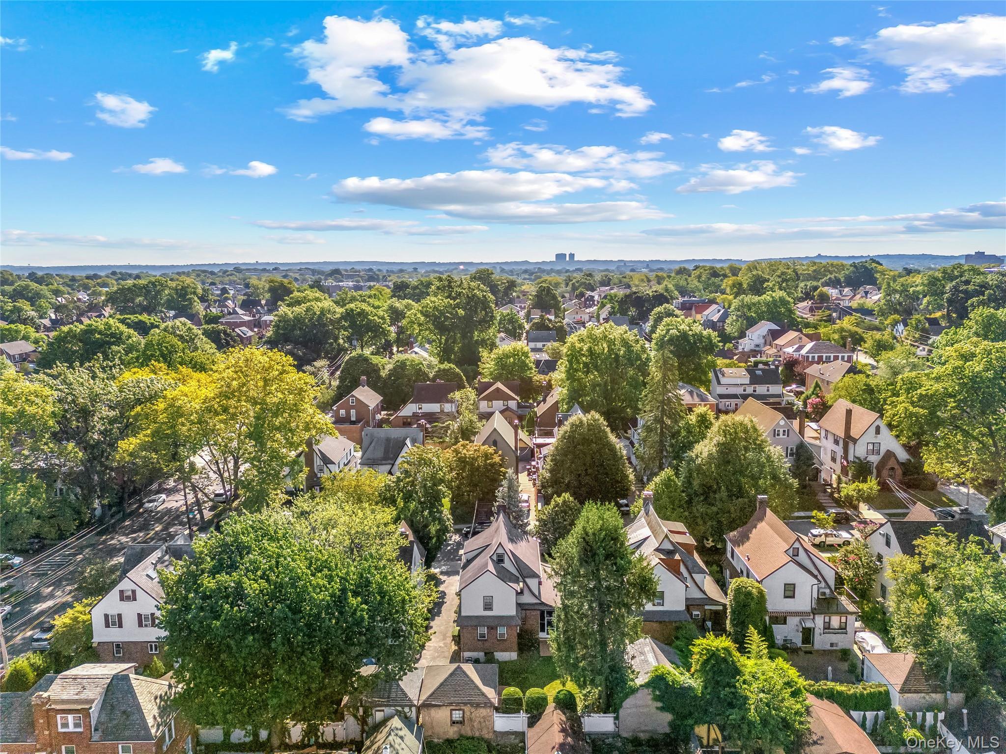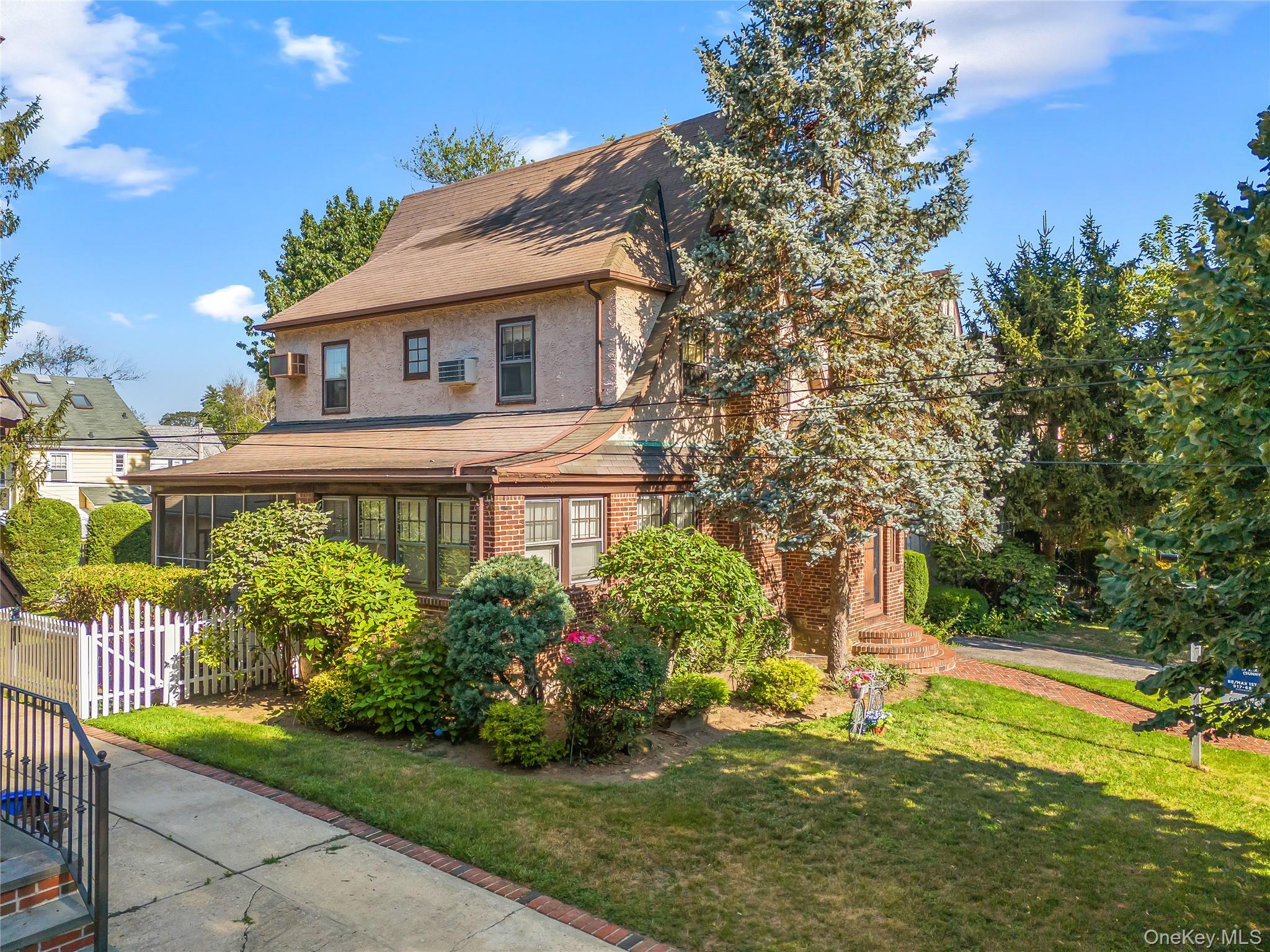 This striking brick and fieldstone Tudor is nestled among lush, mature trees and features a charming front entrance. Step inside to a living room spanning the full width of the home, complete with a wood-burning fireplace and an enclosed screened sunporch. The large formal dining room, with beautiful woodwork, offers two entries to the eat-in kitchen overlooking the spacious backyard. Upstairs, the home offers four spacious bedrooms and a full bathroom, thoughtfully arranged for comfort and privacy. The large third-floor attic provides a versatile bonus space, ideal as an additional bedroom, storage, or flexible living area. The finished basement boasts high ceilings, a private entrance, a laundry room, and driveway access. It’s perfect for a guest suite, home gym, media room, or office. A two-car garage at the rear adds convenience. Set on a private 50x100 lot with mature landscaping and garden areas, this 2, 492-square-foot home combines classic craftsmanship with endless potential for personal updates. Located in desirable North Flushing, you’re just blocks from Bowne Park and its scenic pond, with easy access to multiple bus lines (Q15A, Q15, Q28, Q13, Q26) connecting to Manhattan and beyond. This exceptional property offers timeless elegance and generous space in one of Queens’ most established neighborhoods—a true rare find!