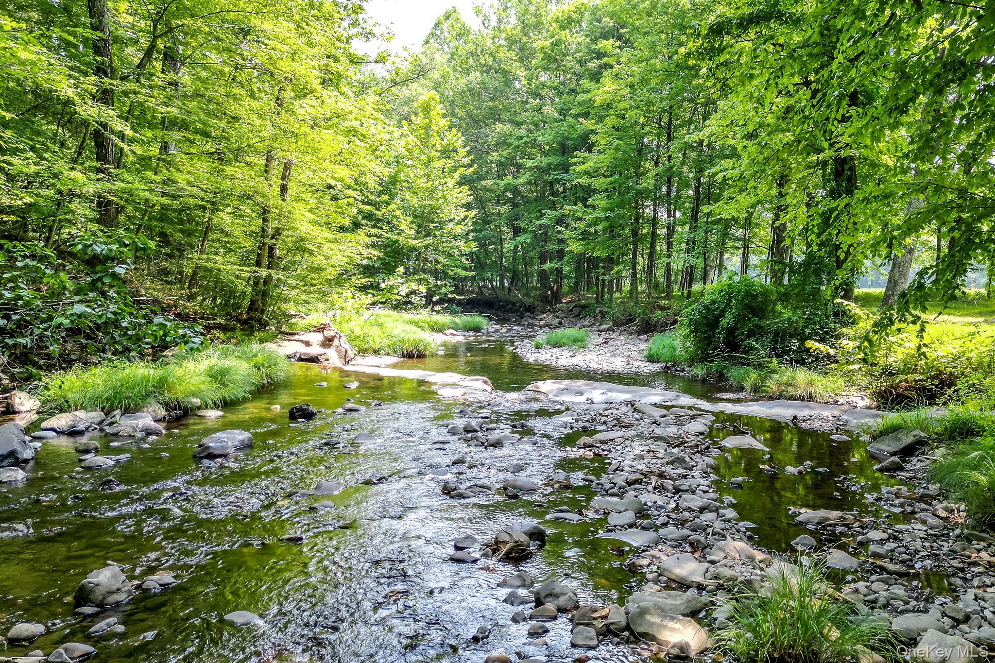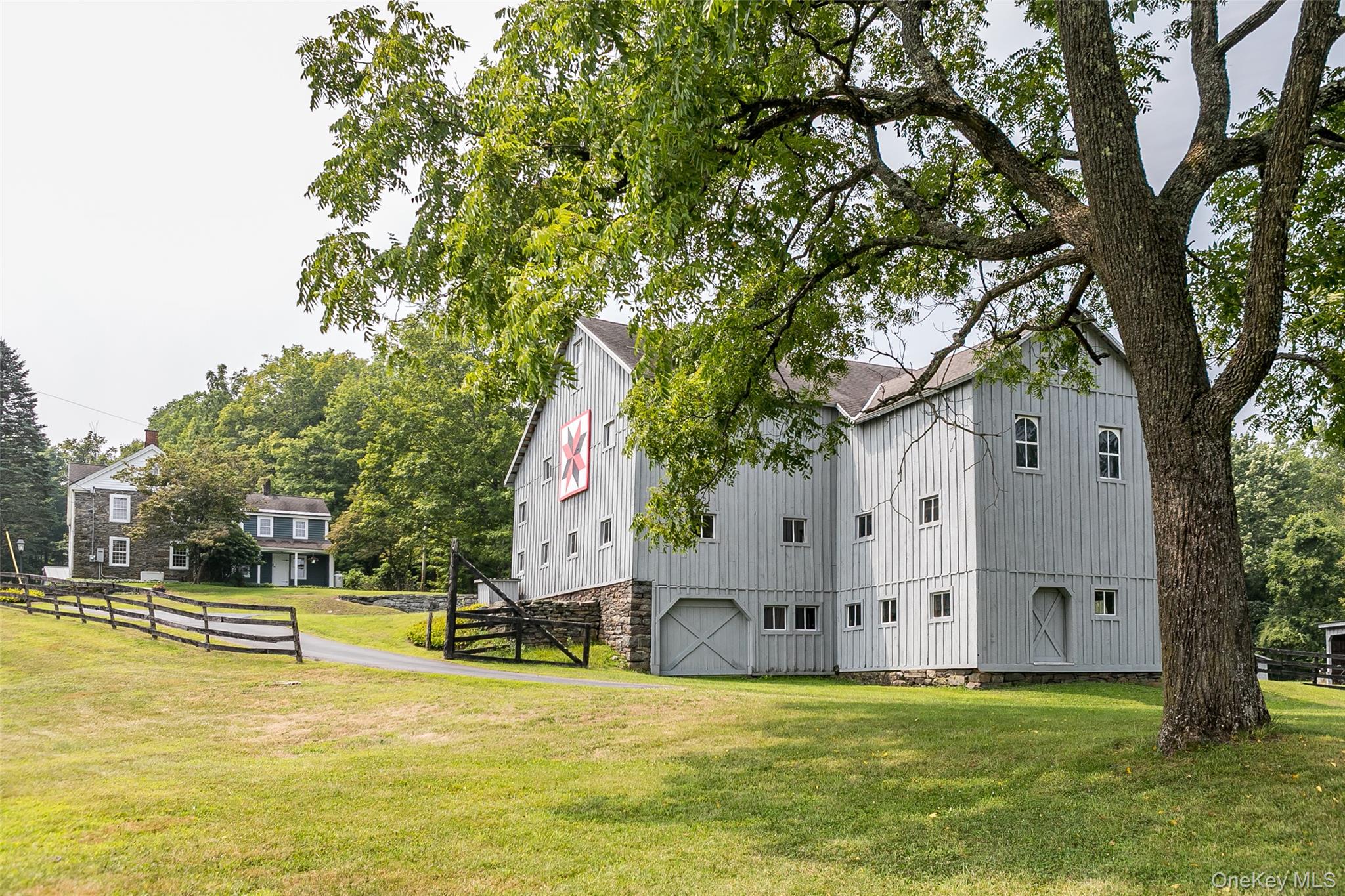 Step into a timeless masterpiece - an exceptional circa-1769 estate that remains a rare jewel of Hudson Valley history. Set across 96 pristine acres and graced with approximately 800 feet of serene stream frontage along the Mombaccus Creek, this remarkable property is a poetic fusion of colonial-era charm and pastoral tranquility. Experience an immediate sense of calm as you arrive along the beautifully paved, winding driveway, where picturesque views of the home, barn, and fenced pasture draw you in and invite further exploration. From the moment one enters, the home greets with elegant authenticity. A grand staircase stands at the heart of the space, accompanied by classic woodwork, hand-crafted built-ins, and wide plank flooring that whispers stories of centuries past. Expansive windows reveal sweeping views of the Mohonk Mountain House, offering an ever-changing canvas of natural beauty from nearly every room. The interior layout reflects its 18th-century origins while seamlessly supporting contemporary living. A cozy living room warmed by a wood-burning stove invites relaxation, while a dedicated entertainment space complete with a full bar promises memorable gatherings. The country-style kitchen blends rustic charm with modern sophistication, featuring top-tier appliances including a Wolf cooktop and oven, Miele oven and Sub-Zero refrigerator ideal for crafting gourmet meals with ease. Adjacent, the formal dining room highlights custom-built-in cabinetry and offers an inviting space for elegant entertaining and intimate gatherings. Transition seamlessly into the formal sitting room, complete with a cozy office nook perfect for working from home while enjoying sweeping views of the pastoral landscape beyond. Ascending the stairs, the second floor reveals three spacious bedrooms, two full bathrooms, and a versatile room perfect for an office, studio, or guest accommodation. A charming rear staircase tucked off the kitchen provides both a nostalgic touch and functional flow. Beneath the home, a full basement delivers ample storage and utility options, and a walk-up attic invites creative expansion. Beyond the walls, the grounds bloom in harmony with the changing seasons. Flowering trees and lush greenery frame every path and pasture. Be enchanted by the old covered bridge stretching over the babbling brook that winds its way behind the homestead. The estate also features a massive three-story barn and multiple outbuildings, allowing endless possibilities for farming, livestock, artisanal workshops, or imaginative pursuits. Spend time roaming the pastures, while enjoying the sound of the Mombaccus creek and taking advantage of the swimming holes on hot summer days. The location offers unparalleled access to the Hudson Valley’s finest destinations. Golf and upscale dining await at nearby Inness, while Arrowood Farms and Westwind Orchard serve up craft spirits and fresh fare. Local favorites like Mill & Main Provisions, Flying Goose Tavern, and Rough Cut Brewery bring culinary creativity to the neighborhood. Saunderskill and Kelder’s Farms offer seasonal bounty and berry picking come autumn, while Minnewaska State Park presents miles of scenic trails for hiking and biking adventures. Situated just 90 minutes from Metro New York, this property delivers a once-in-a-lifetime opportunity to own a living piece of early American history. Embrace the chance to become the fourth steward of this generational farmstead nestled in the heart of the breathtaking Hudson Valley.