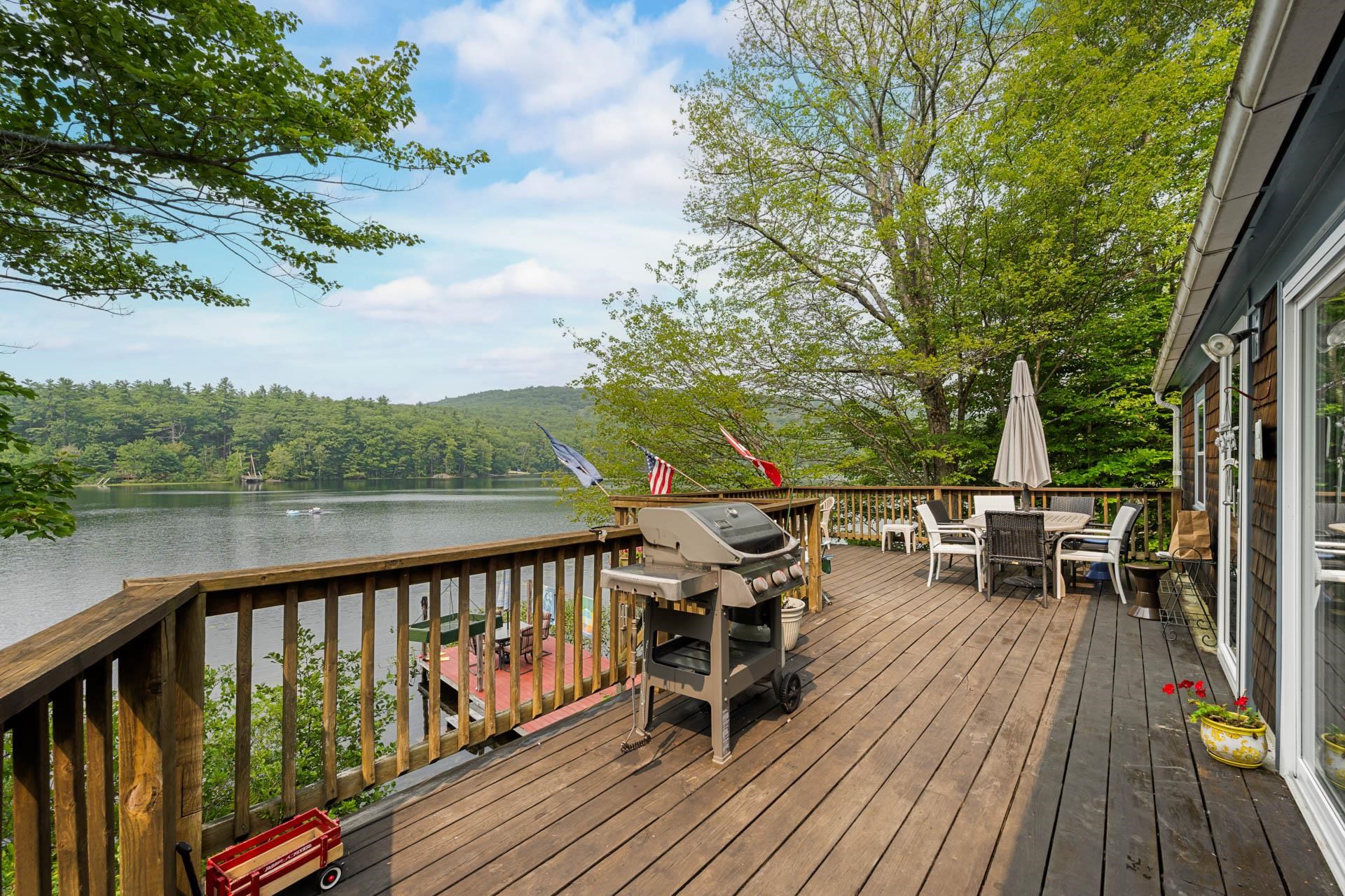 HOLIDAY PRICE SPECIAL – LAKE HOUSE + EXTRA LOT! RARE LAKE OPPORTUNITY | FOUR-SEASON LIVING | BUILDABLE LOT INCLUDED. Holiday pricing makes now the perfect time to secure this exceptional lakefront property offering 109 ft of private shoreline, stunning Crotched Mountain views, and a confirmed build opportunity on the additional lot. Per the town building inspector, you can build an ADU 1, 400 sq. ft. living-area home plus an underneath garage or basement (buyer to verify). Located on 0. 55 acres, this well-maintained 3-bed, 2-bath four-season home provides the ultimate year-round lifestyle. Enjoy swimming, boating, fishing, ice skating, ice fishing, hiking, skiing, and golfing right at your fingertips, with Pats Peak and Crotched Mountain Ski Area just a short drive away. Inside, the bright, open-concept first floor features a sun-filled eat-in kitchen, spacious living room, full bath with laundry, and a convenient first-floor bedroom. Oversized windows and sliding glass doors lead to a large lakeside deck—perfect for morning coffee, sunset dinners, or effortless entertaining. The second floor offers two additional bedrooms, a half bath, and a versatile bonus nook ideal for an office, nursery, or guest overflow. A walk-out basement with natural light provides excellent expansion potential for additional living area, a workshop, or a game room. Outdoor amenities include a sandy beach, private dock, and boathouse for all your lake gear.