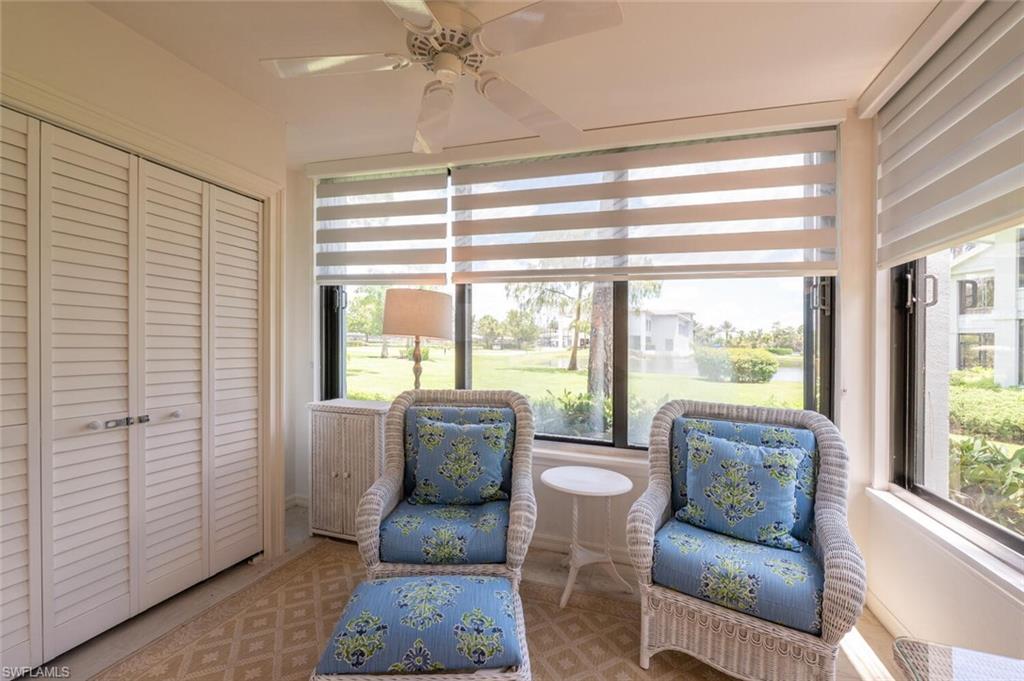 Beautiful condo overlooking the lake and clubhouse pool. Two large Primary bedrooms, with on suite full baths. Both lanais have been closed in and with sliders for open air and walk out. Property boasts a large kitchen that opens to the living room and dining area. Abundant light and windows that overlook the lake and clubhouse. High end window treatments and fans. Wood like tile flooring through out. Immediate membership to Wyndemere Country Club which features 27 holes of championship golf, practice areas, 10 har-tru tennis courts, spectacular fitness center, bocce courts, pickleball, croquet and swimming facility.