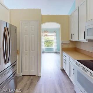 The modern kitchen boasts a stainless steel French door refrigerator, ample cabinetry — ideal for any home chef.